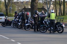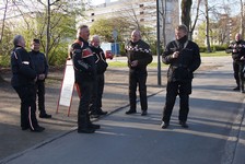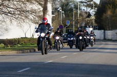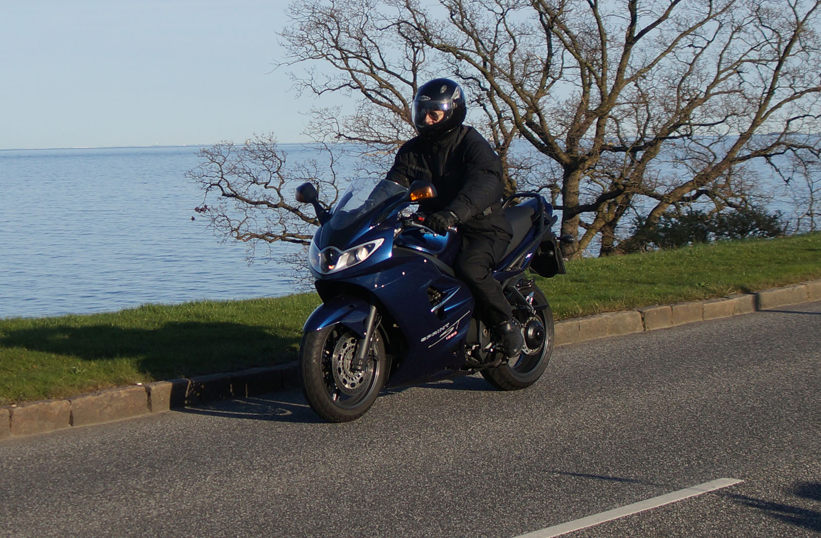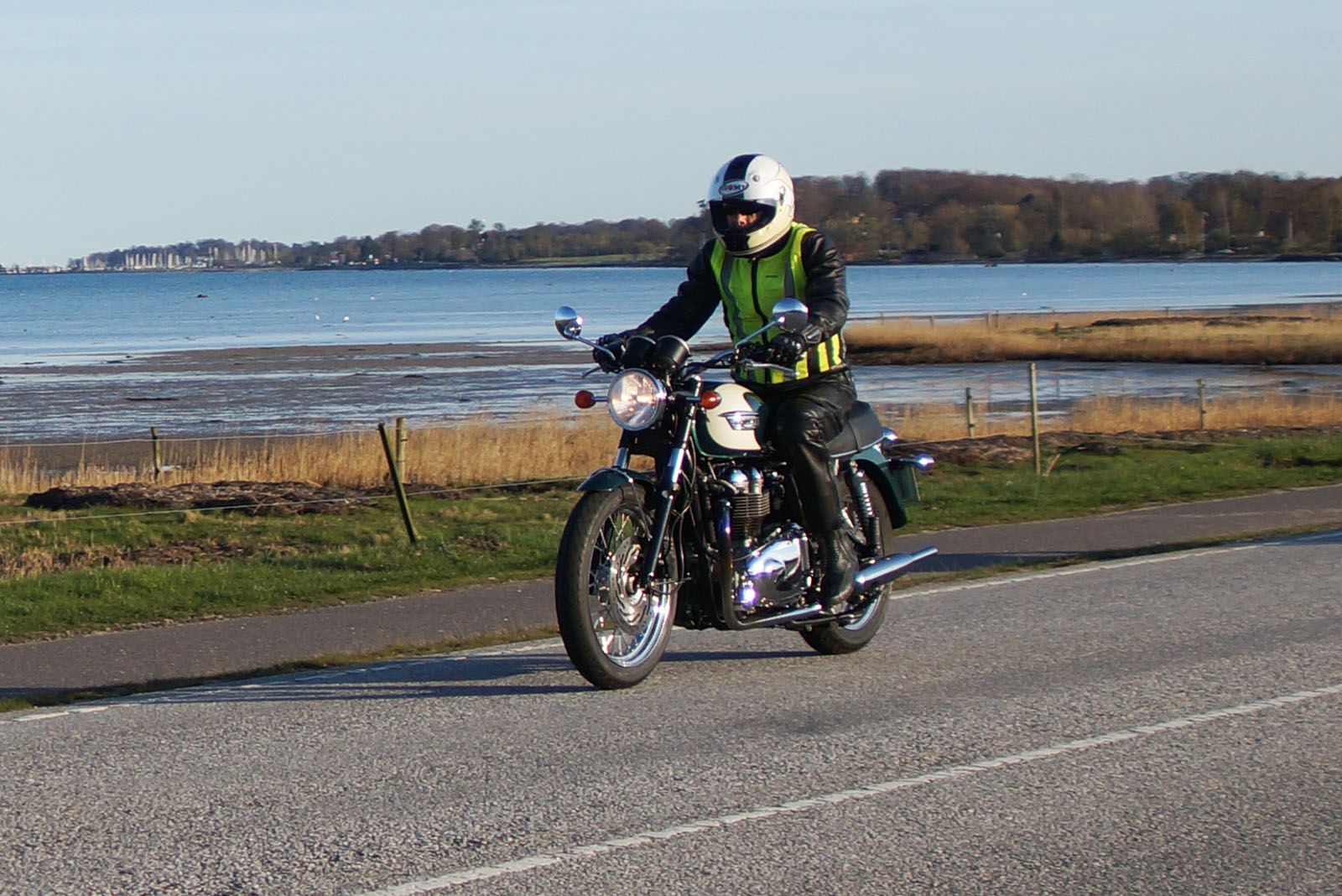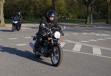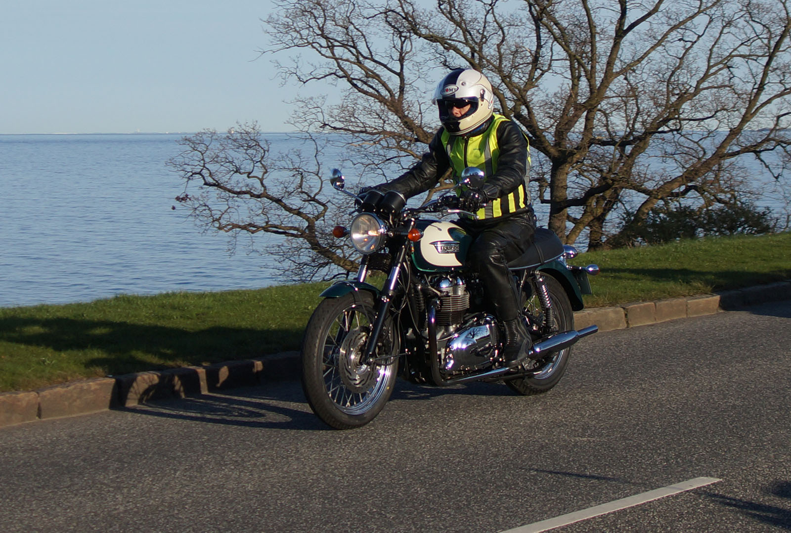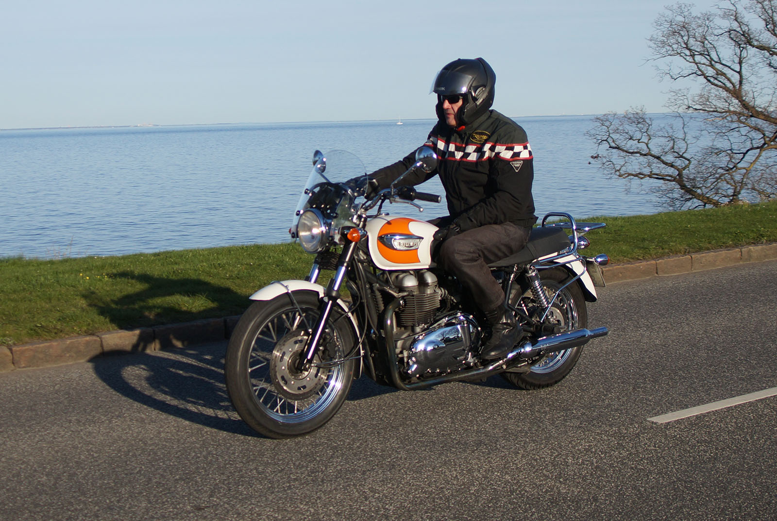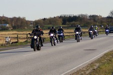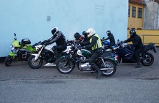 en sort Bonneville -08, Klaus på en hvid Street Triple -08, Jesper på en mørkeblå