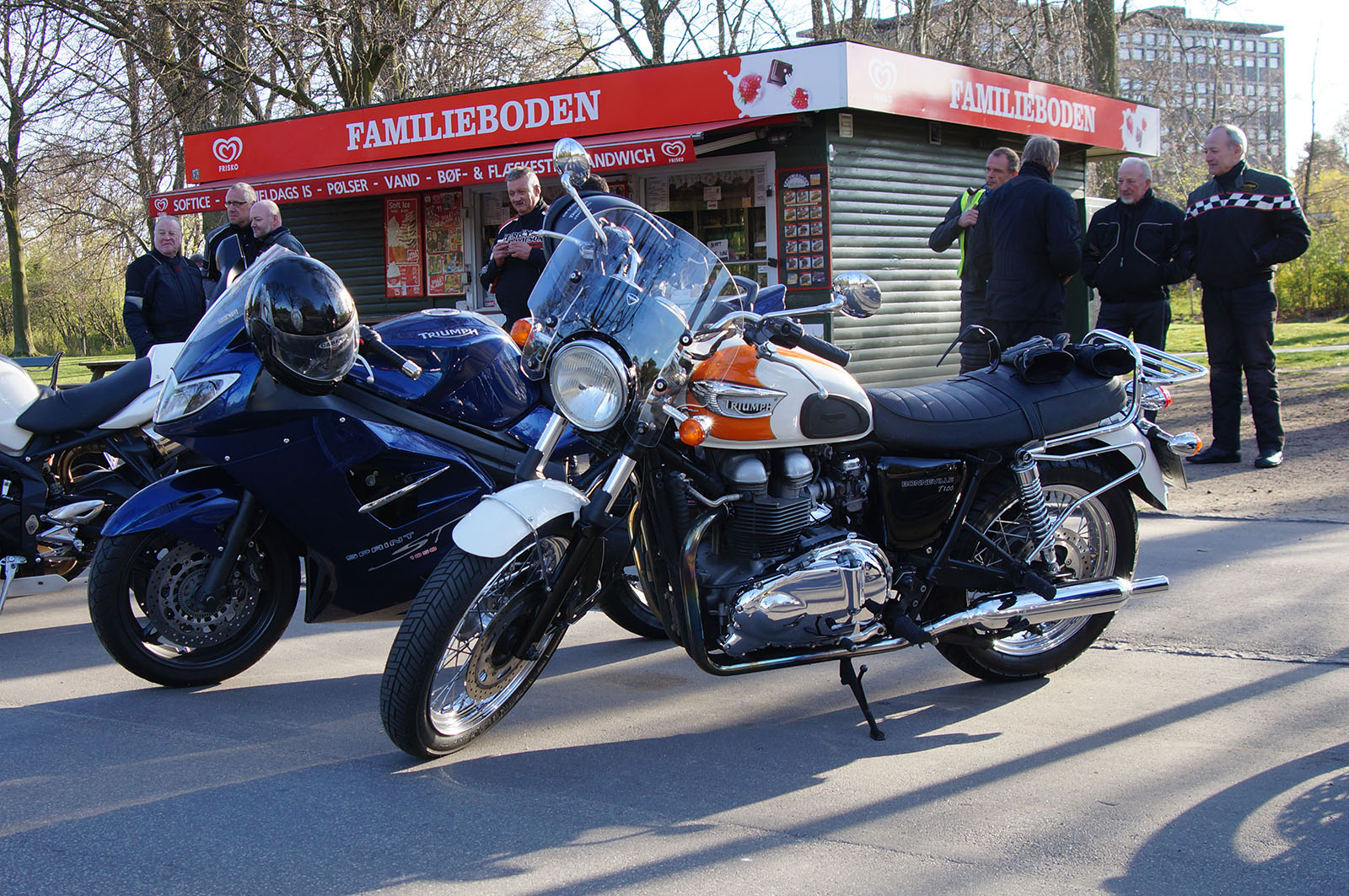 Sprint ST -07, Per på en hvid/tangerine Bonneville -06, Jan på en blå TT600 -02,