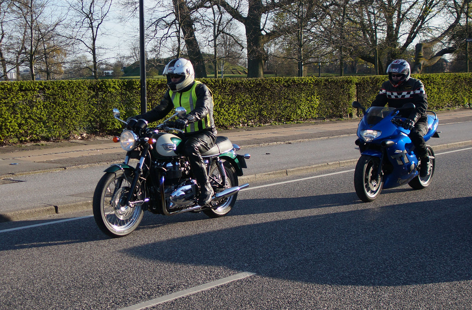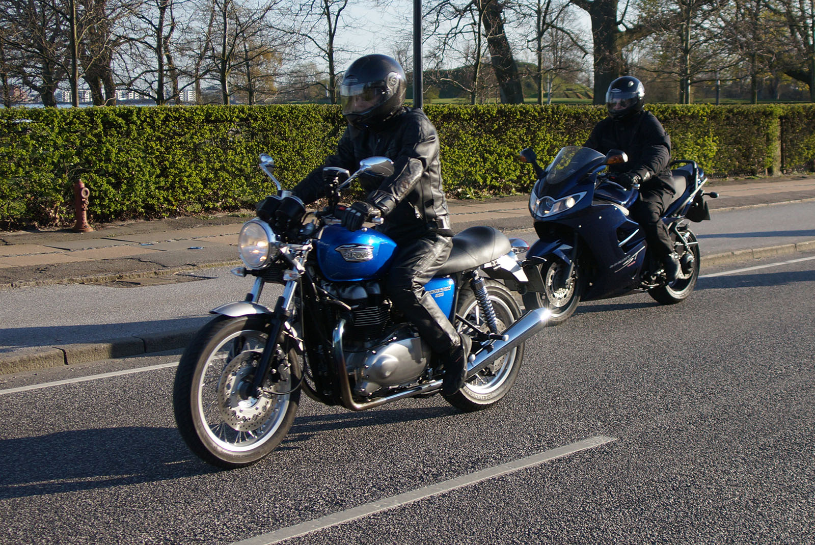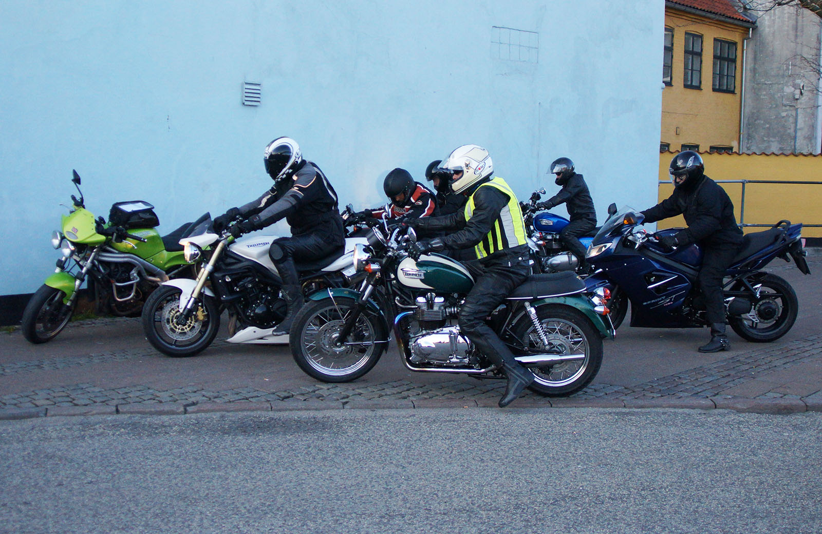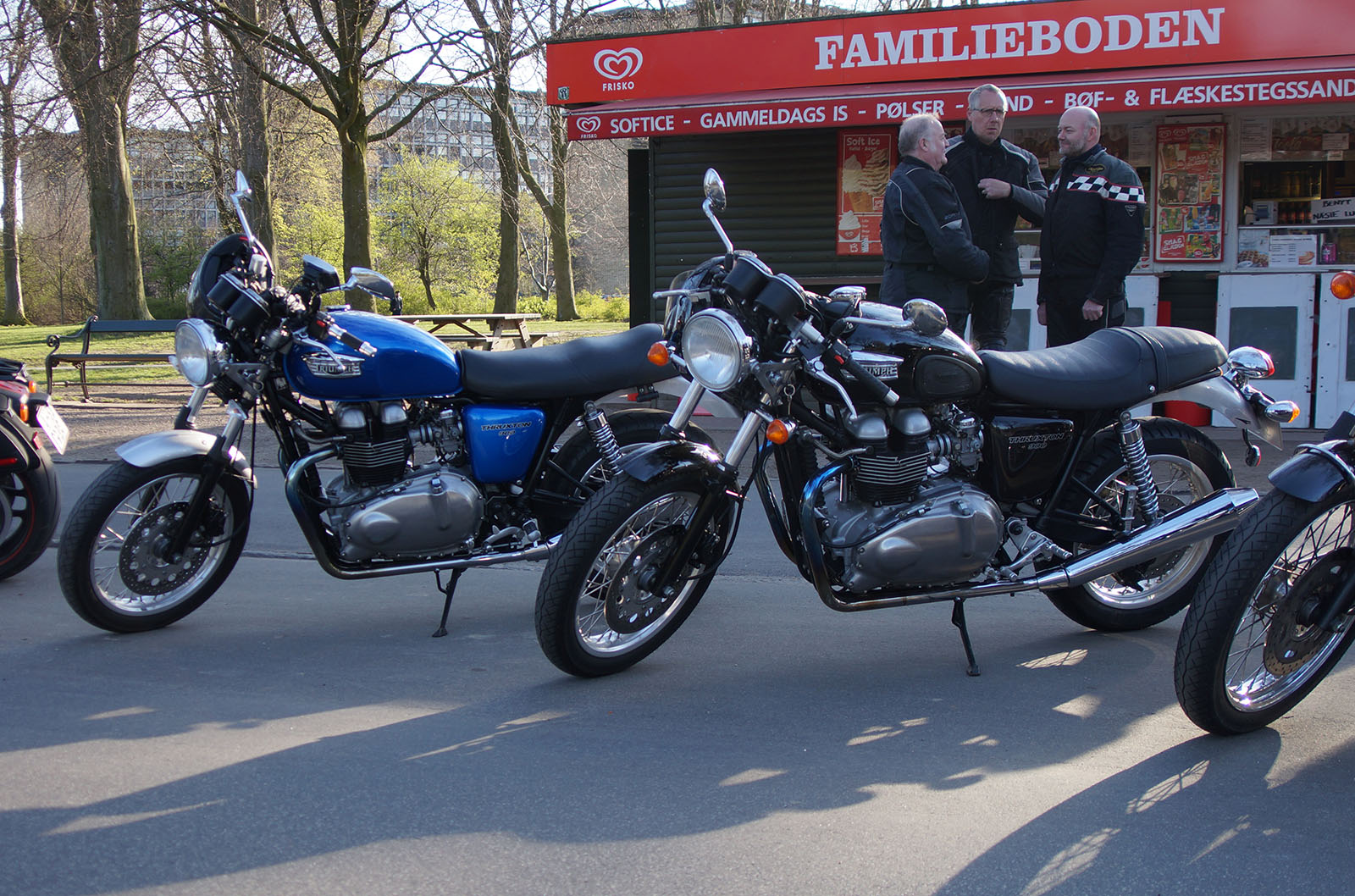Der var Steen på den blå Thruxton -06, Karl på en sort Thruxton -06, Mogens på