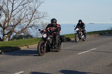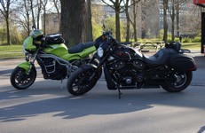 Sten på en grøn Bonneville -06, Jørgen på en sort HD Night Rod Special -14,