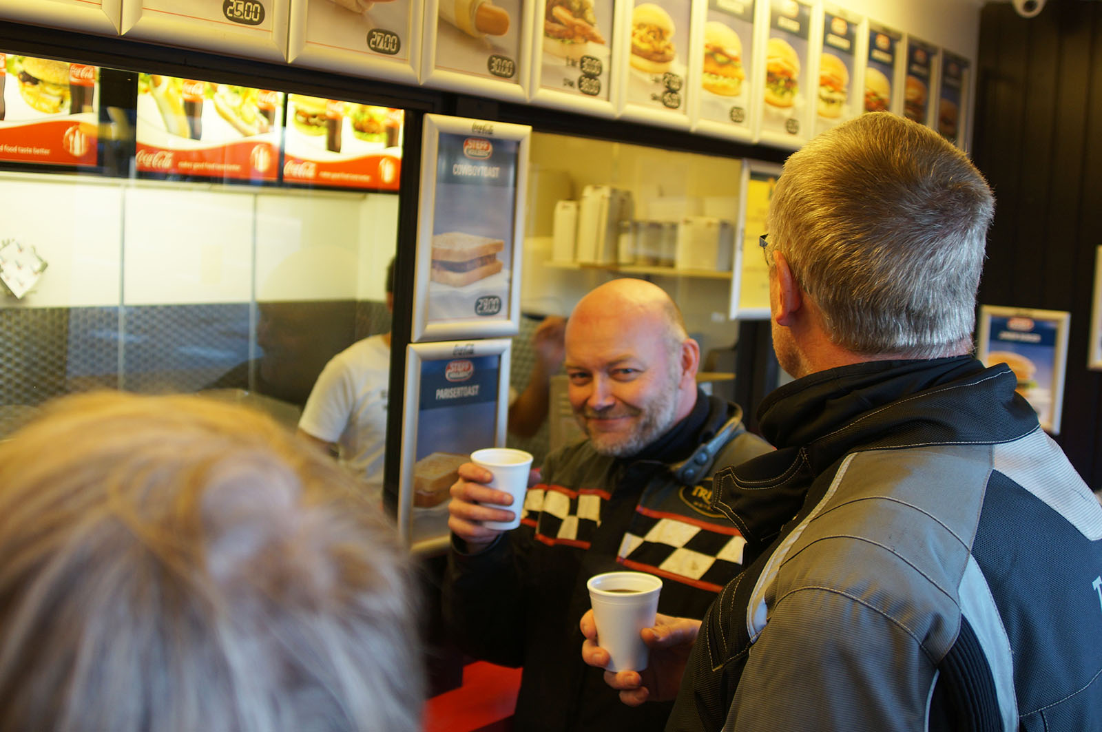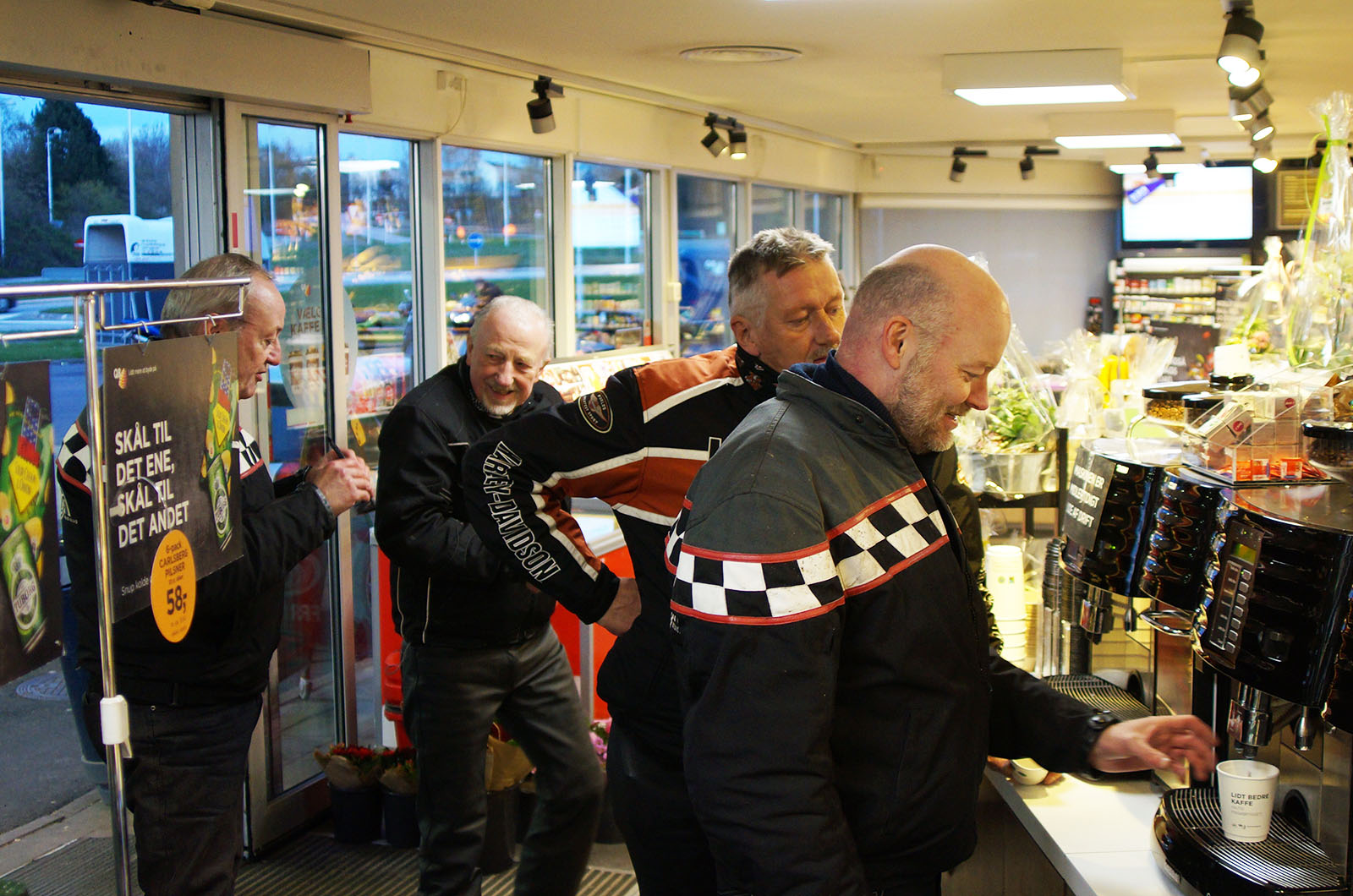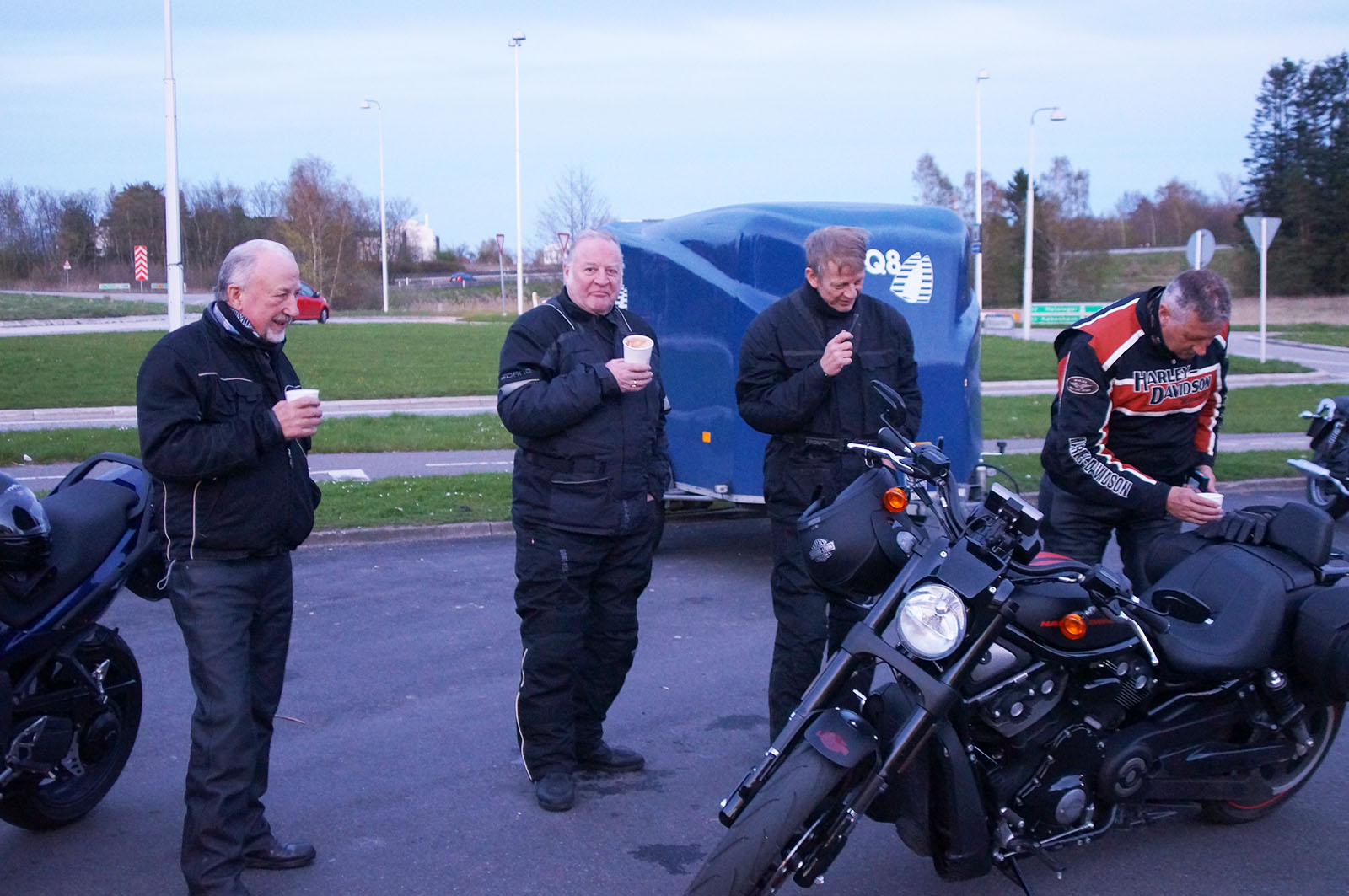 I Hørsholm standsede vi ved Q8 tanken for lidt varm kaffe plus lidt mere snak.
