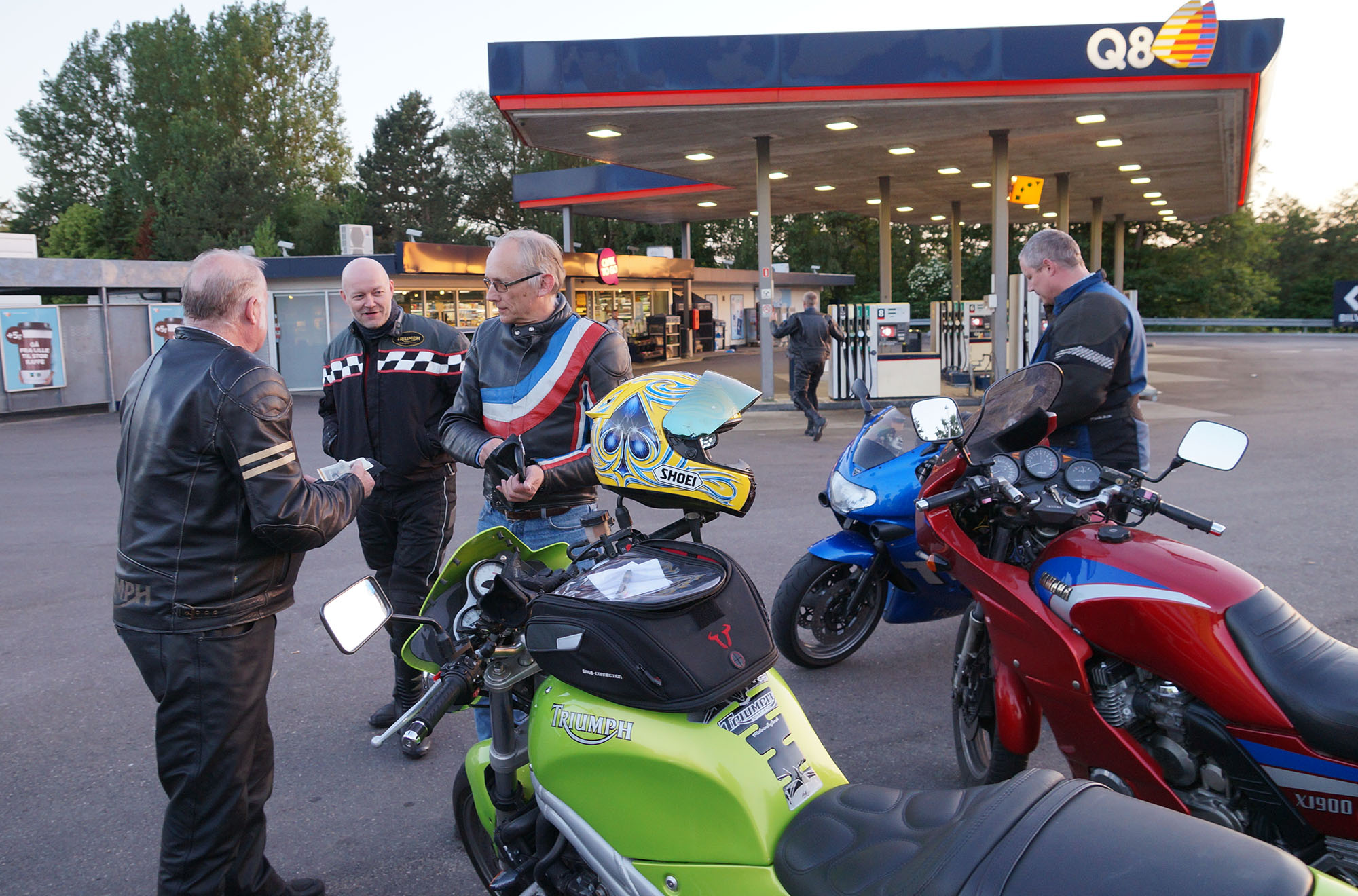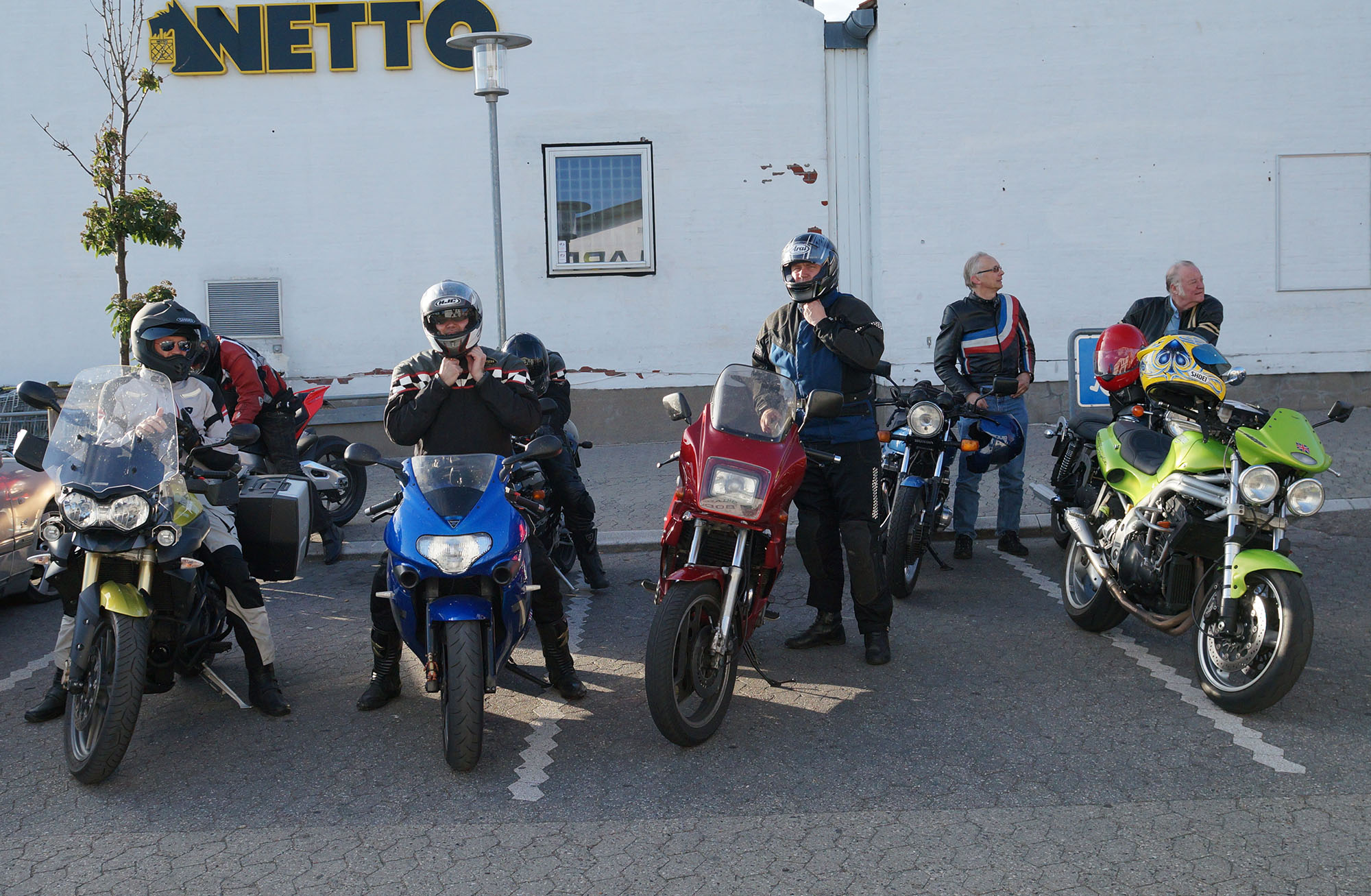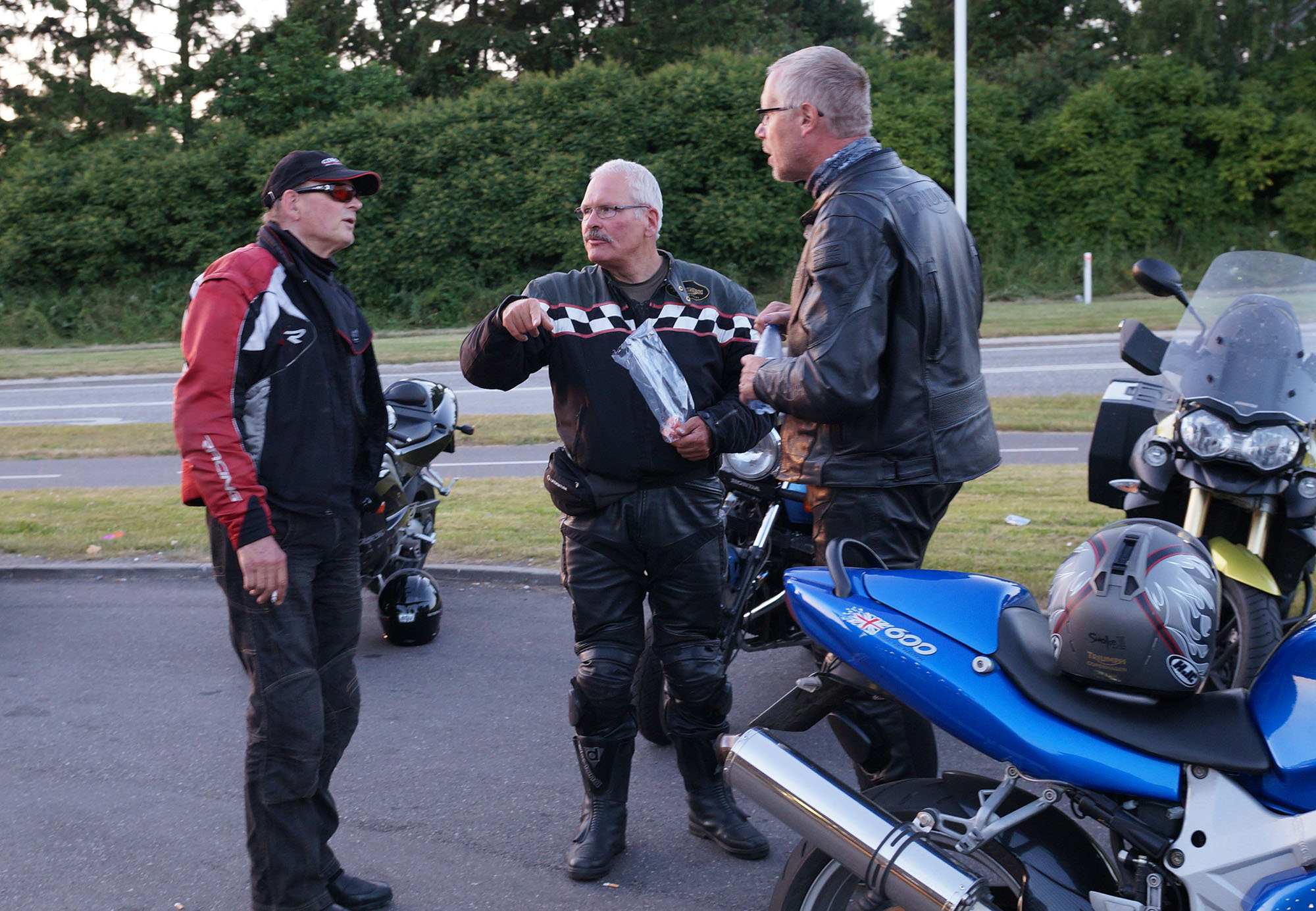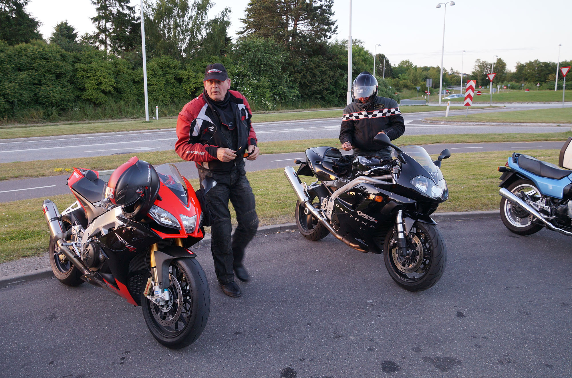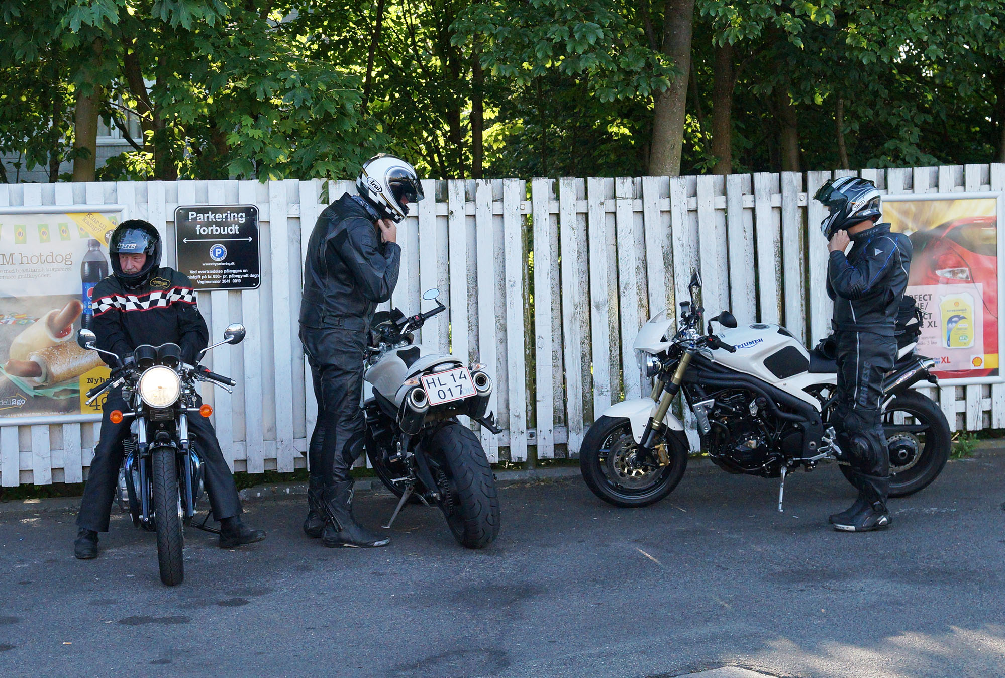 Klaus på en hvid Street Triple -08, Carsten på en rød XJ900 -83, Rolf på