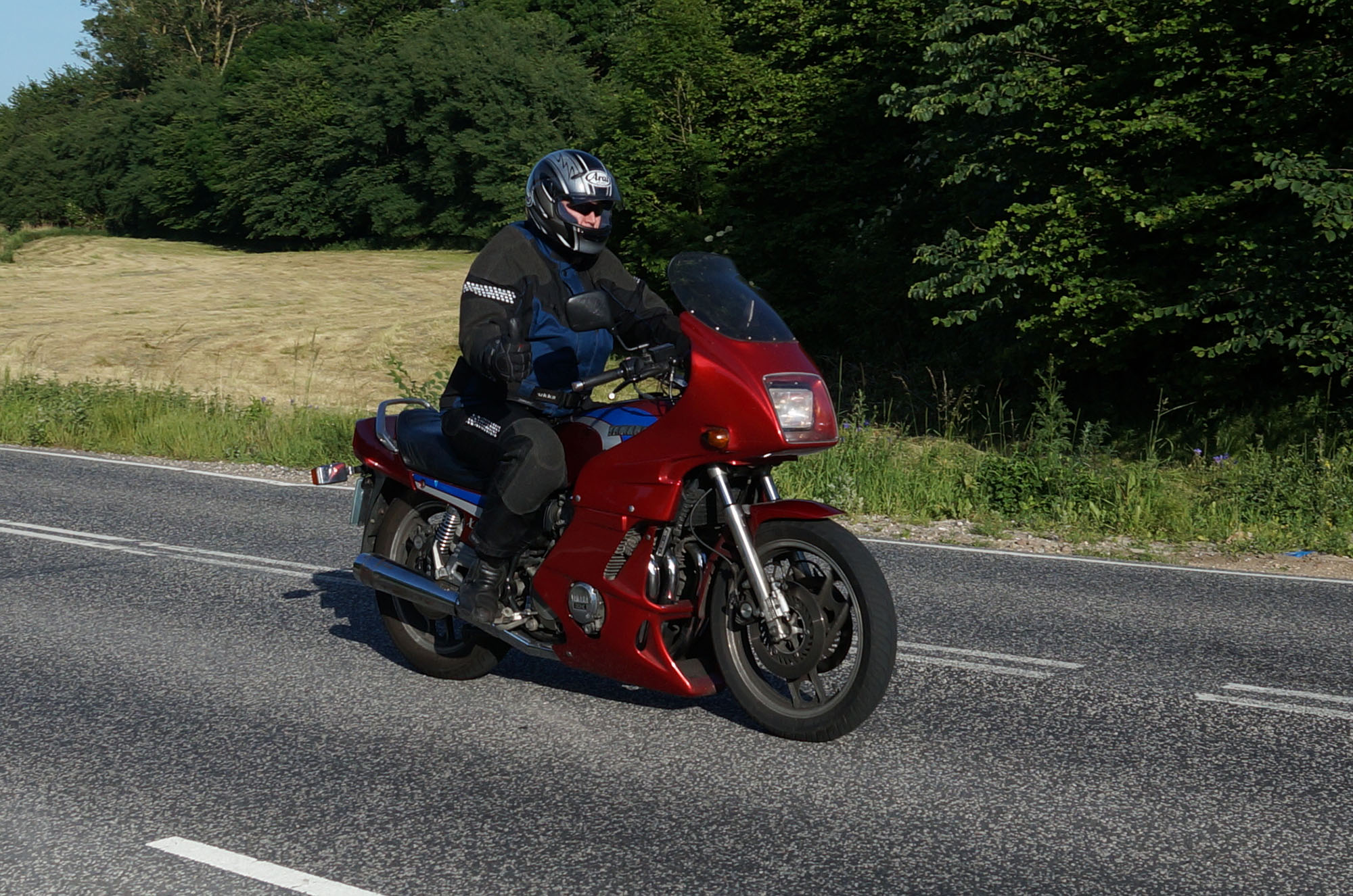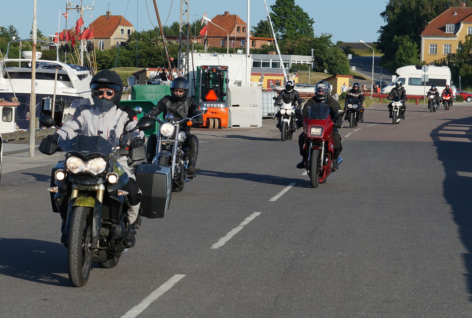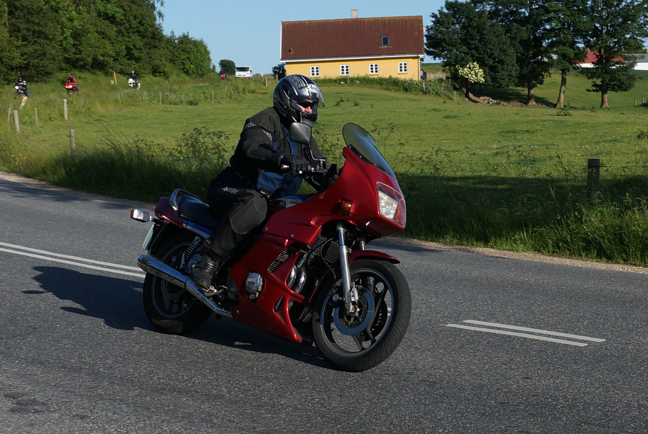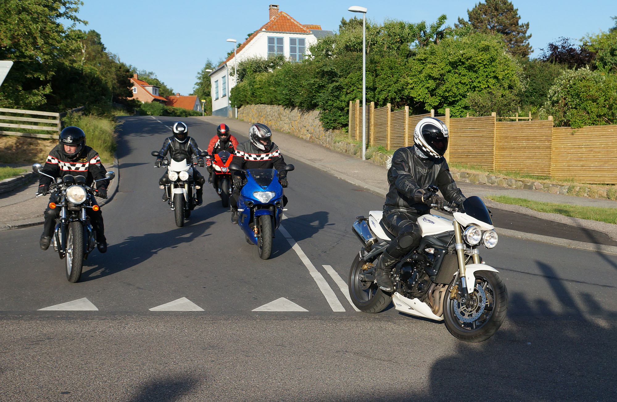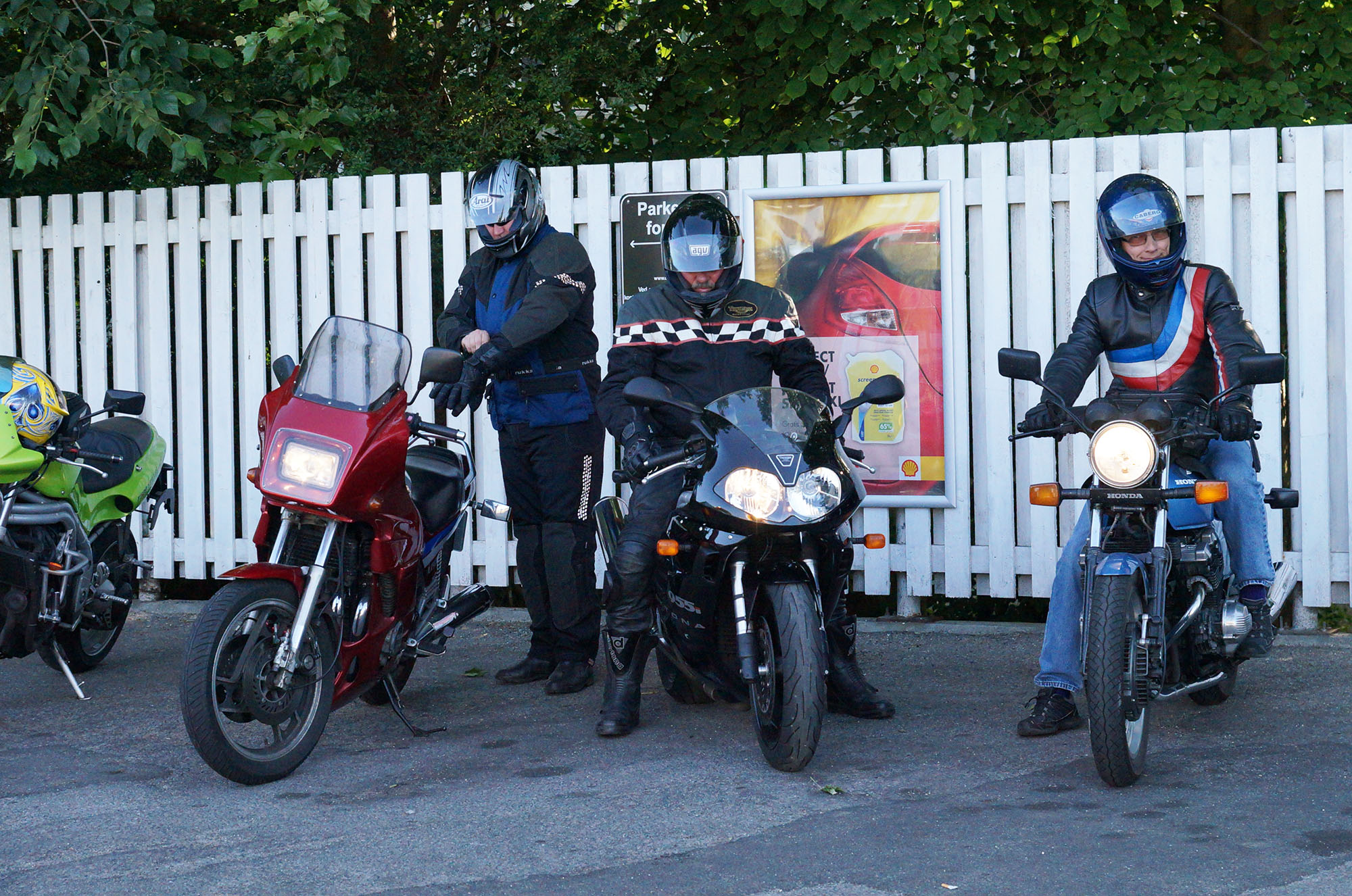Klaus på en hvid Street Triple -08, Carsten på en rød XJ900 -83, Rolf på