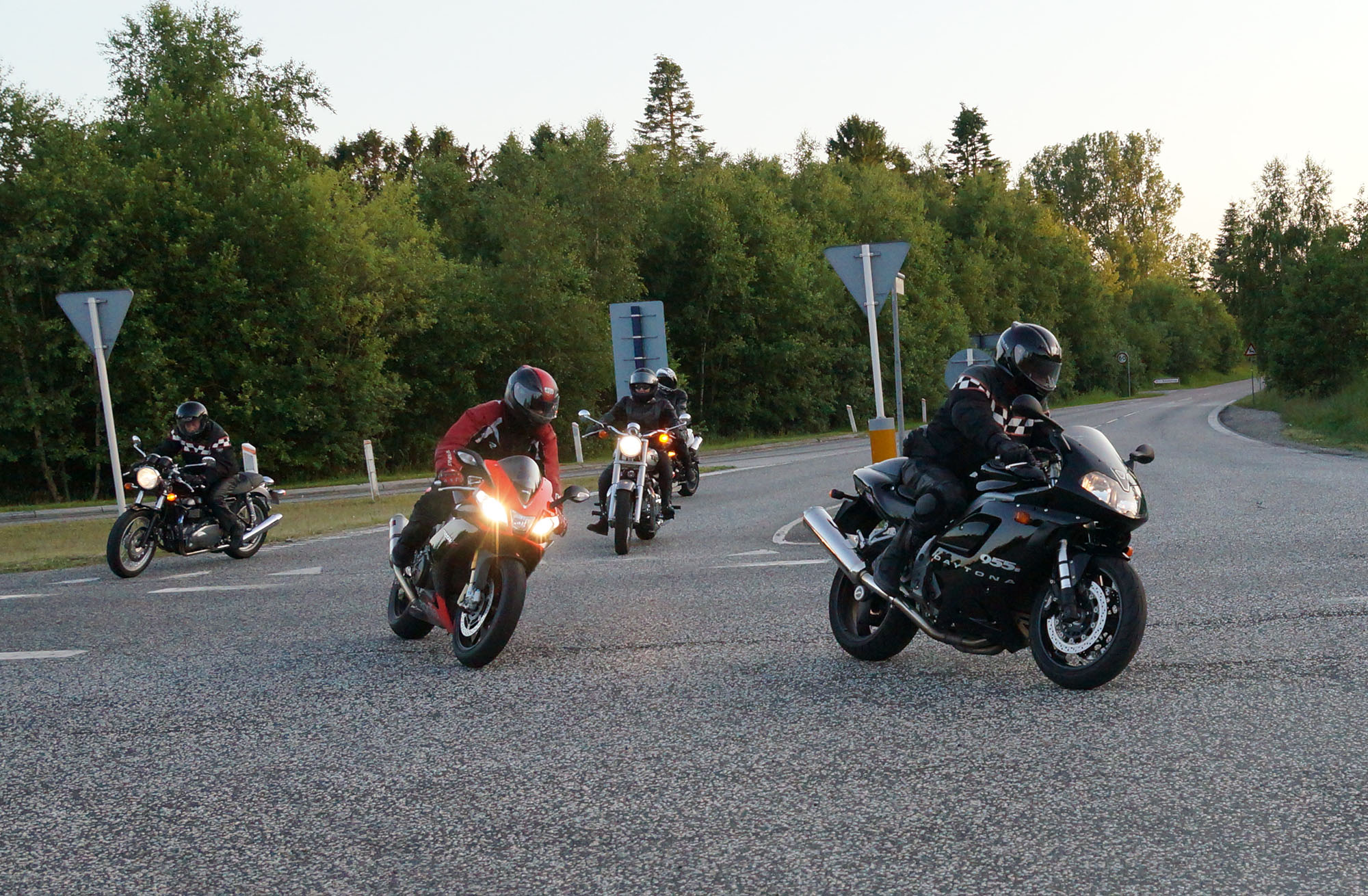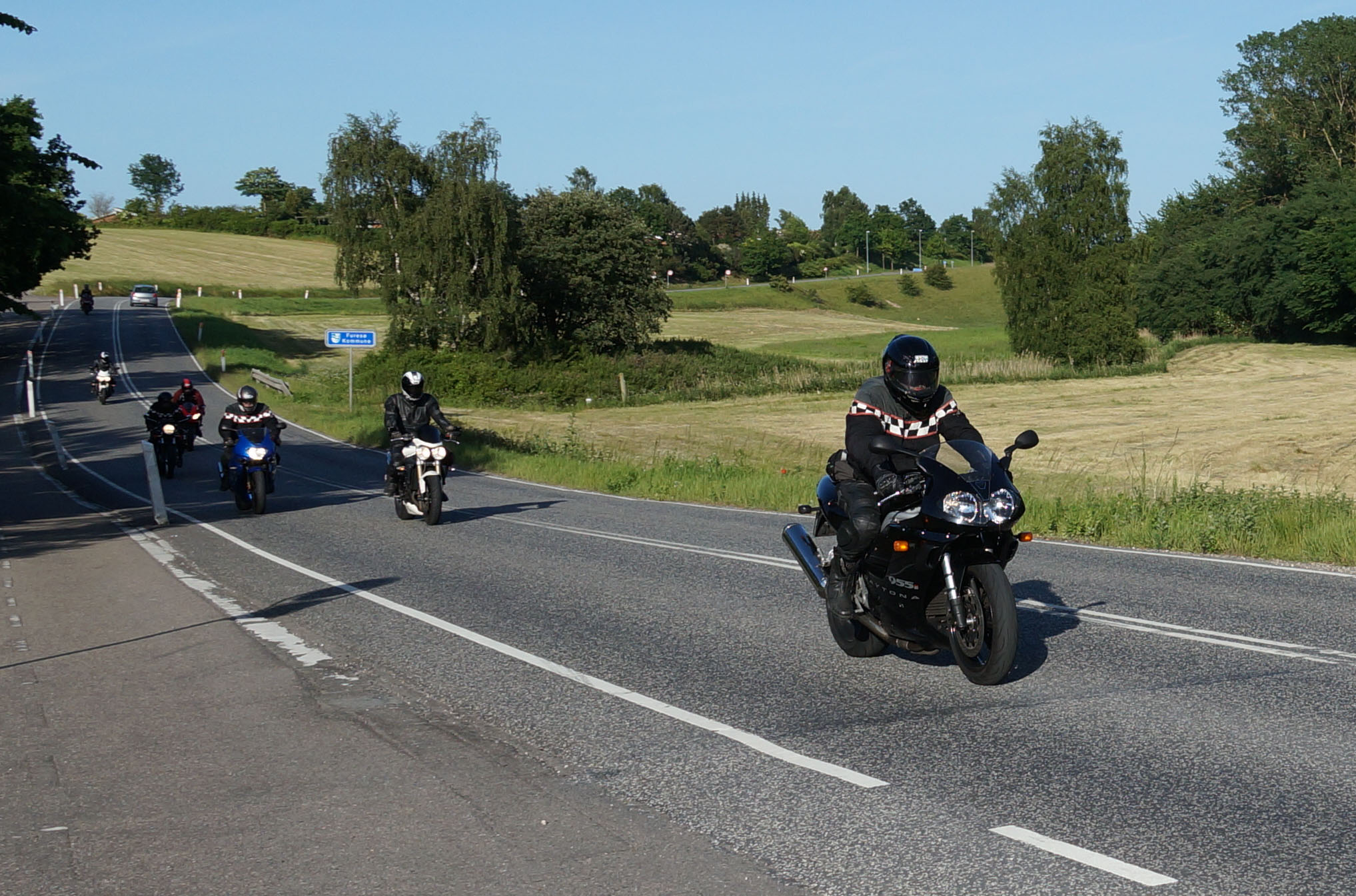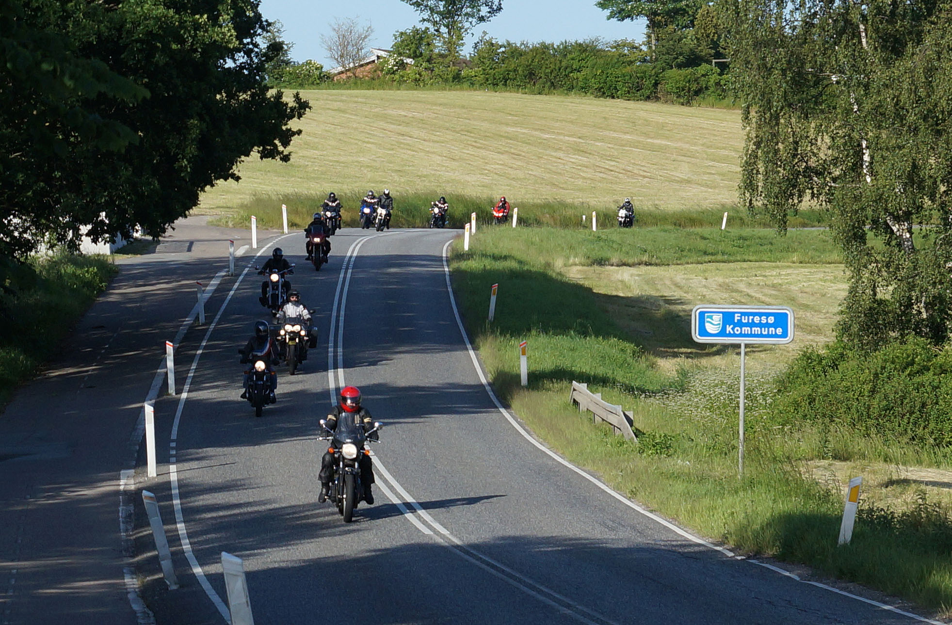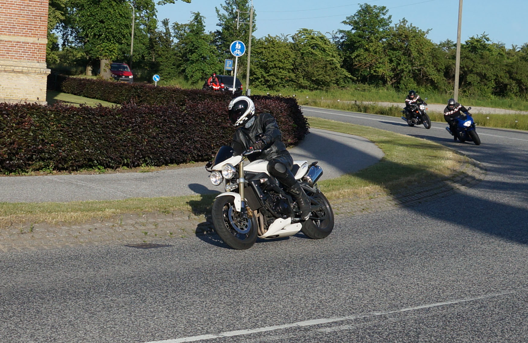 siden af et godt sving på Sundbylillevej for at fange motorcyklerne der