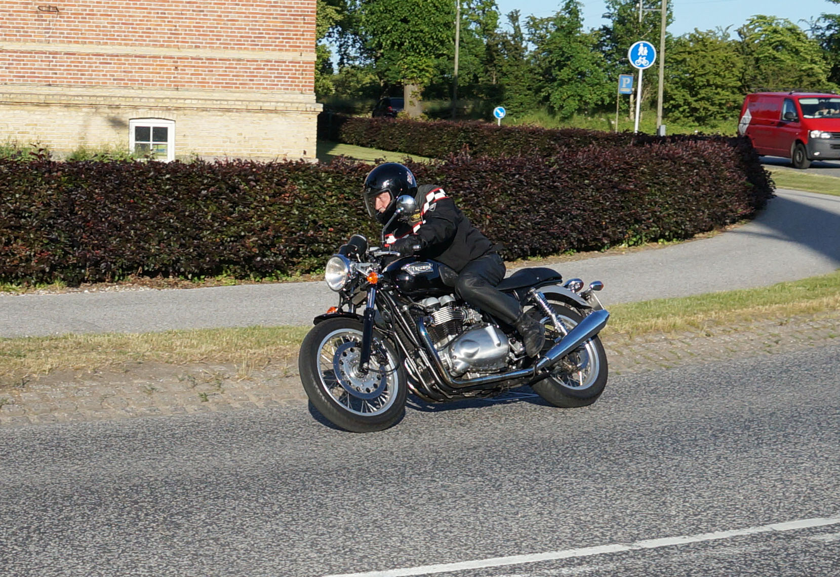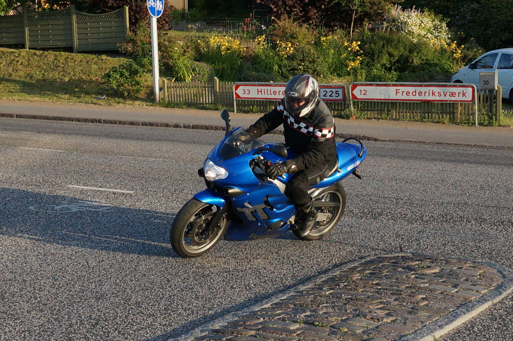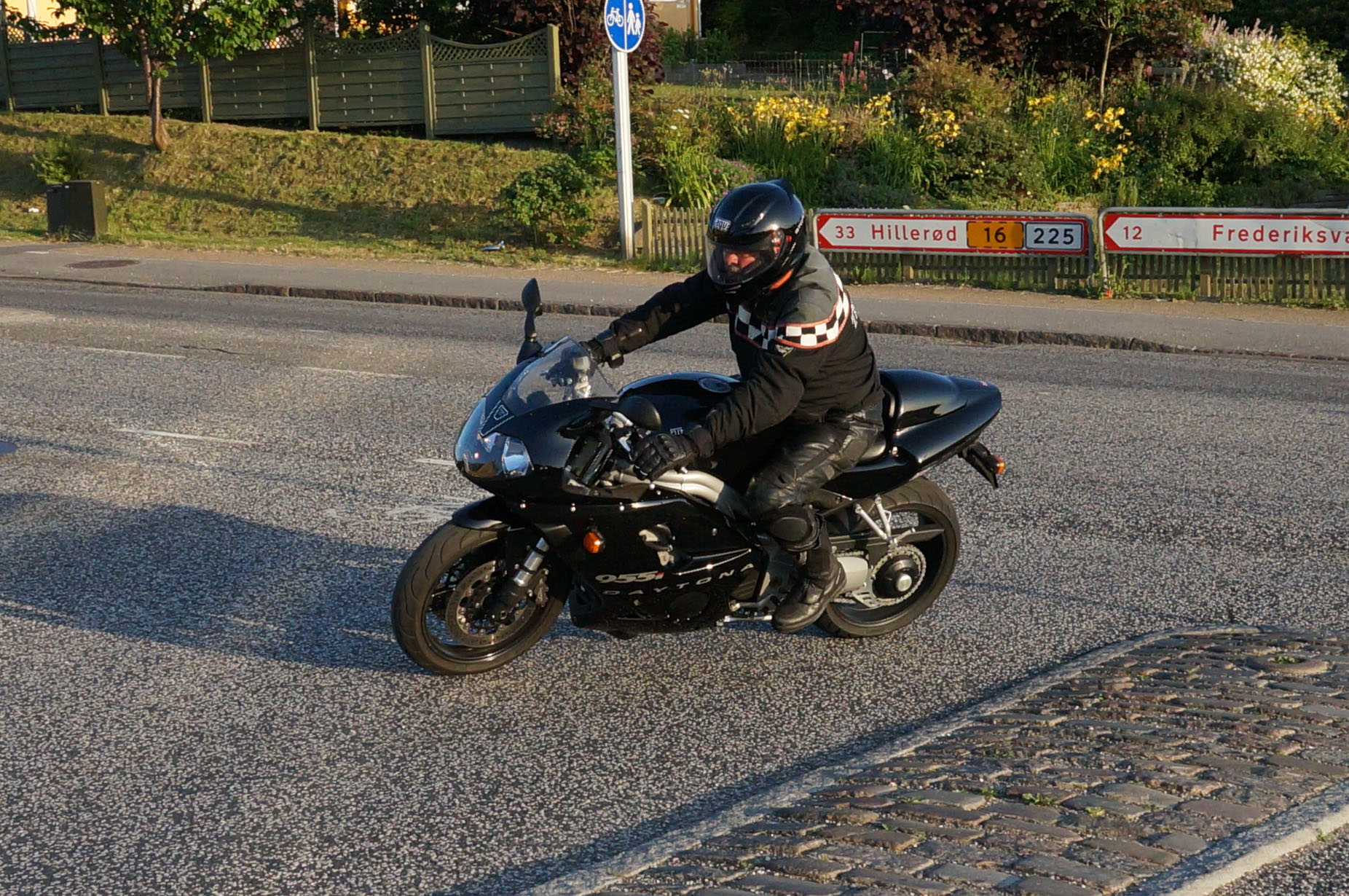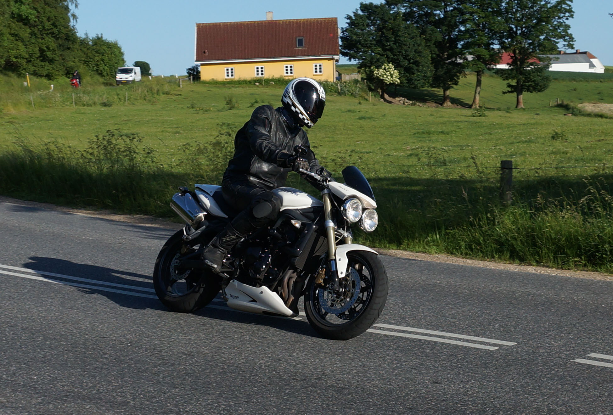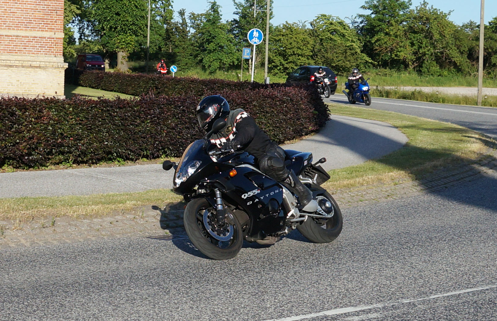 siden af et godt sving på Sundbylillevej for at fange motorcyklerne der
