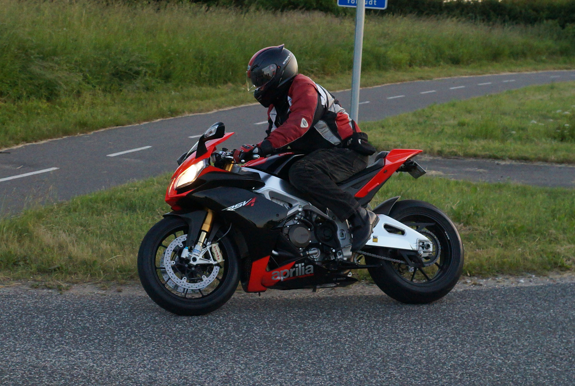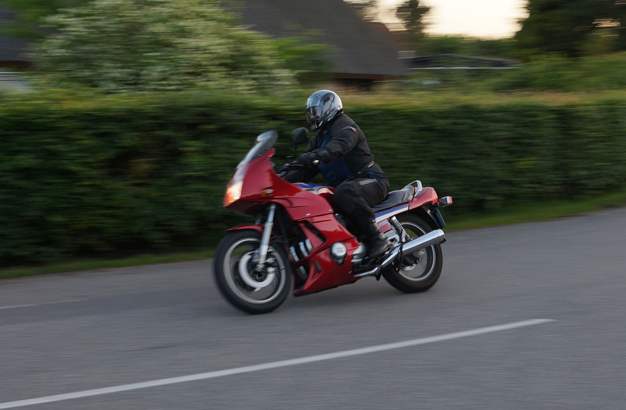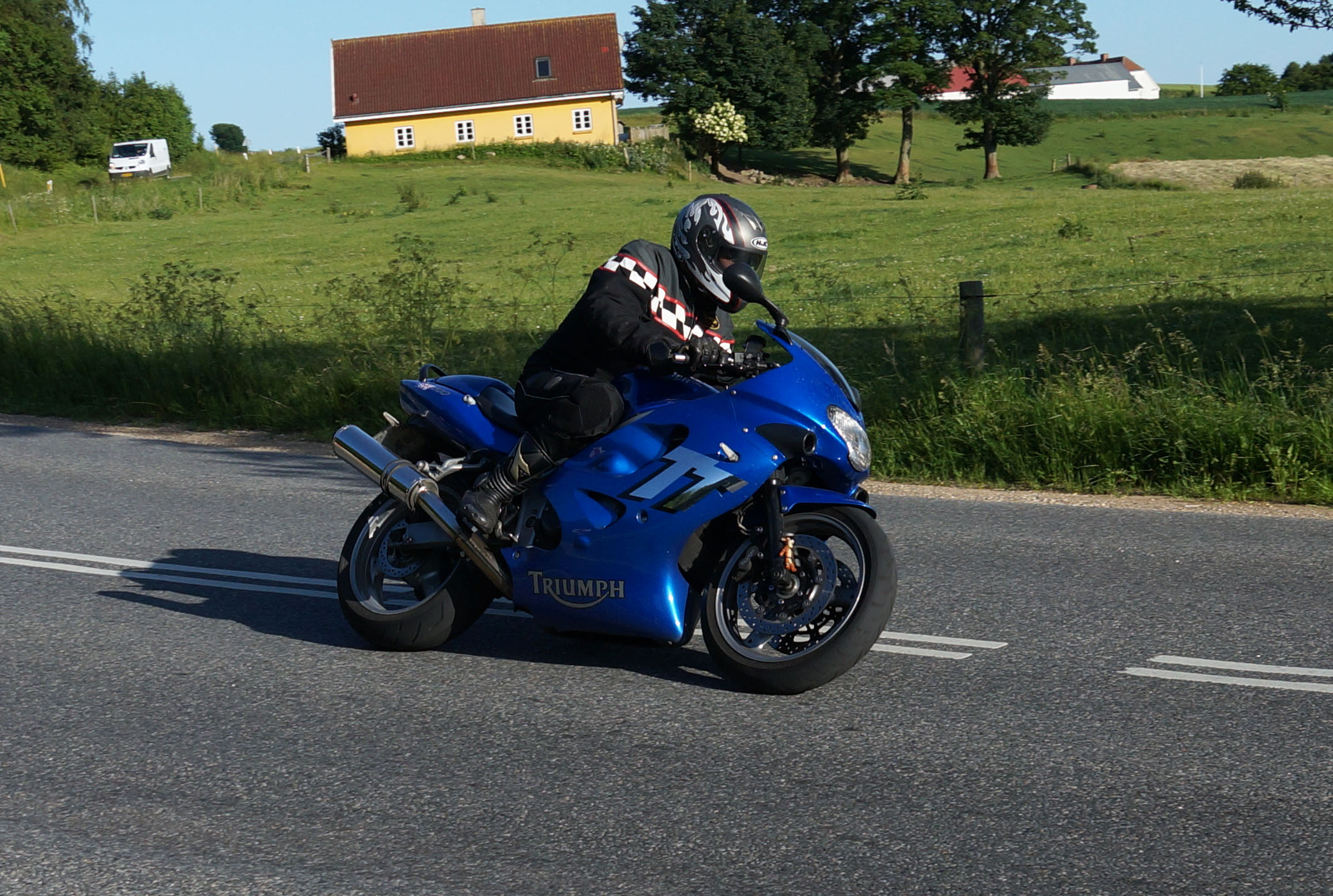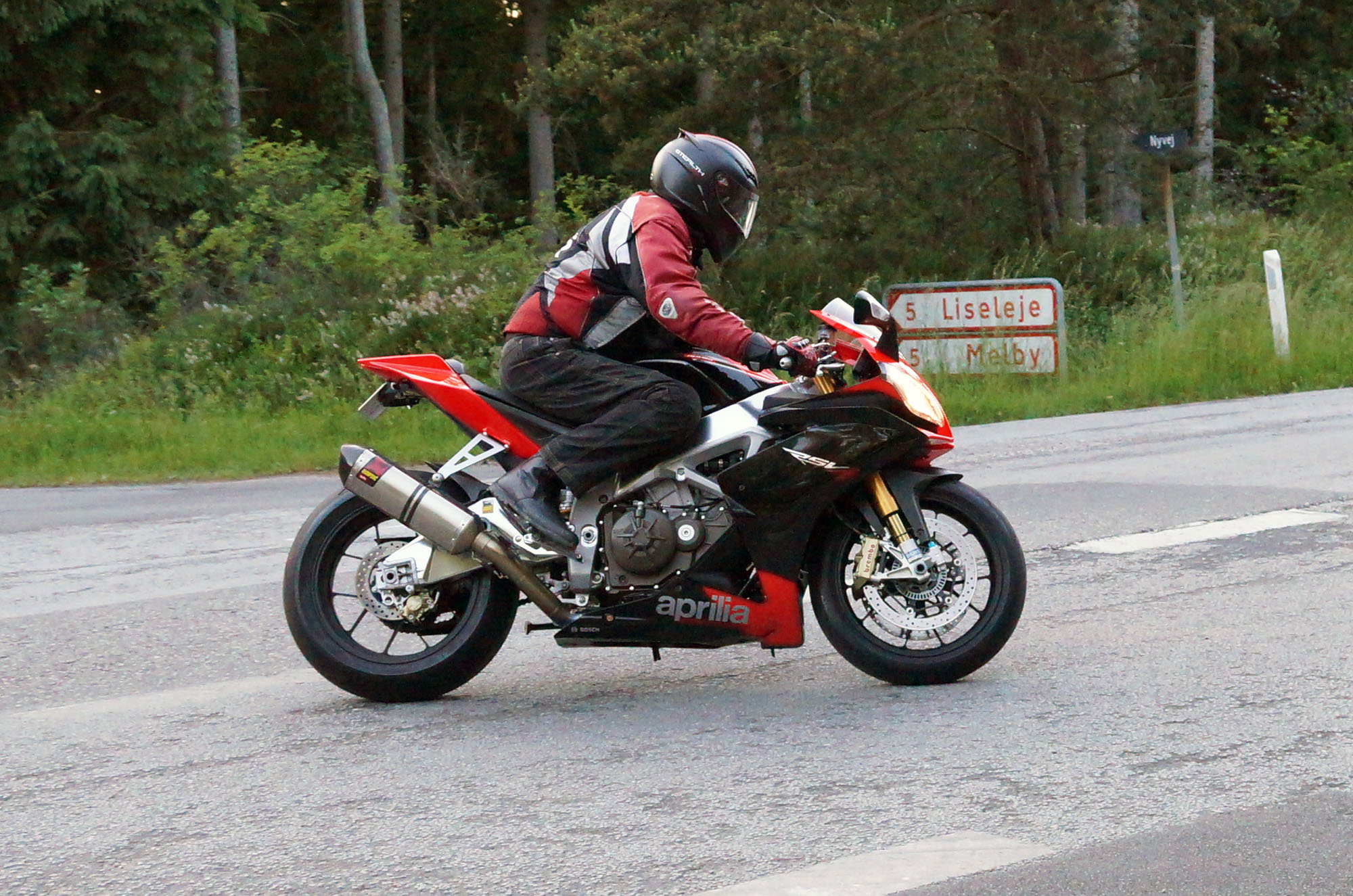 siden af et godt sving på Sundbylillevej for at fange motorcyklerne der