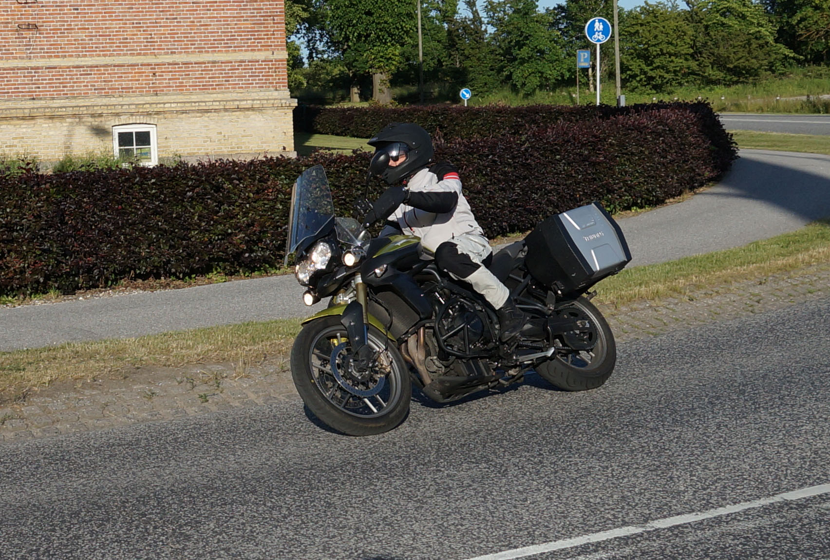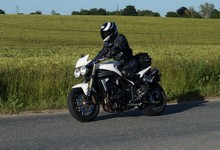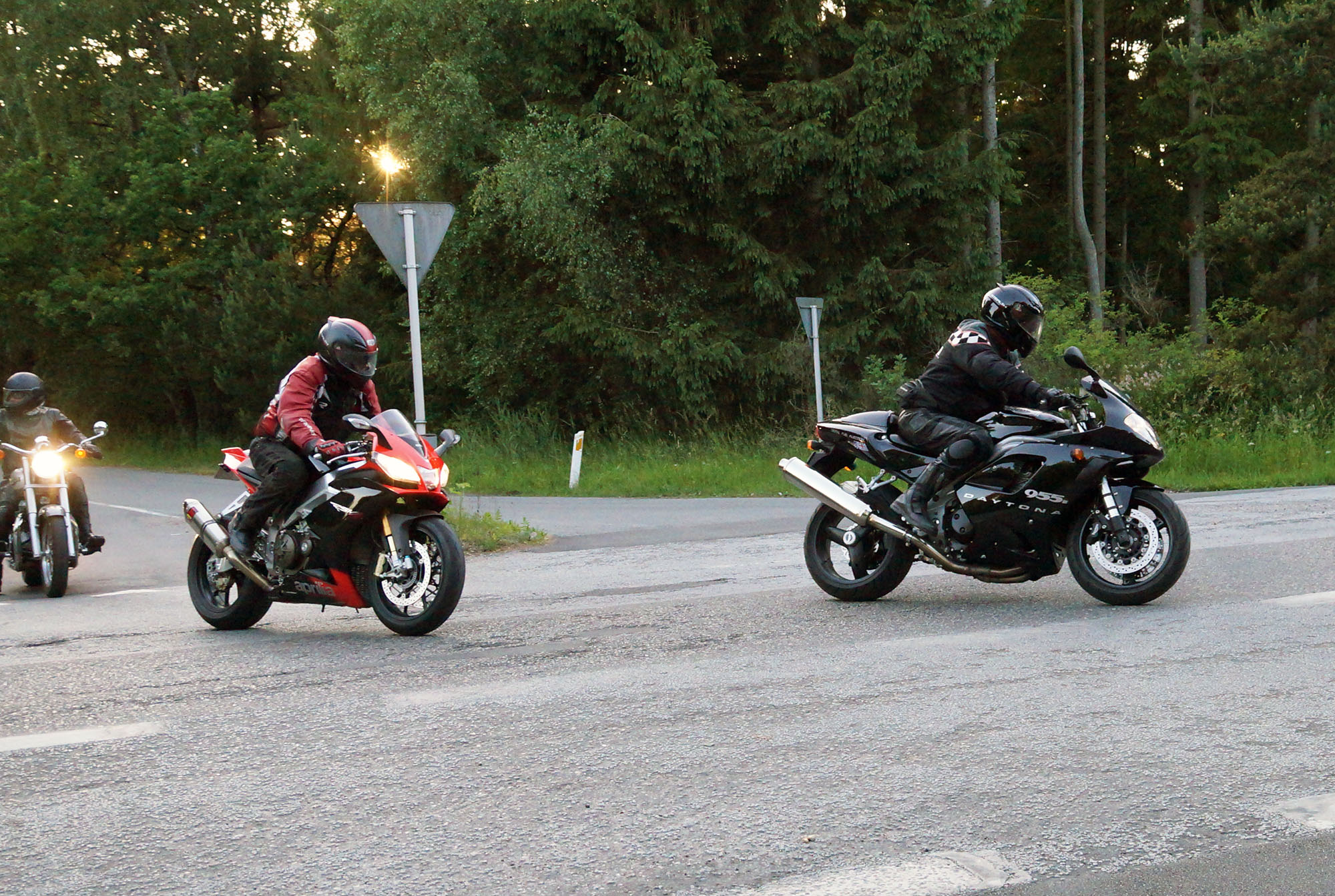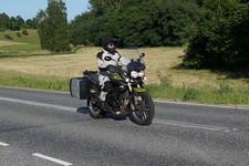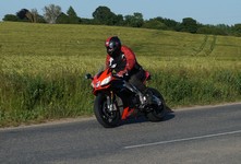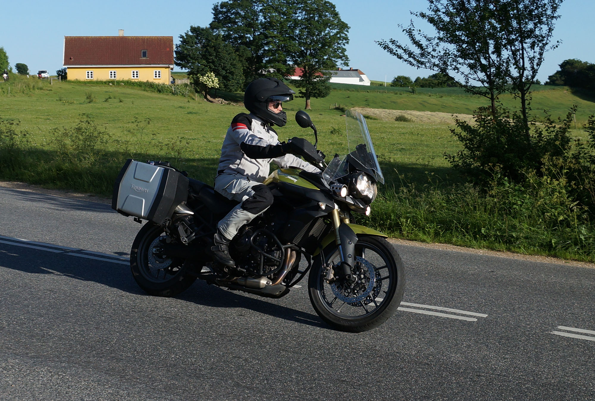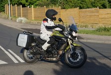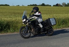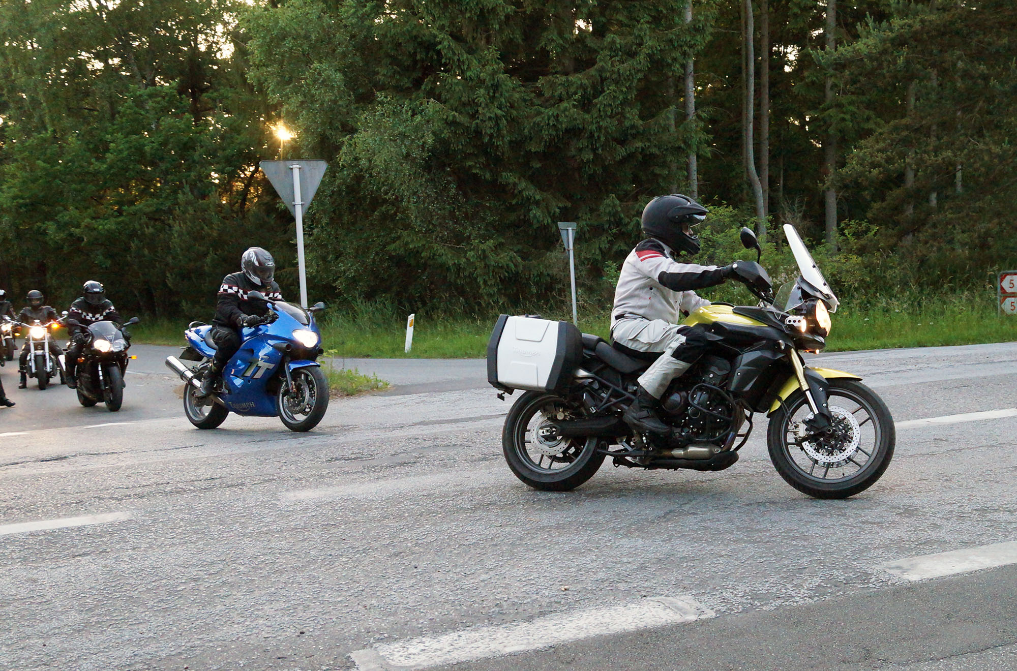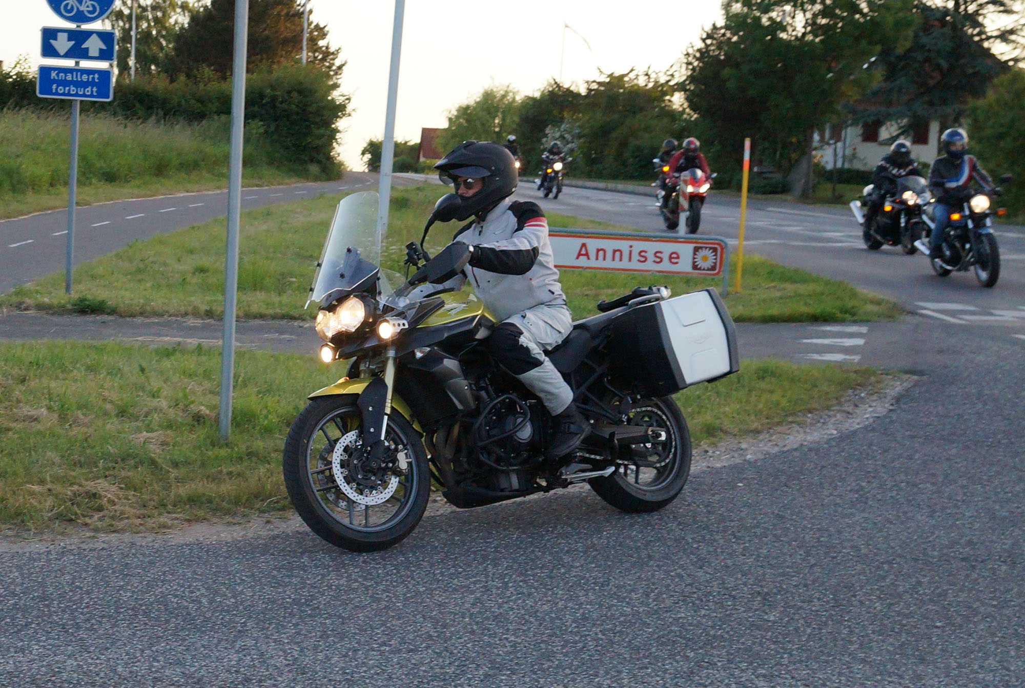 en grøn Tiger 800 -12, Dan på en Aprilia RSV4 -11, og mig selv på en lånt grøn
