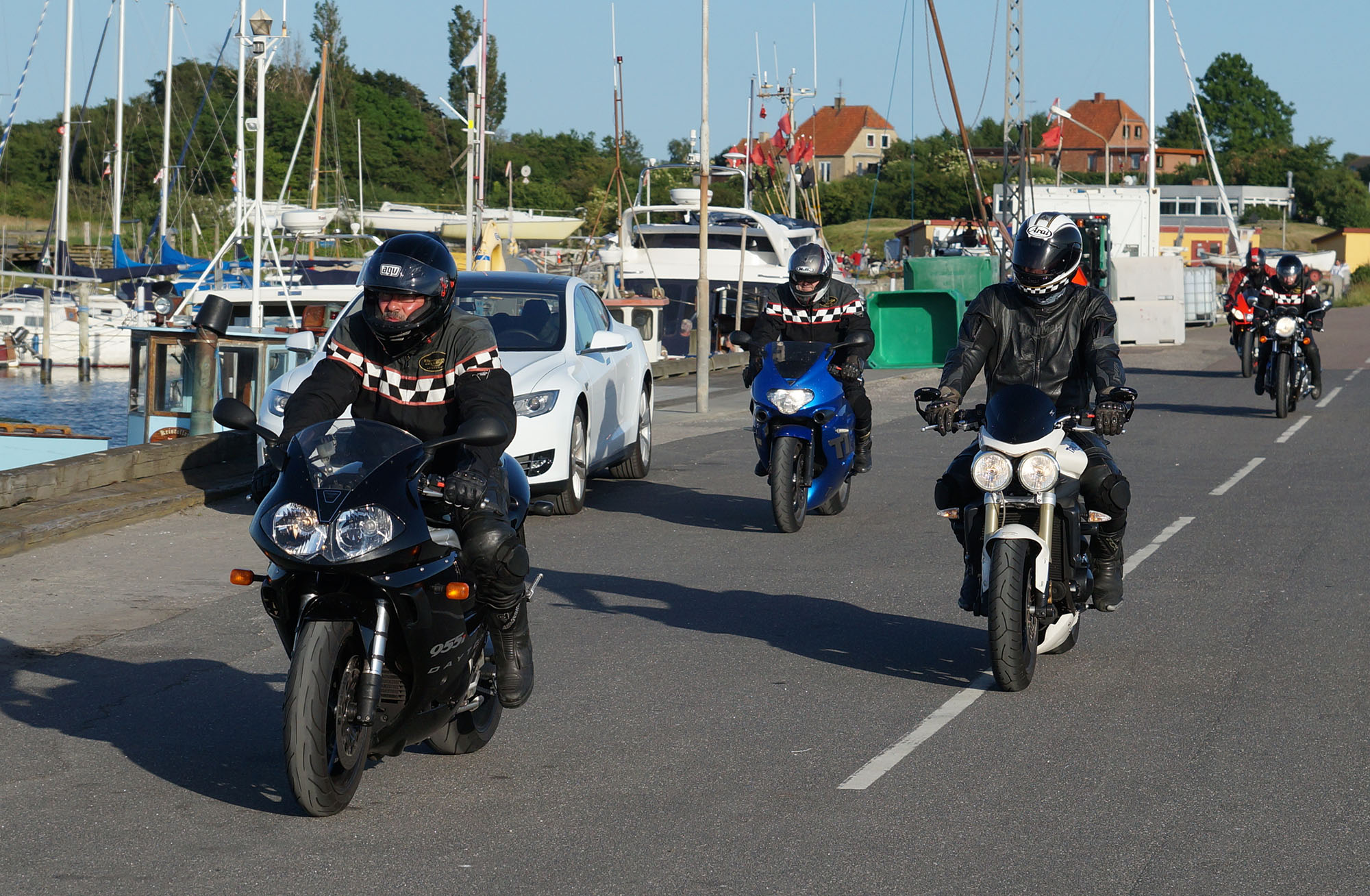 Ib på den sorte Daytona 955 -04, Peter på en sølv America -06, Karl på en sort