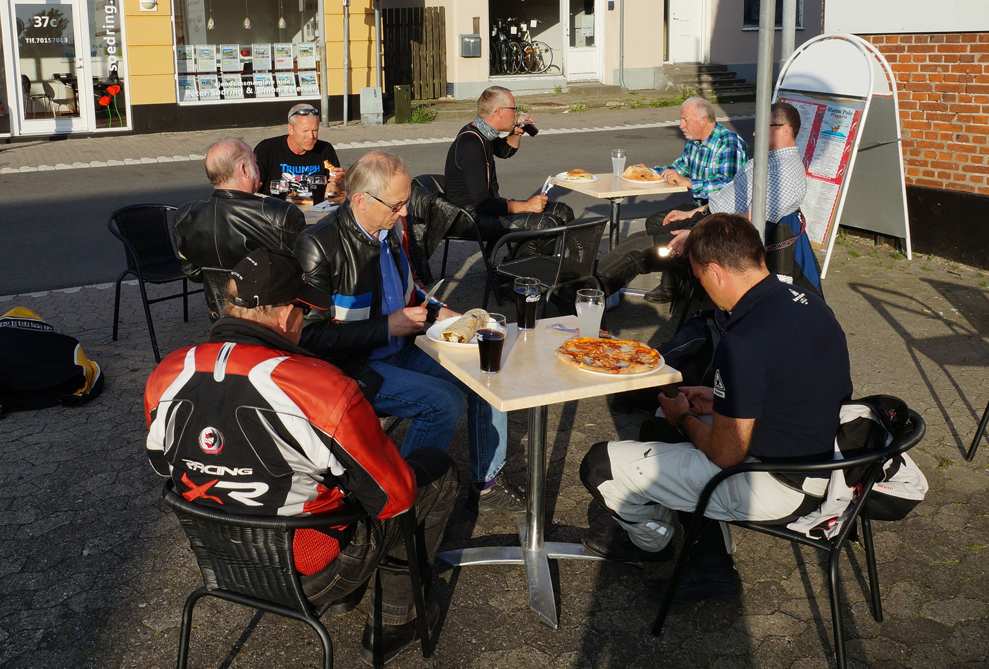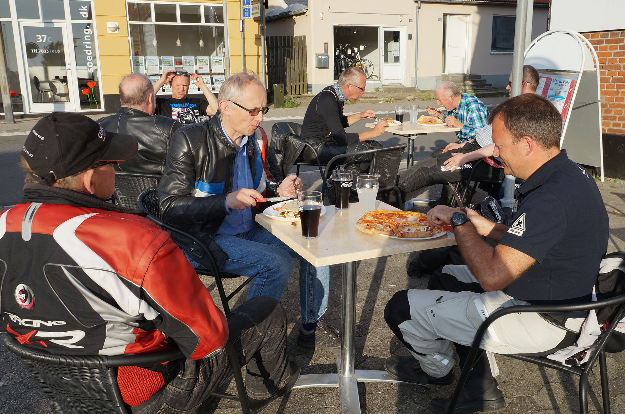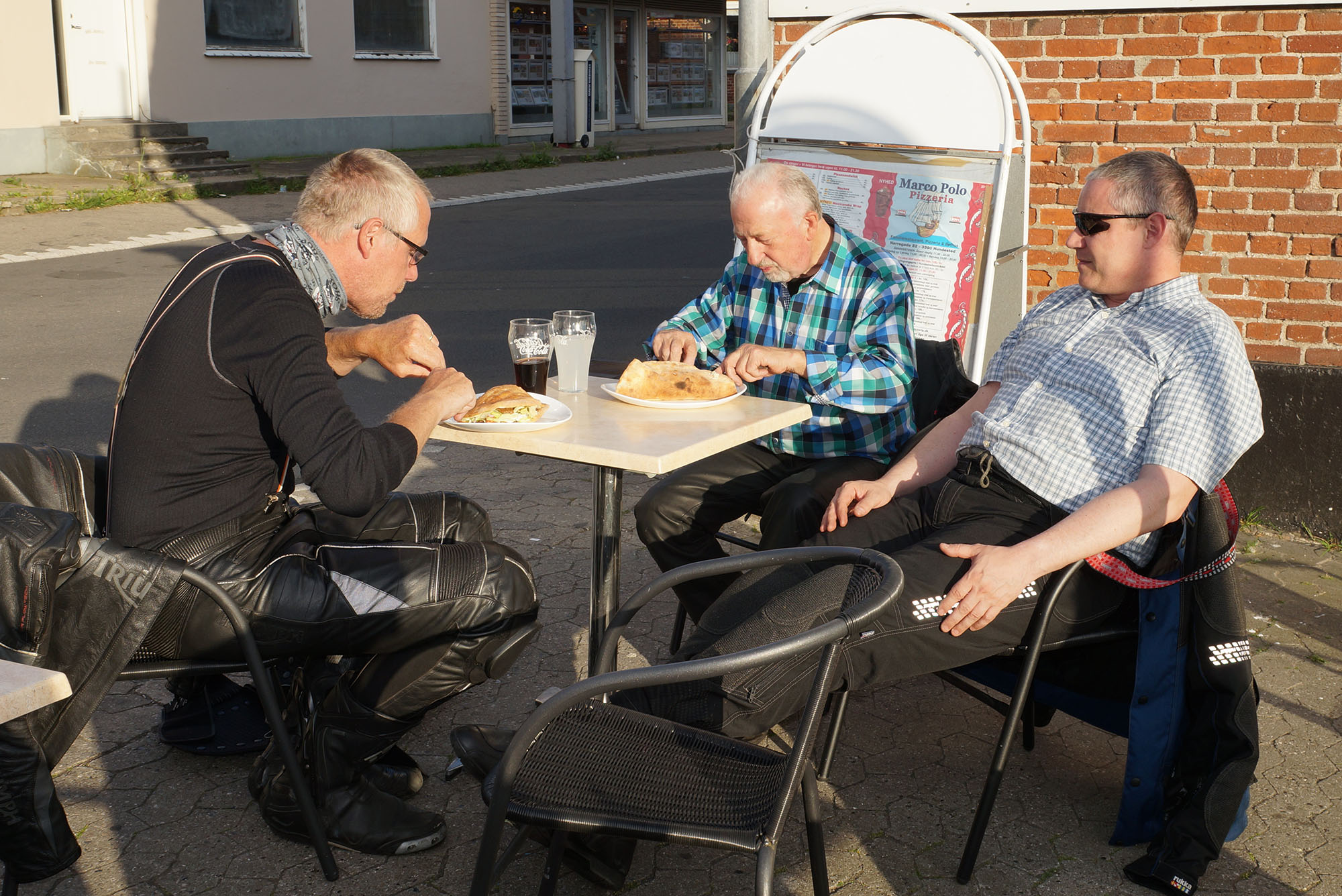 I Hundested tager vi spisepause. Der bestilles pizza, durumruller, burgere og cola.