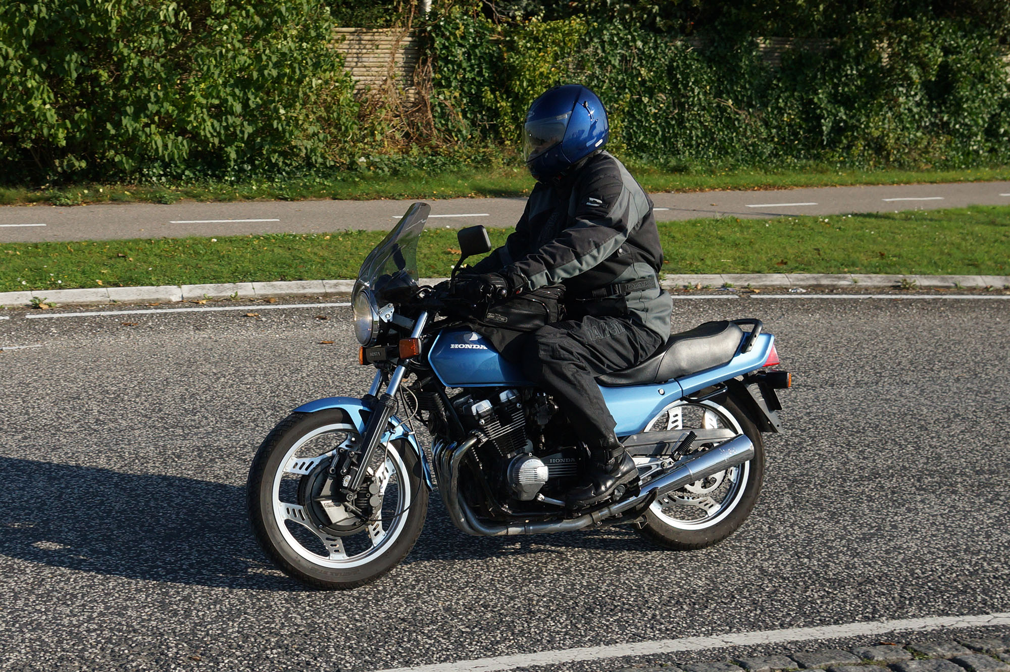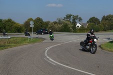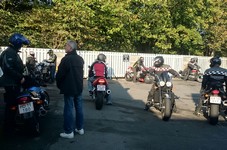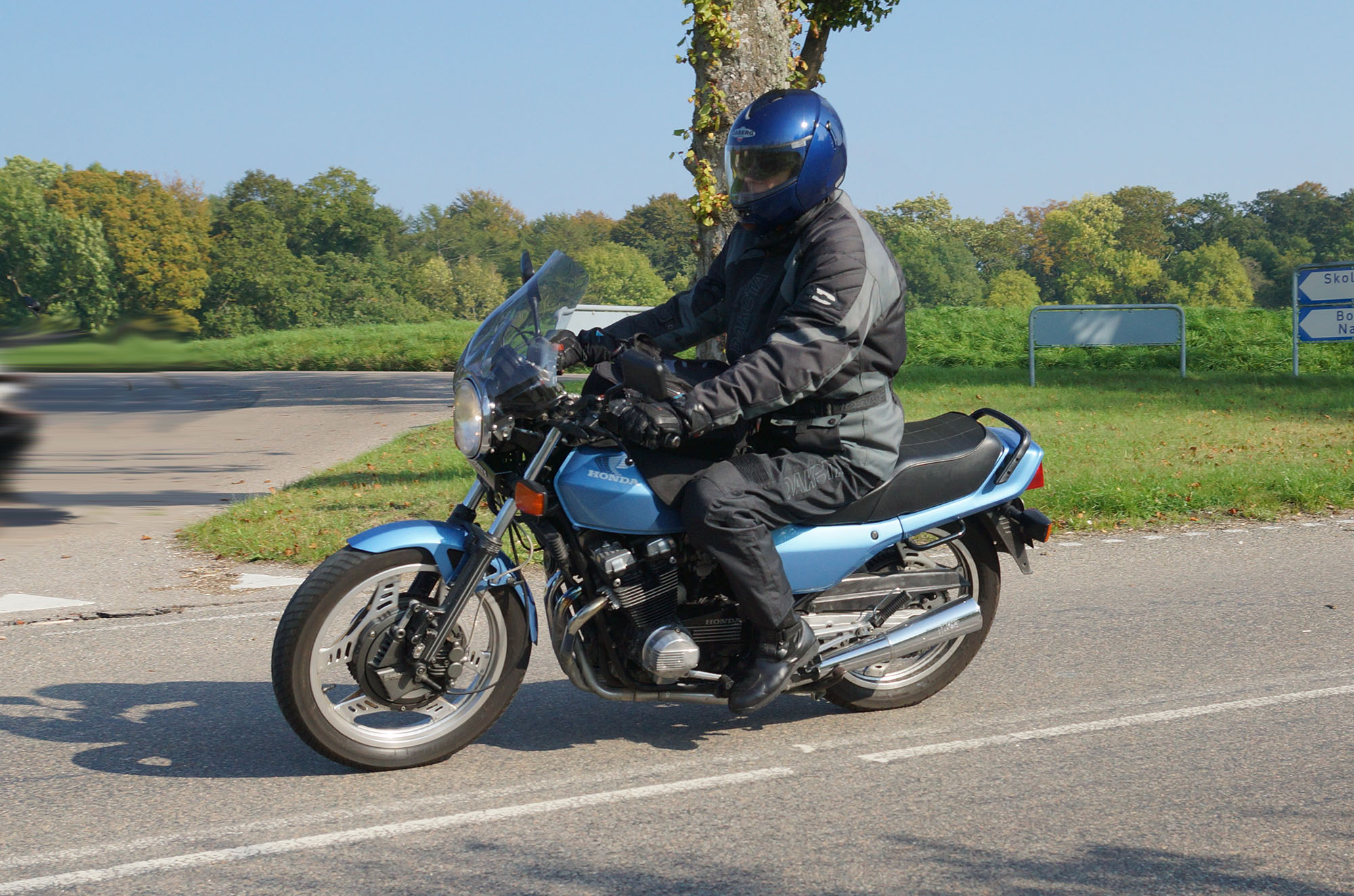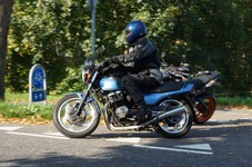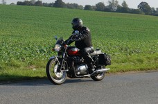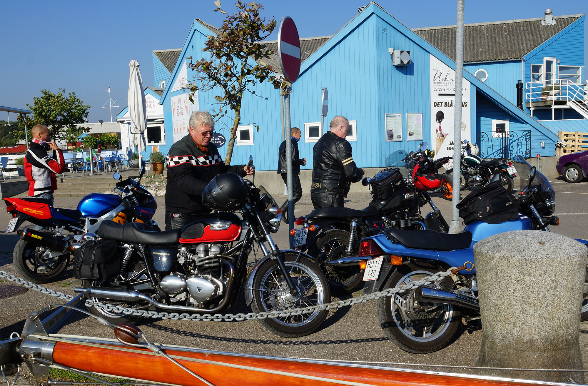 Bonneville -08, Søren på en blå CBX 550 -84, Steen på en grøn Bonneville -06,
