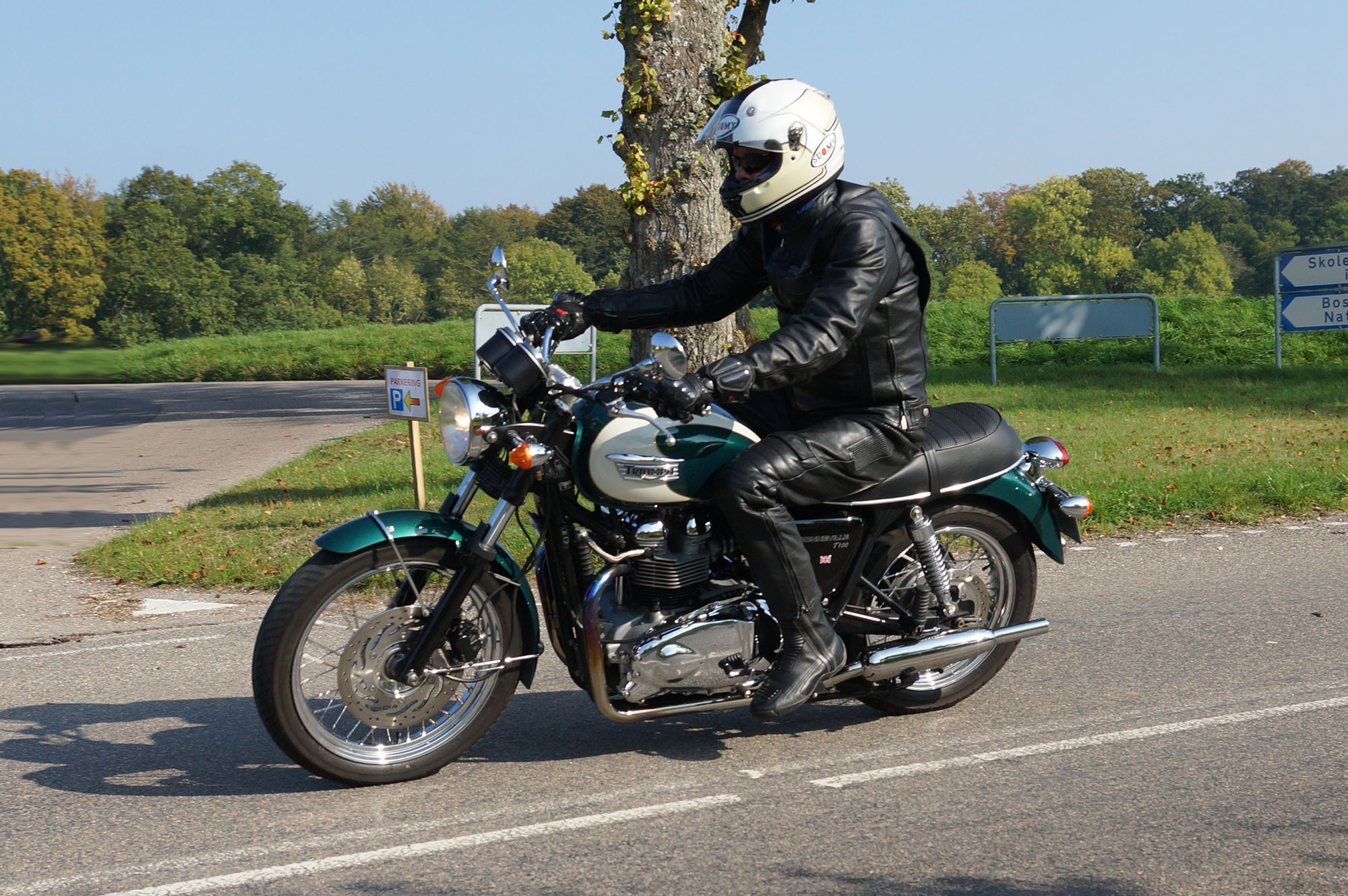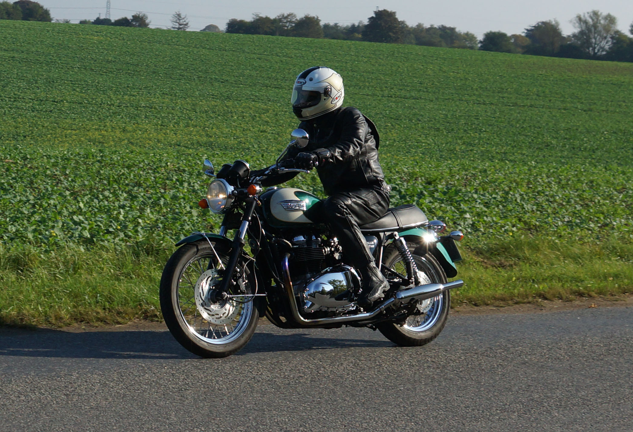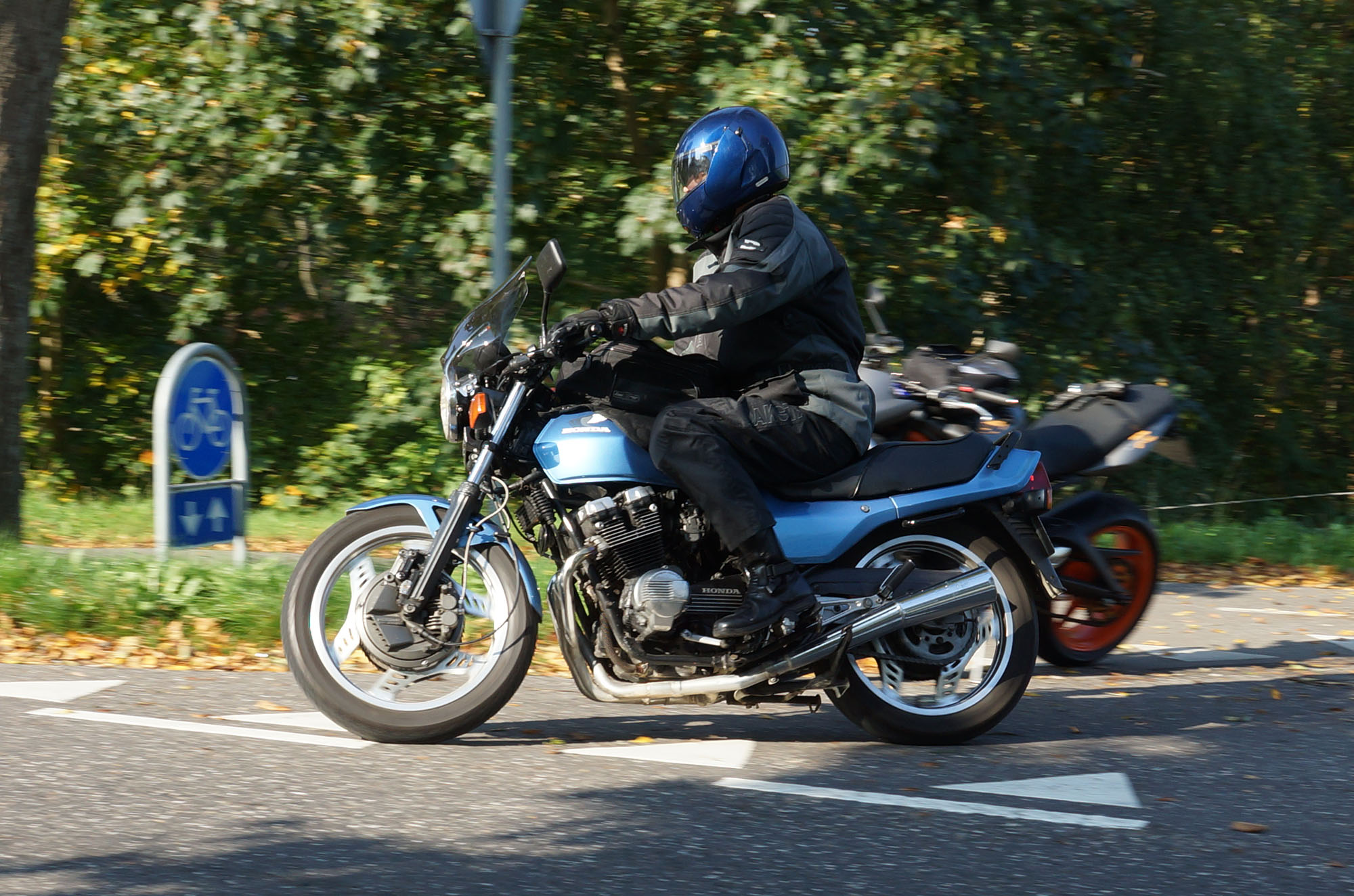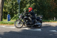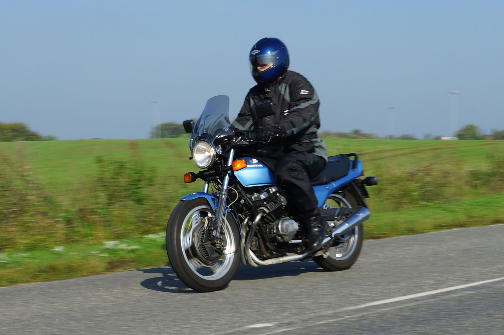Bonneville -08, Søren på en blå CBX 550 -84, Steen på en grøn Bonneville -06,
