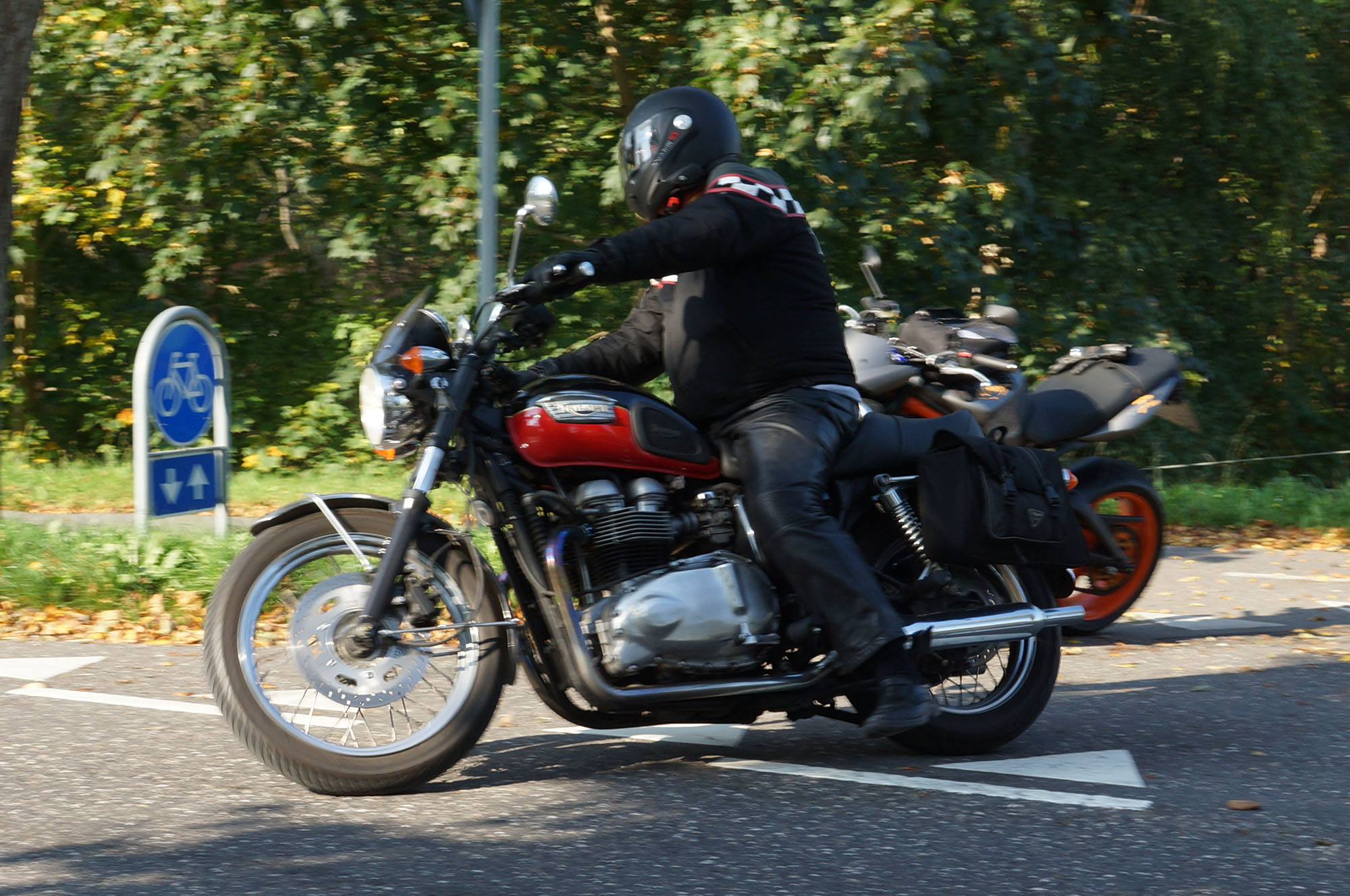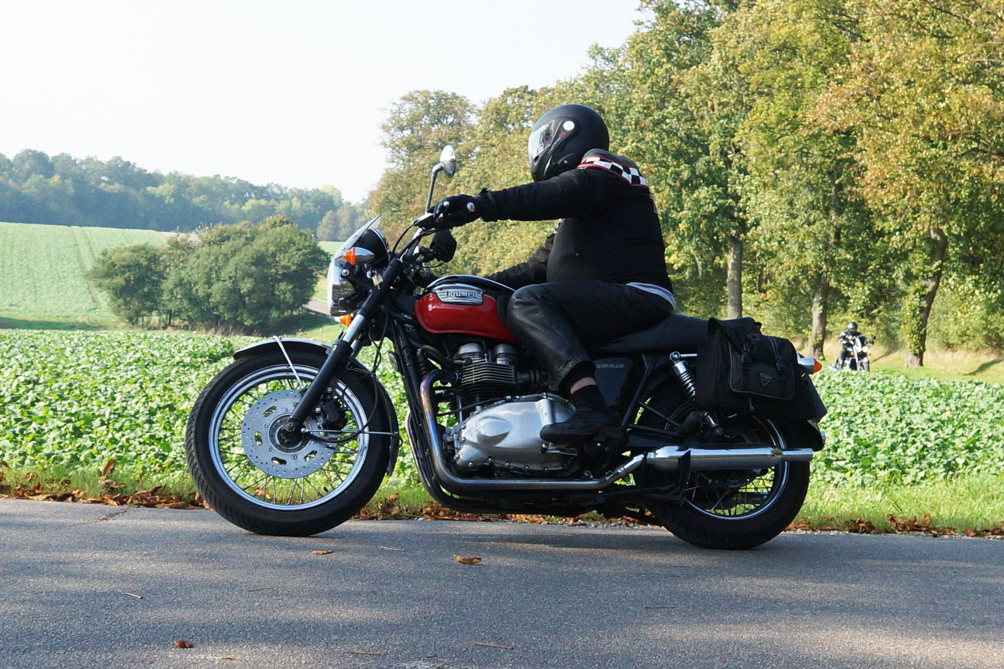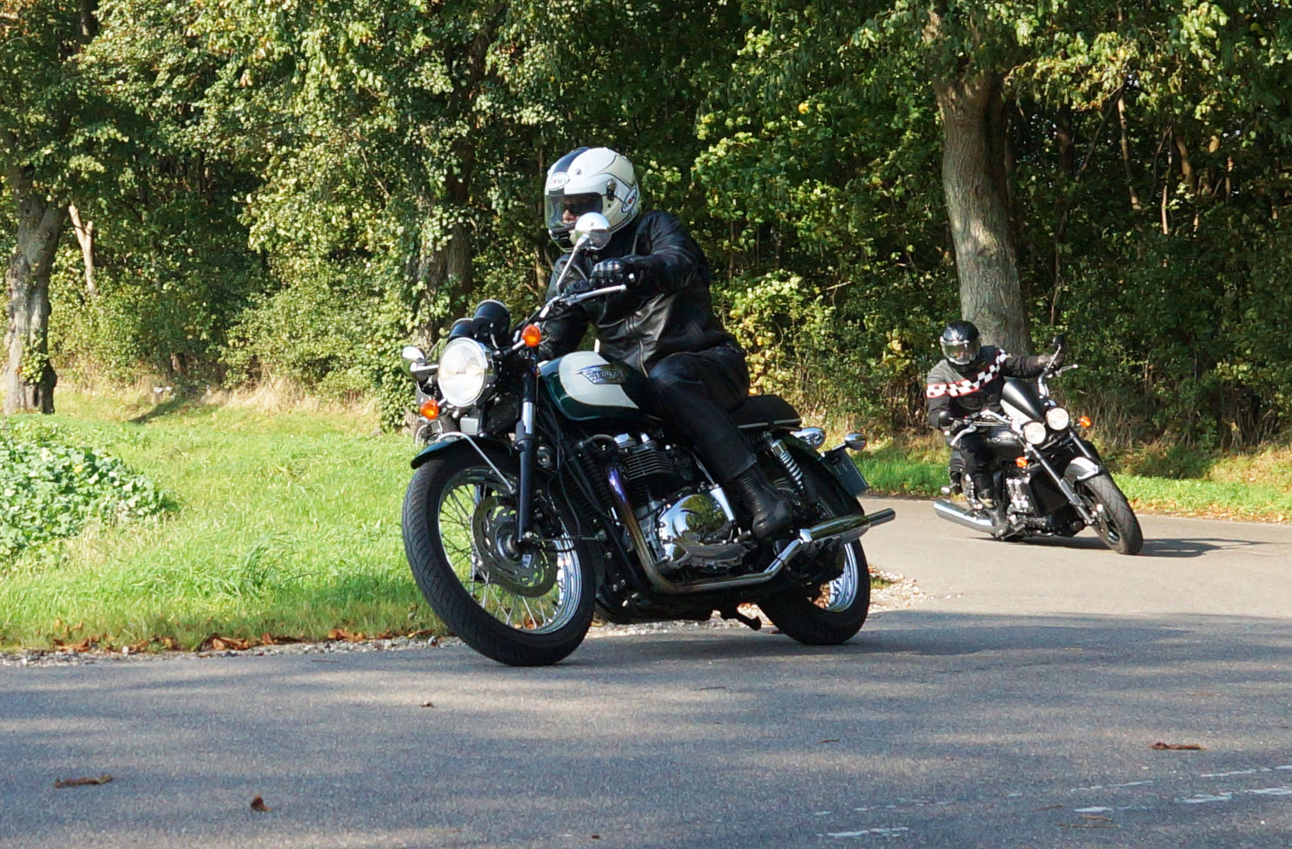 Hans på en special sort/rød Bonneville -05, Jan på en matsort Rocket III -14,