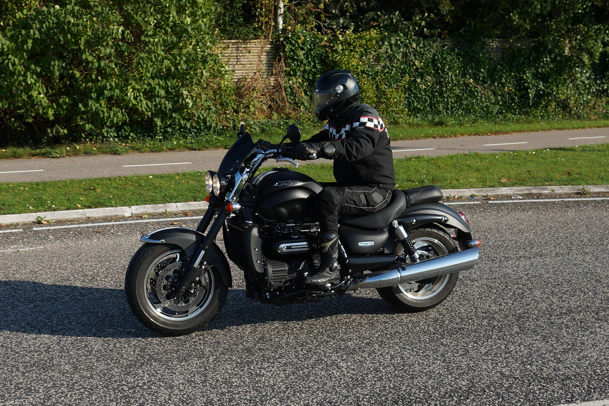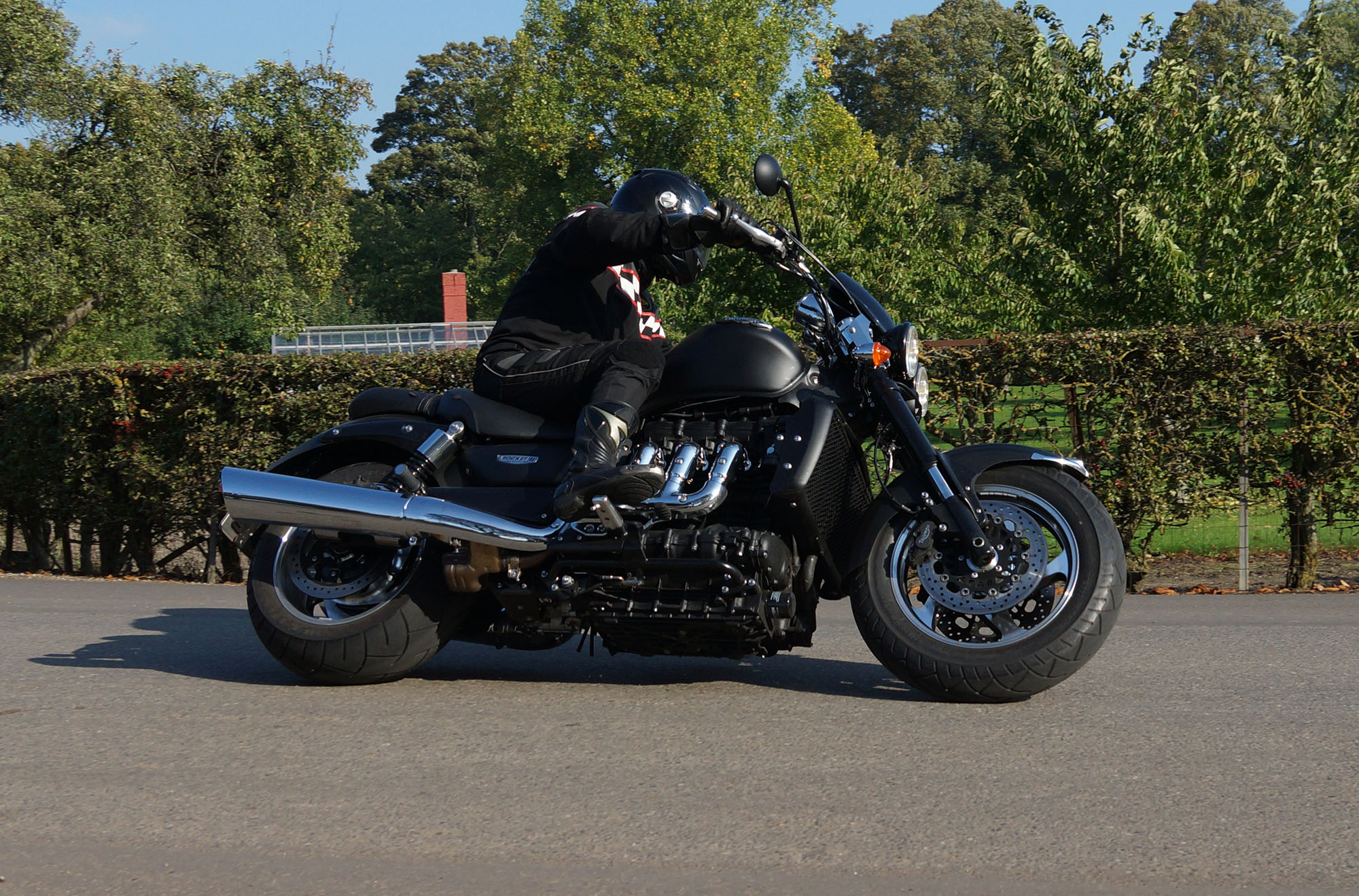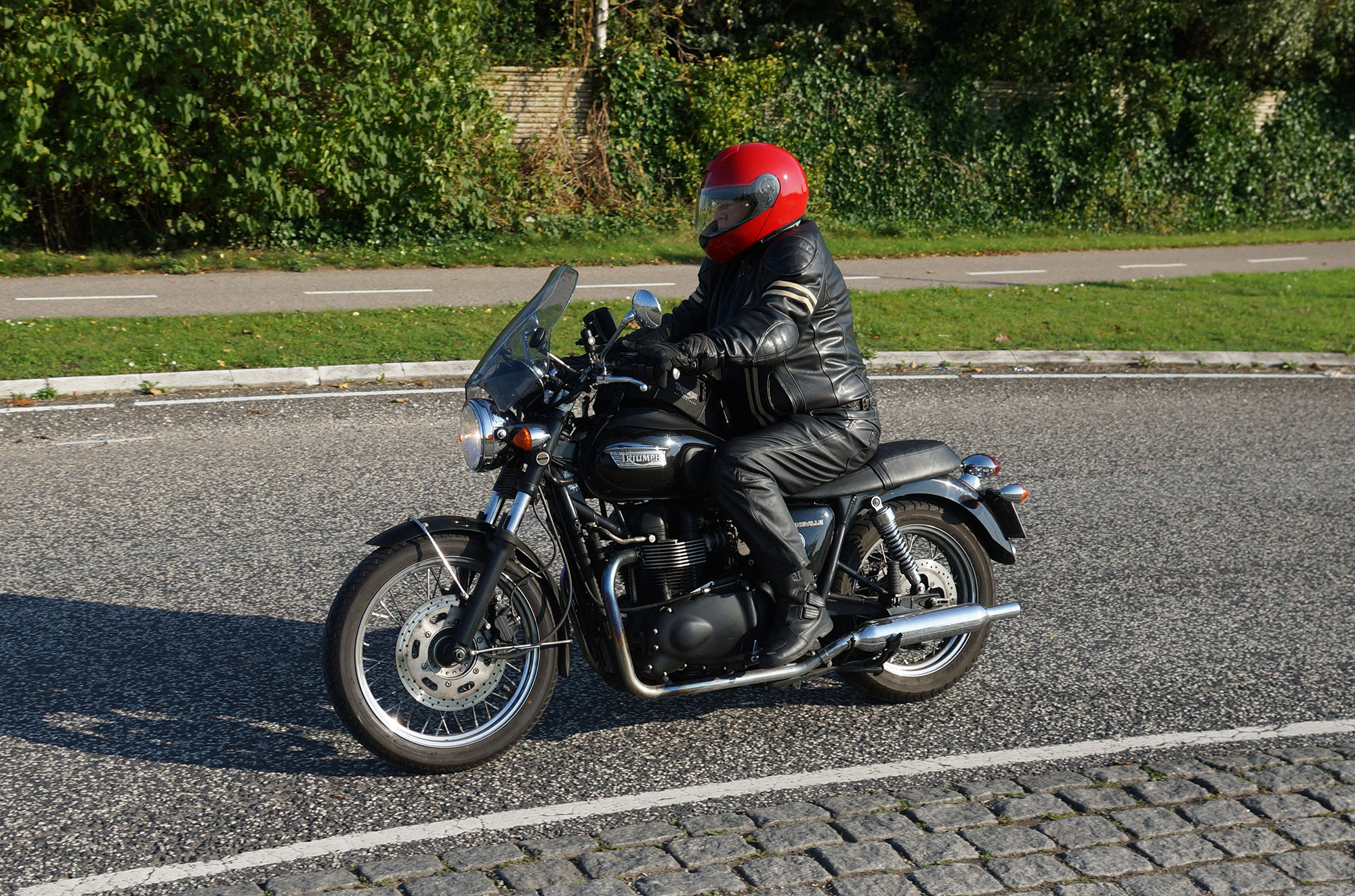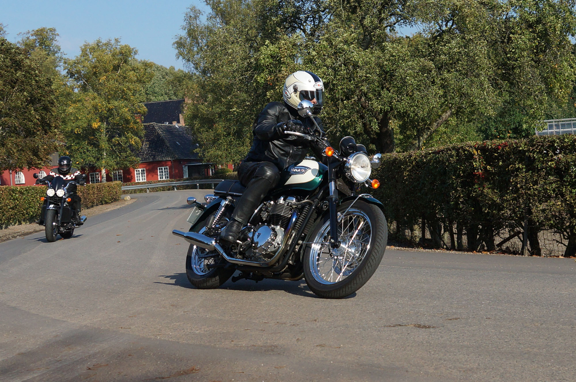Hans på en special sort/rød Bonneville -05, Jan på en matsort Rocket III -14,