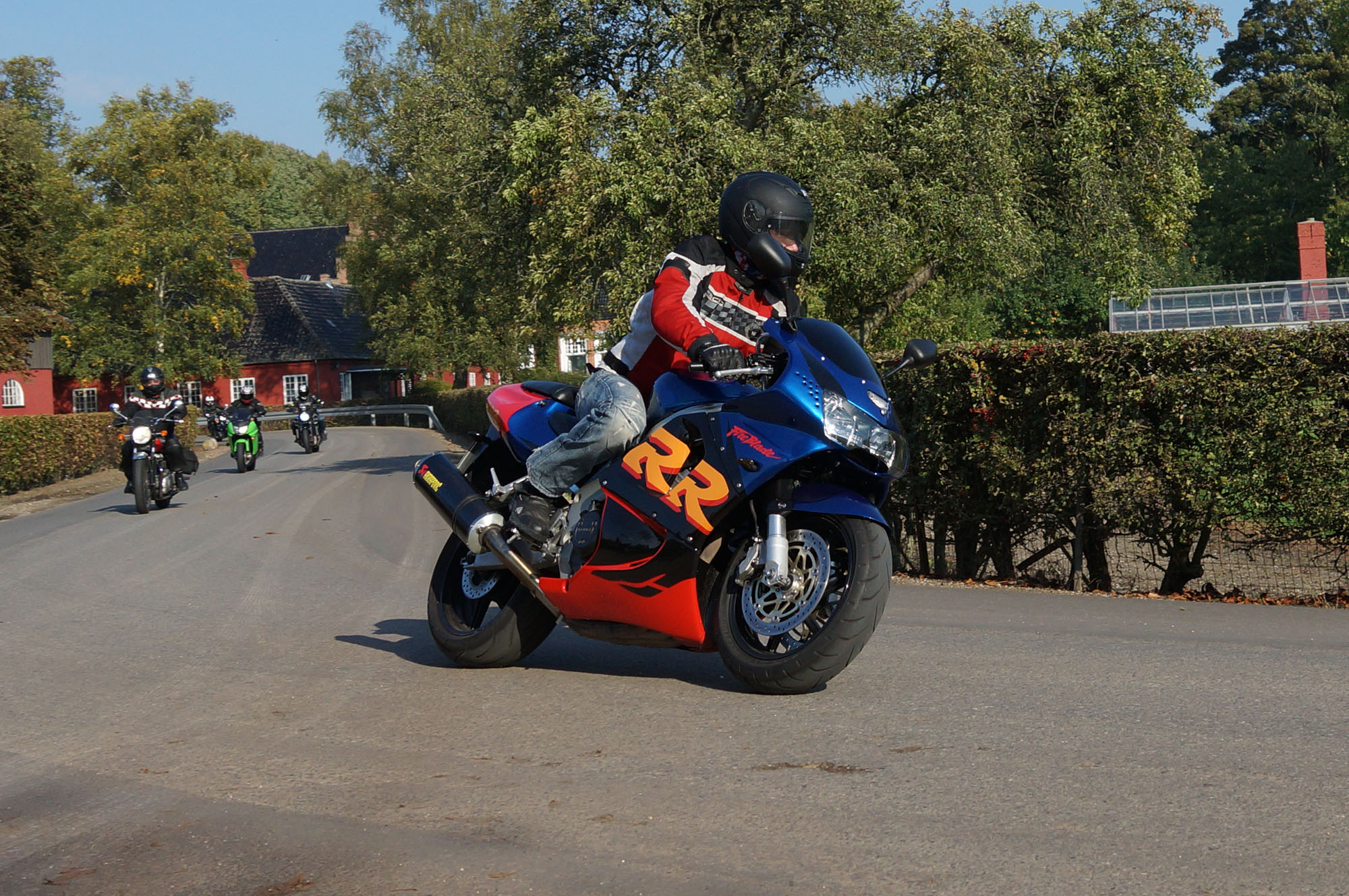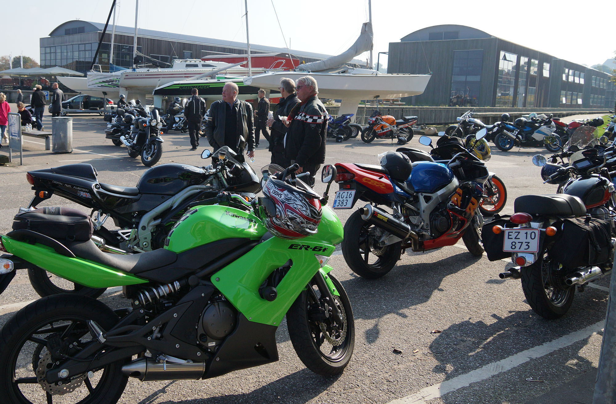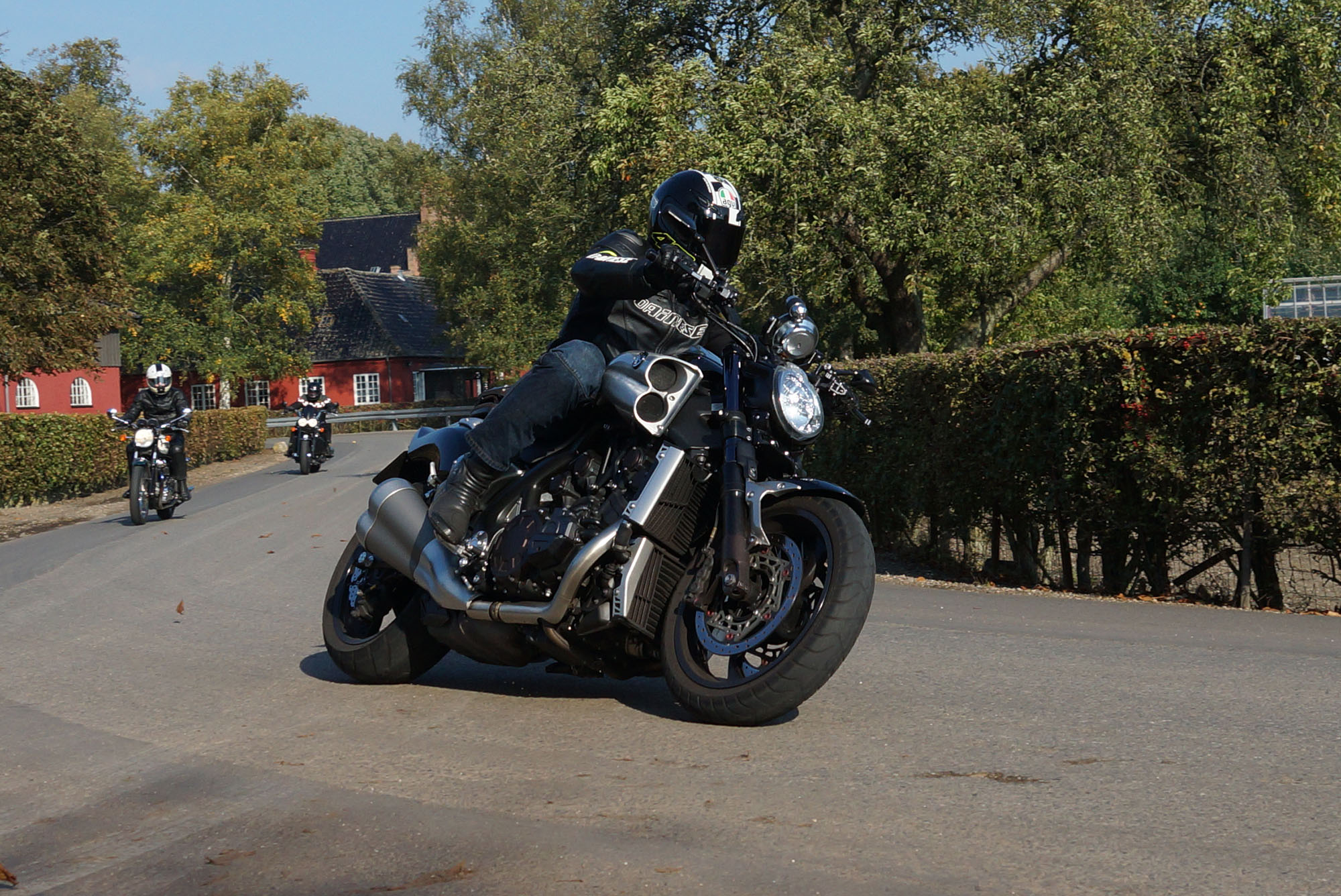 Ib på en sort Daytona 955 -04, Dan på en rød RSV4 -11, Benny på en sort V-Max -09,