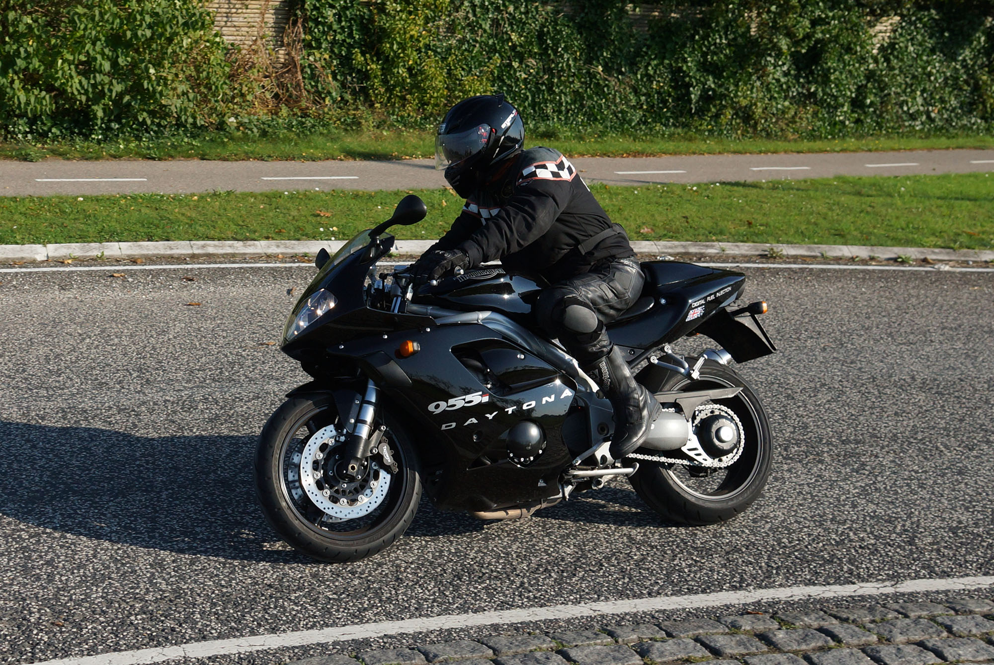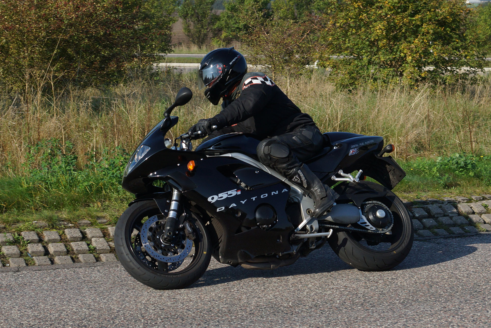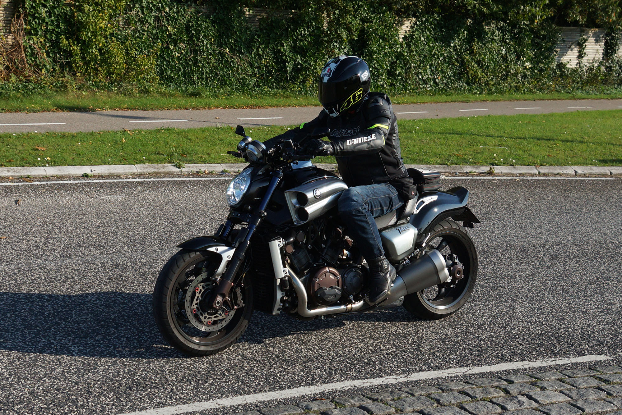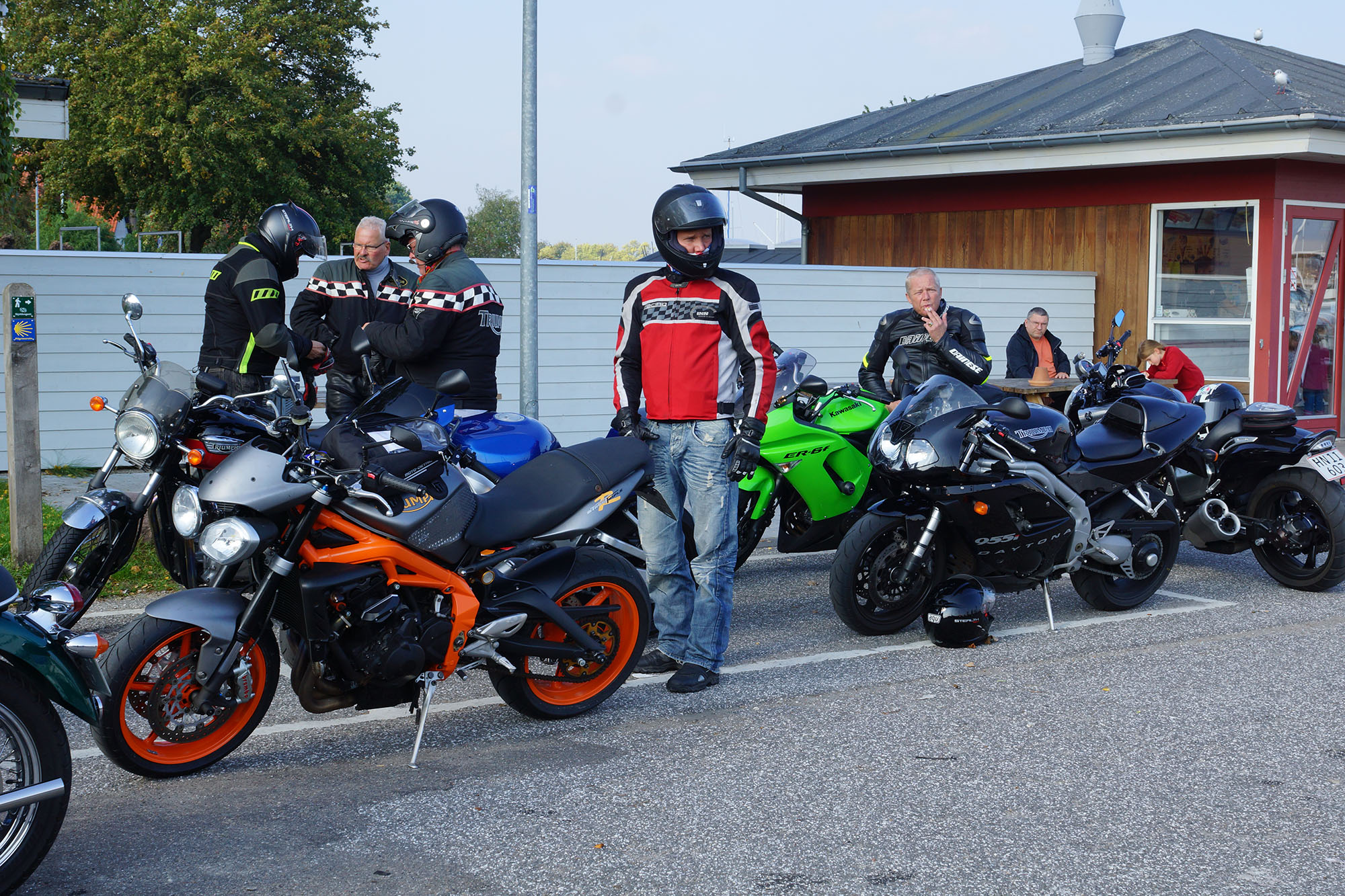 Ib på en sort Daytona 955 -04, Dan på en rød RSV4 -11, Benny på en sort V-Max -09,
