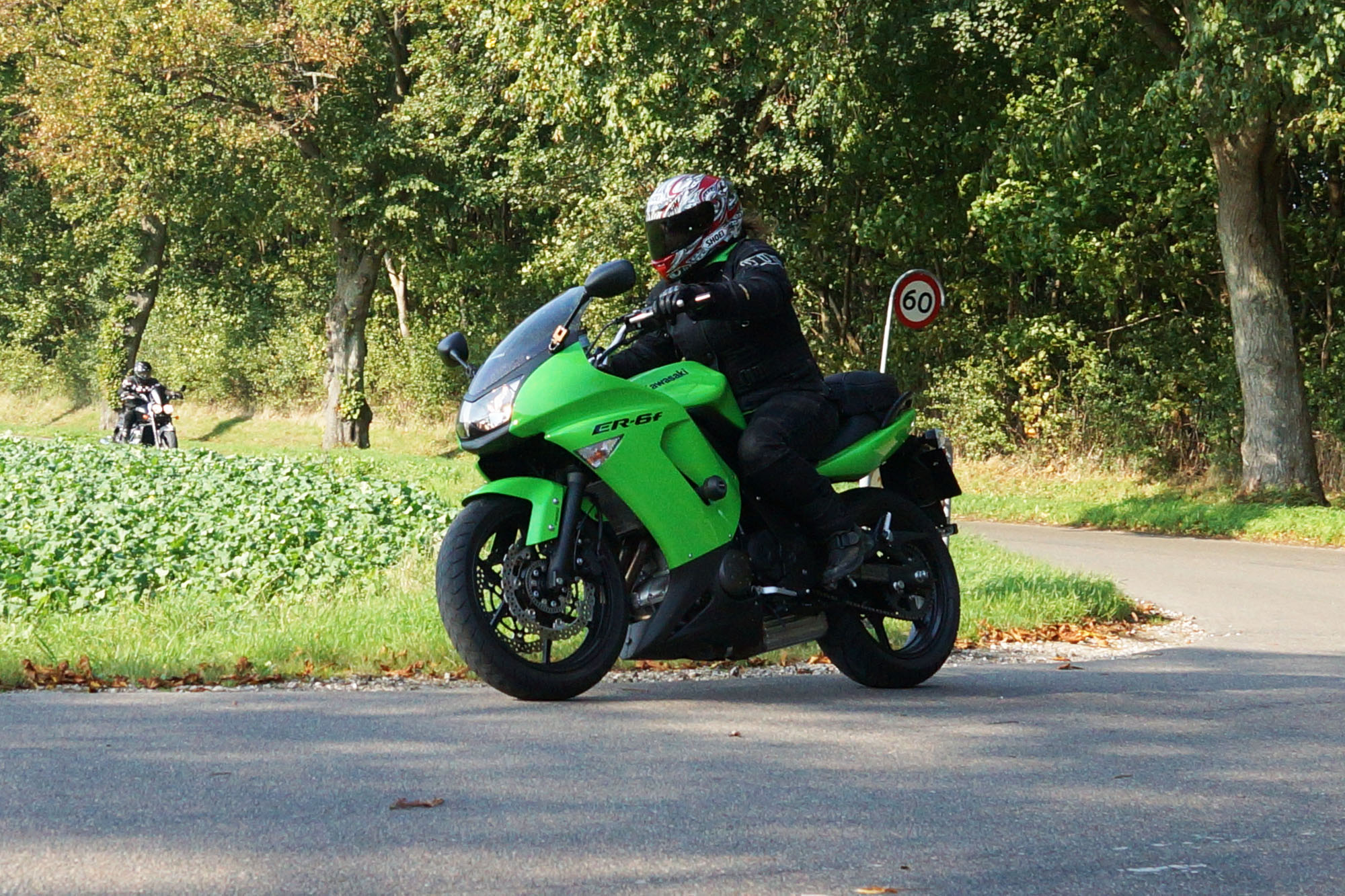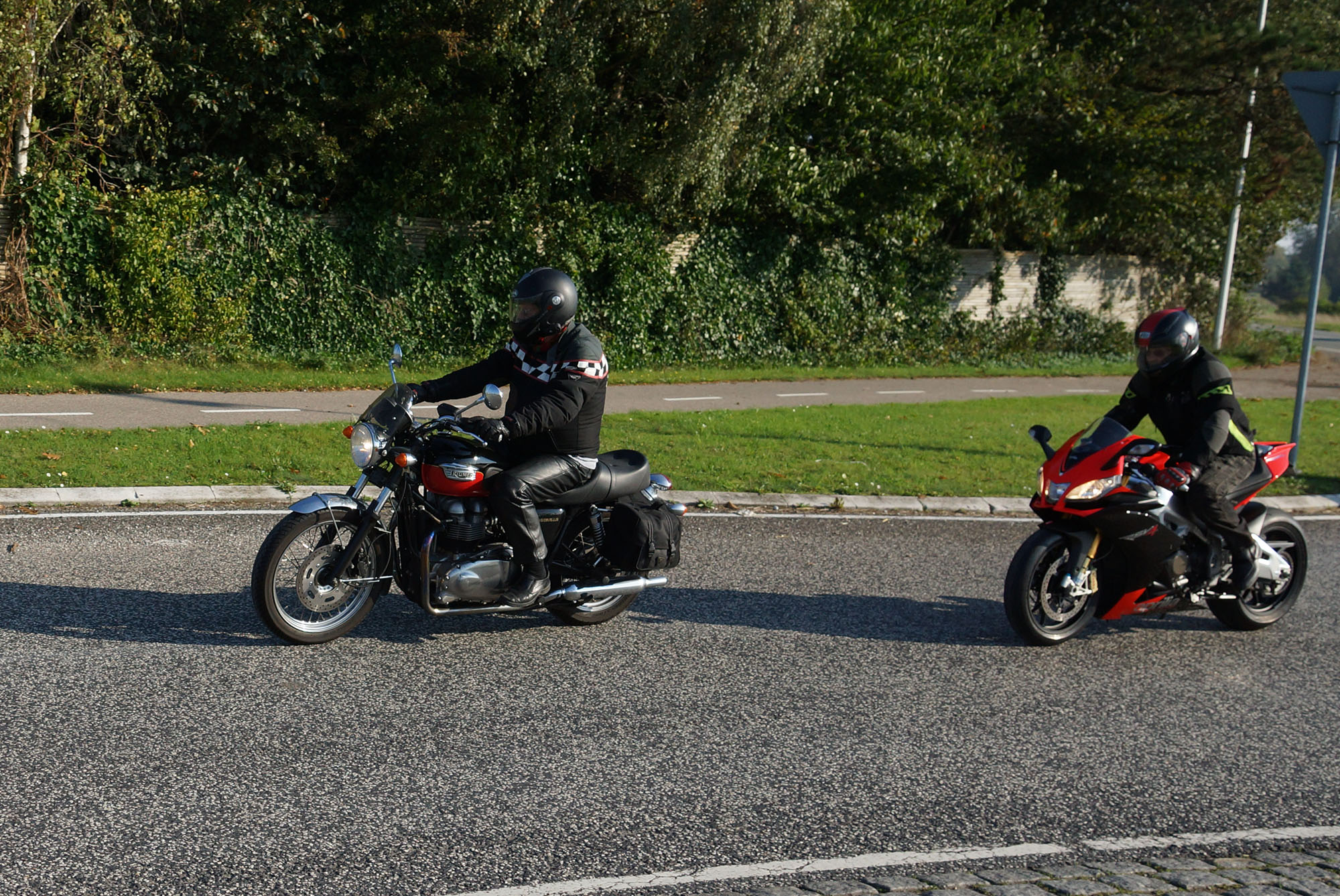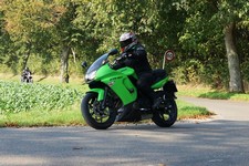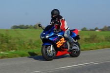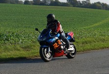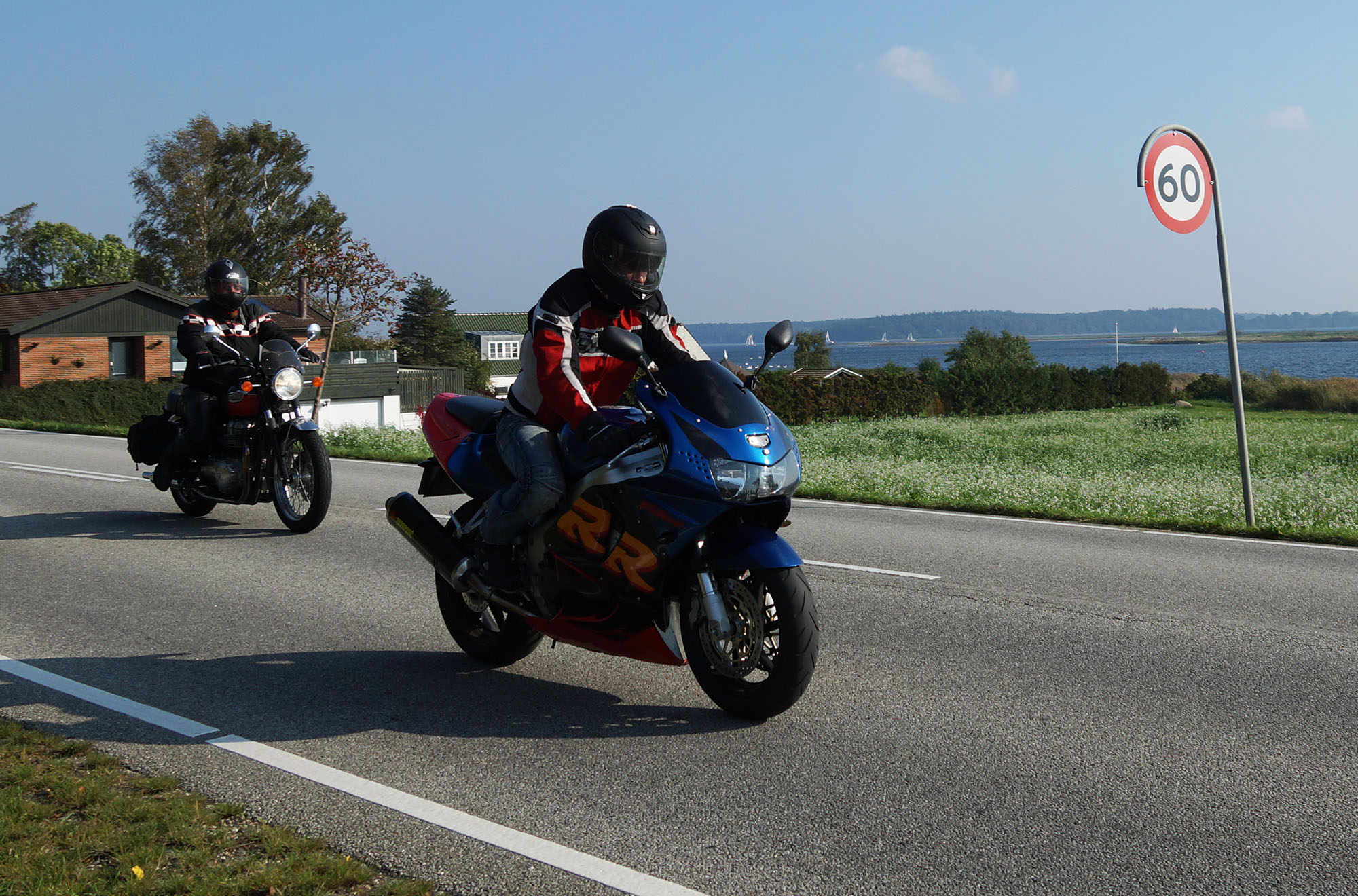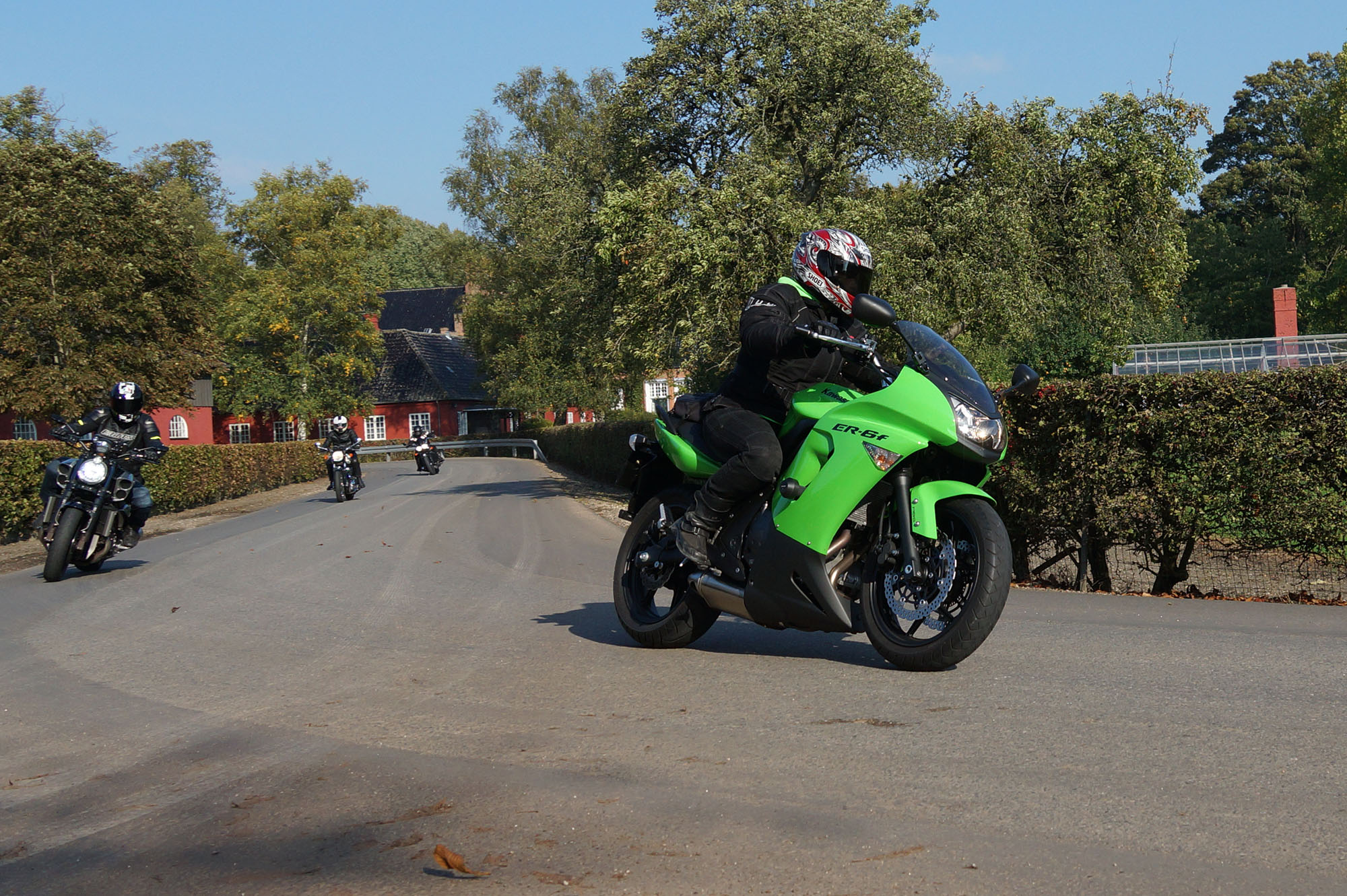 Henriette på en gøn Kawa ER-6F -08, Daniel på en racefarvet Fireblade -99,