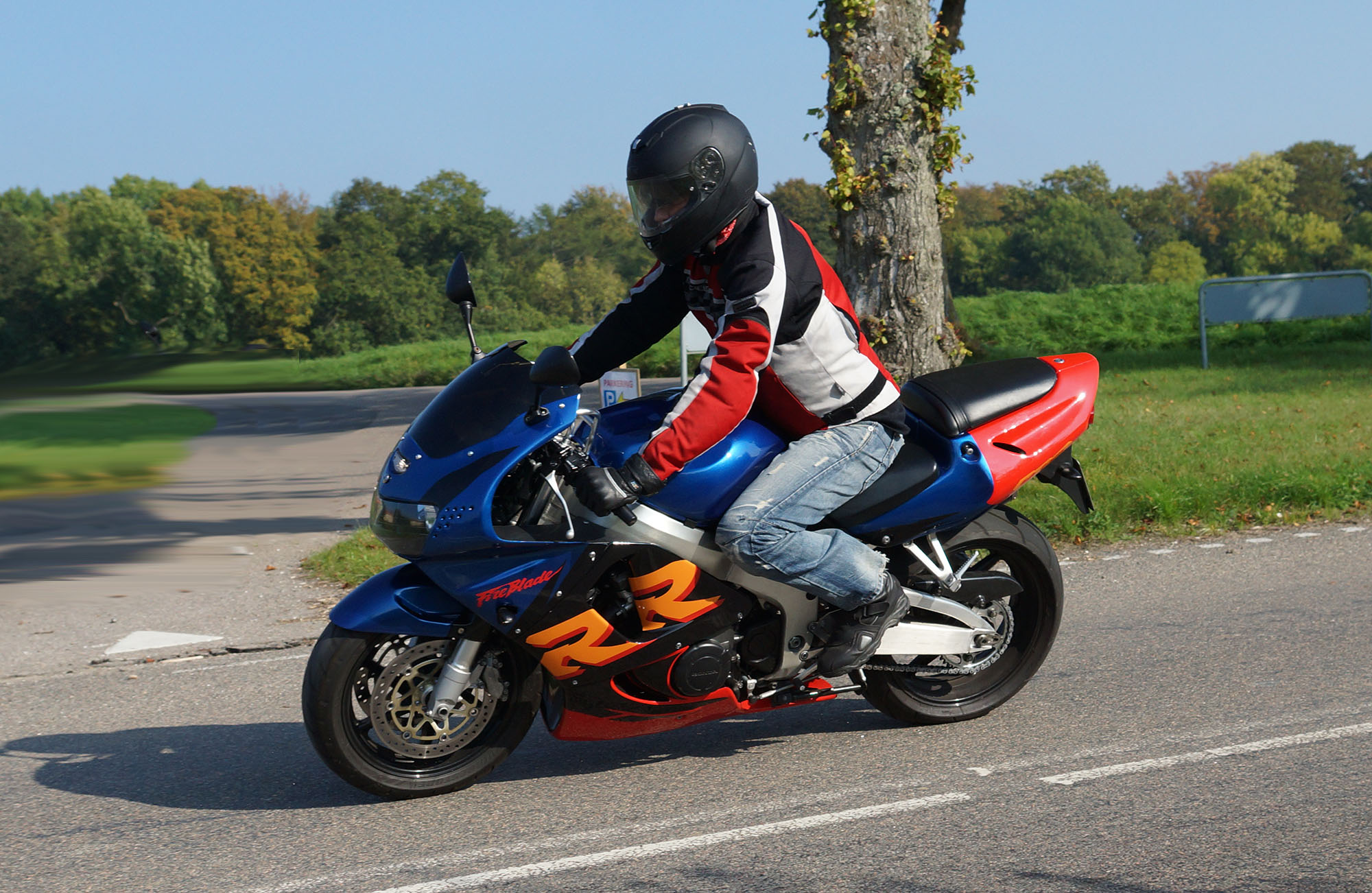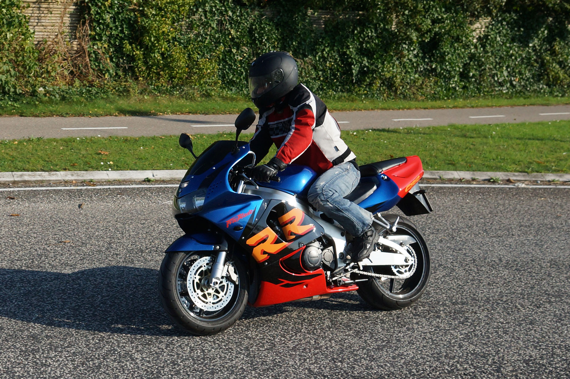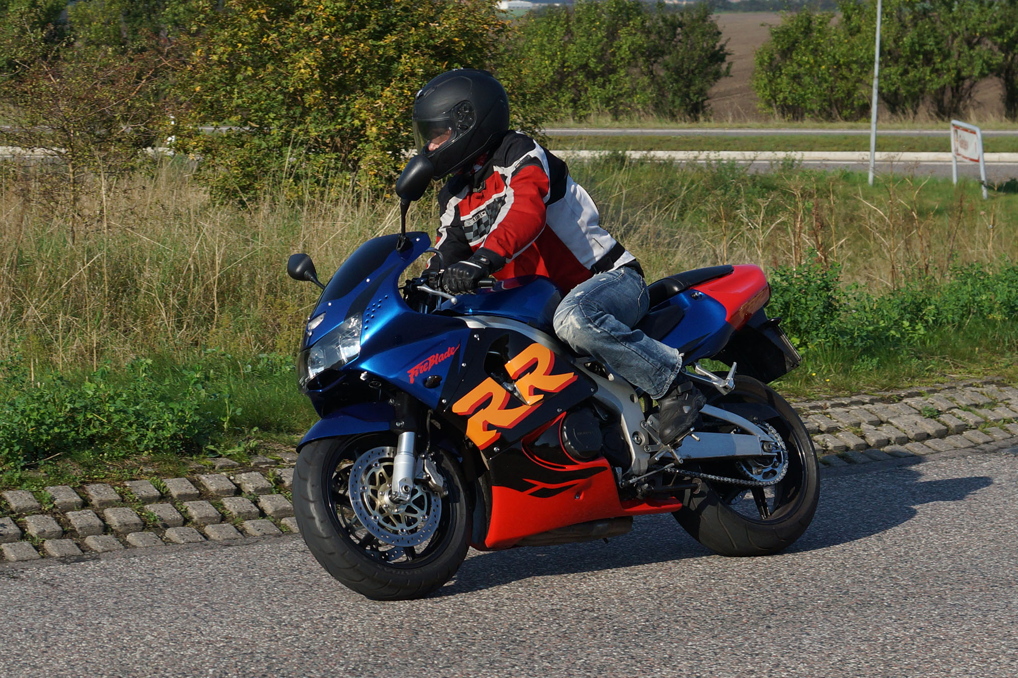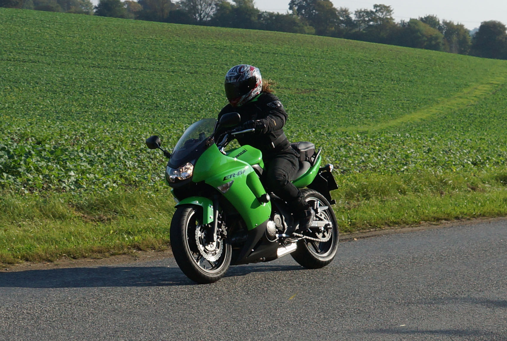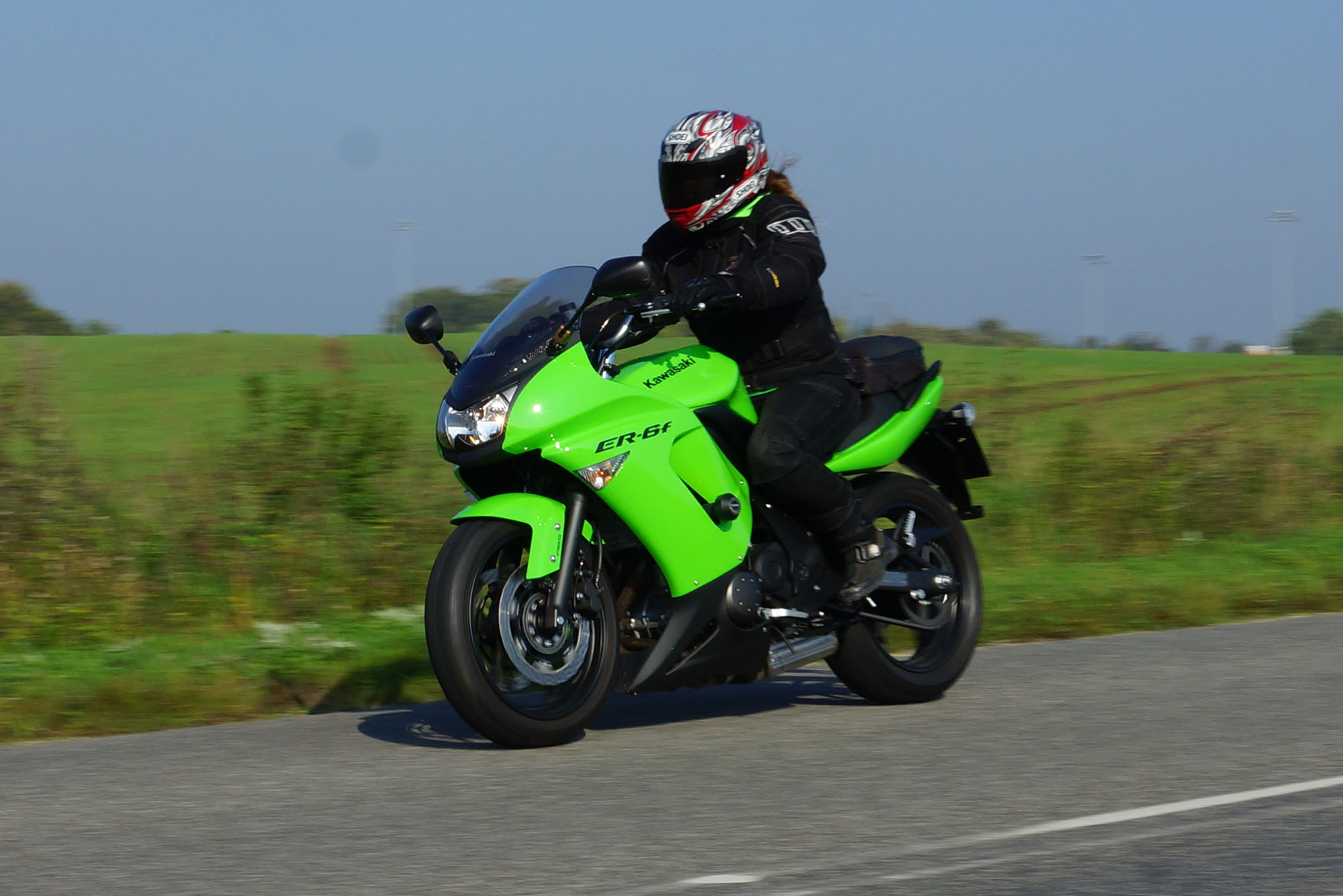 Henriette på en gøn Kawa ER-6F -08, Daniel på en racefarvet Fireblade -99,