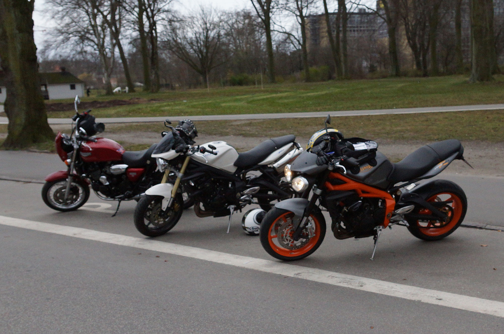 Der var Klaus på den hvide Street Triple -08, Tom på den røde Legend -00,