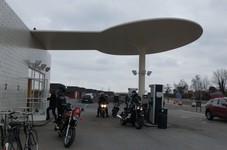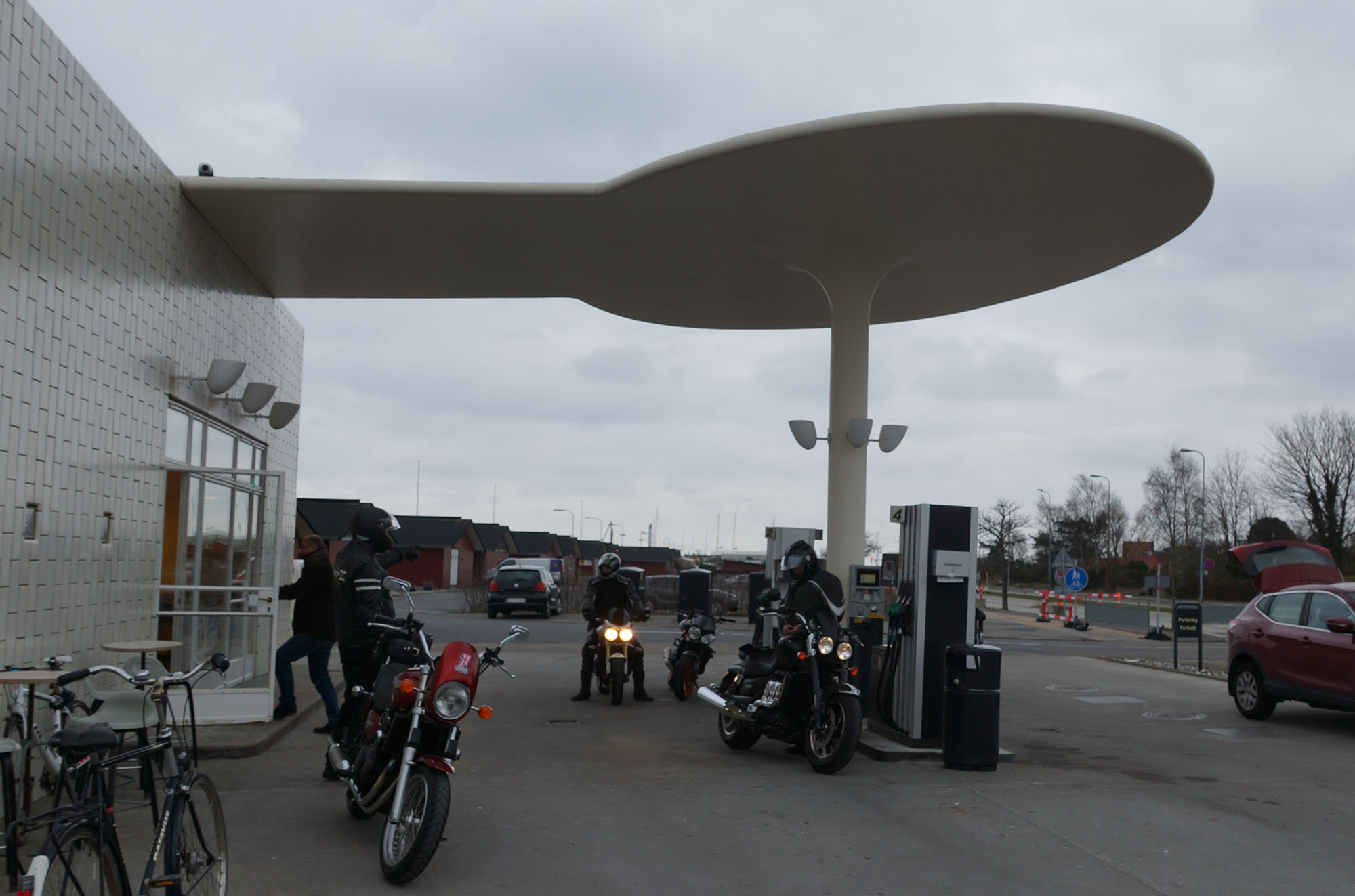 Vi valgte at standse ved Arne Jacobsen tanken på strandvejen ved Skovshoved havn.