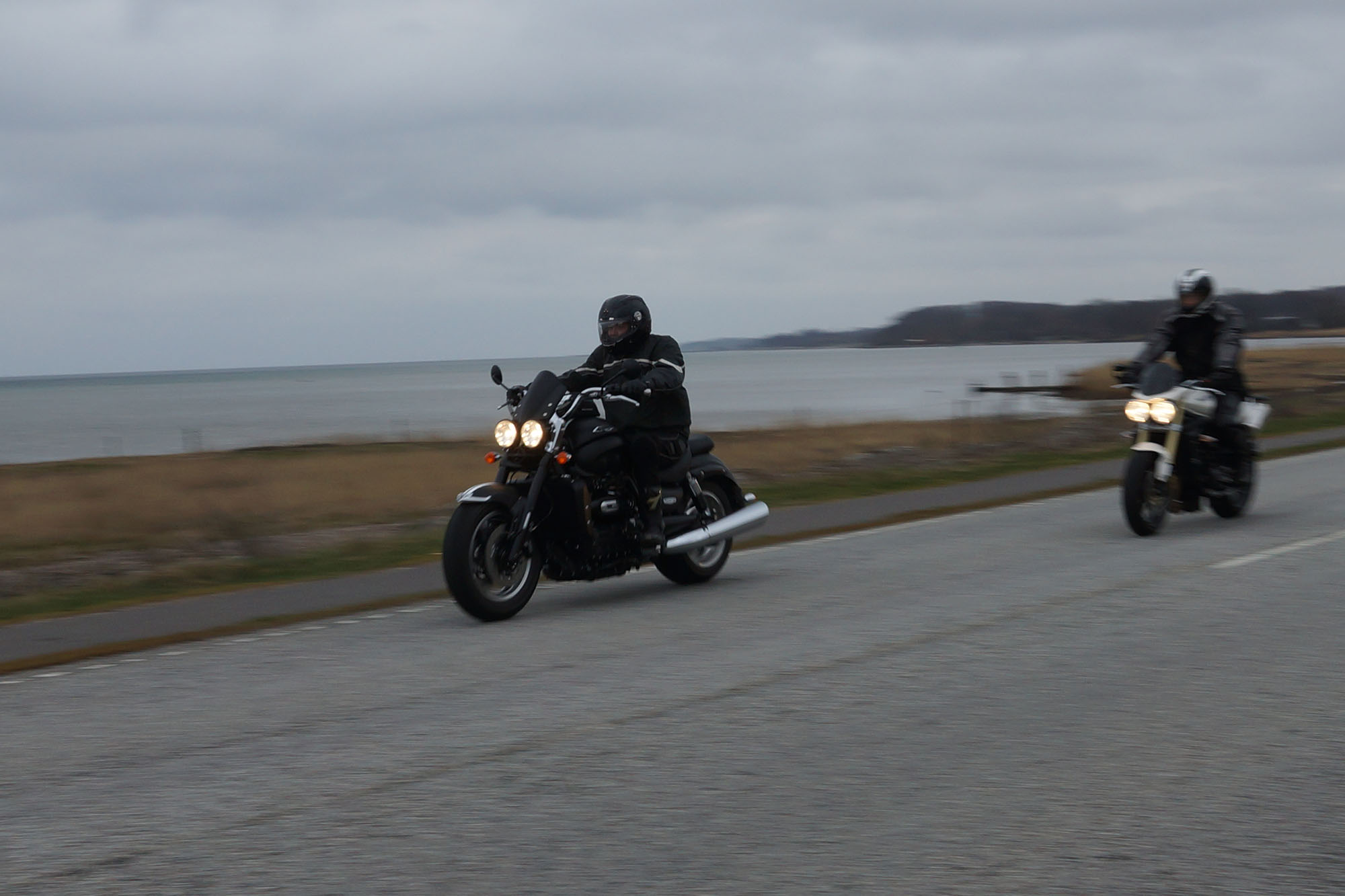 Jan på den sorte Rocket III Roadster -14, og mig på min Street Triple KM-special -08.