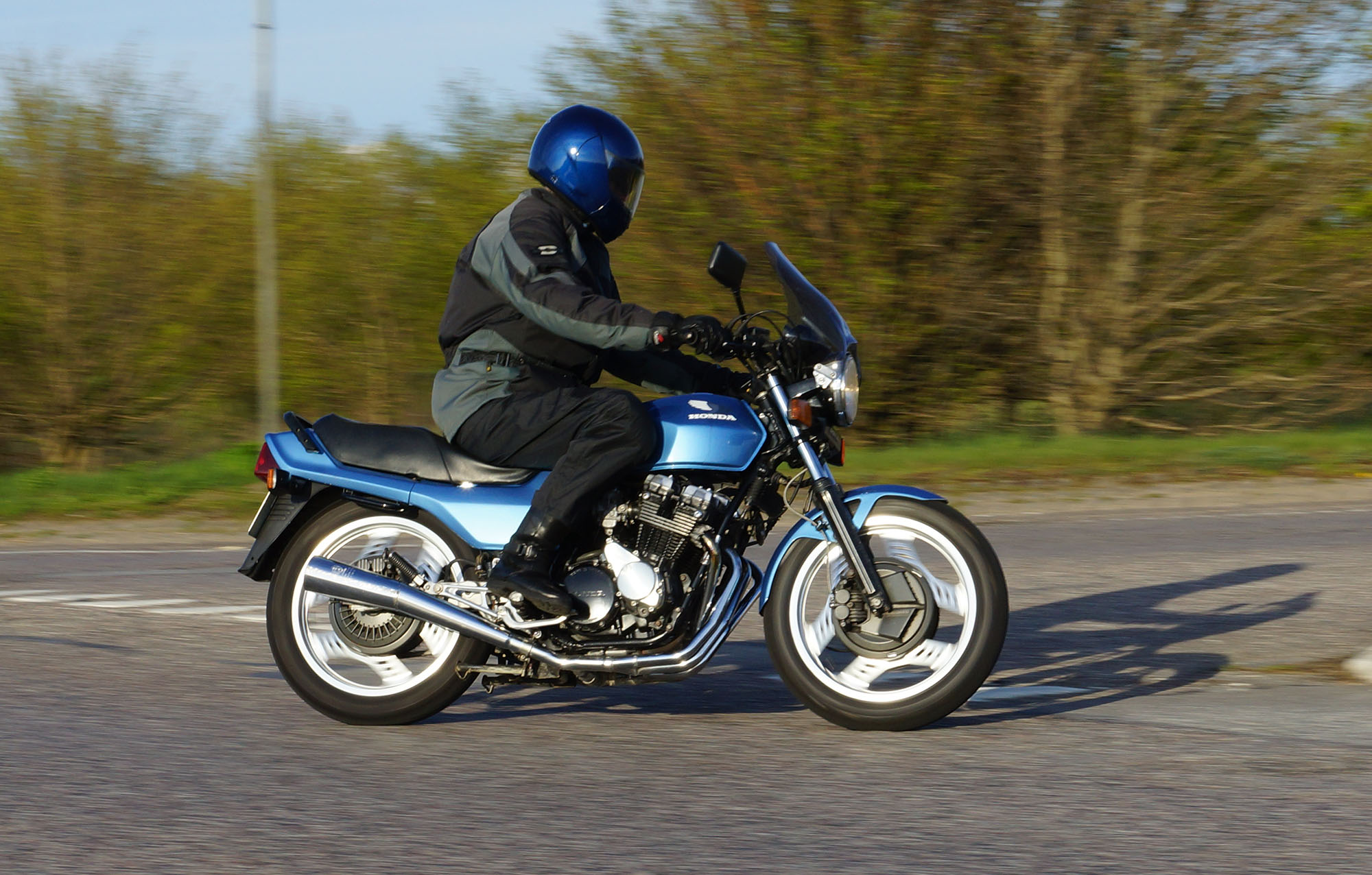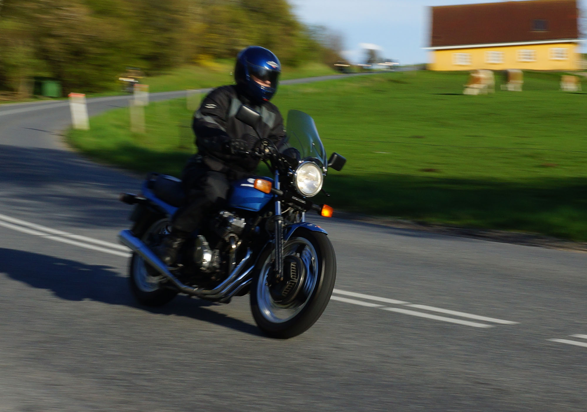 Der var Steen på sin grønne Bonneville -06, Søren på den lyseblå Honda CBX 550 -84,