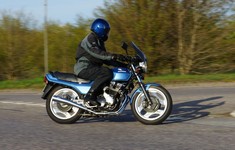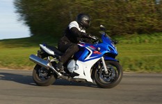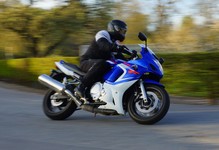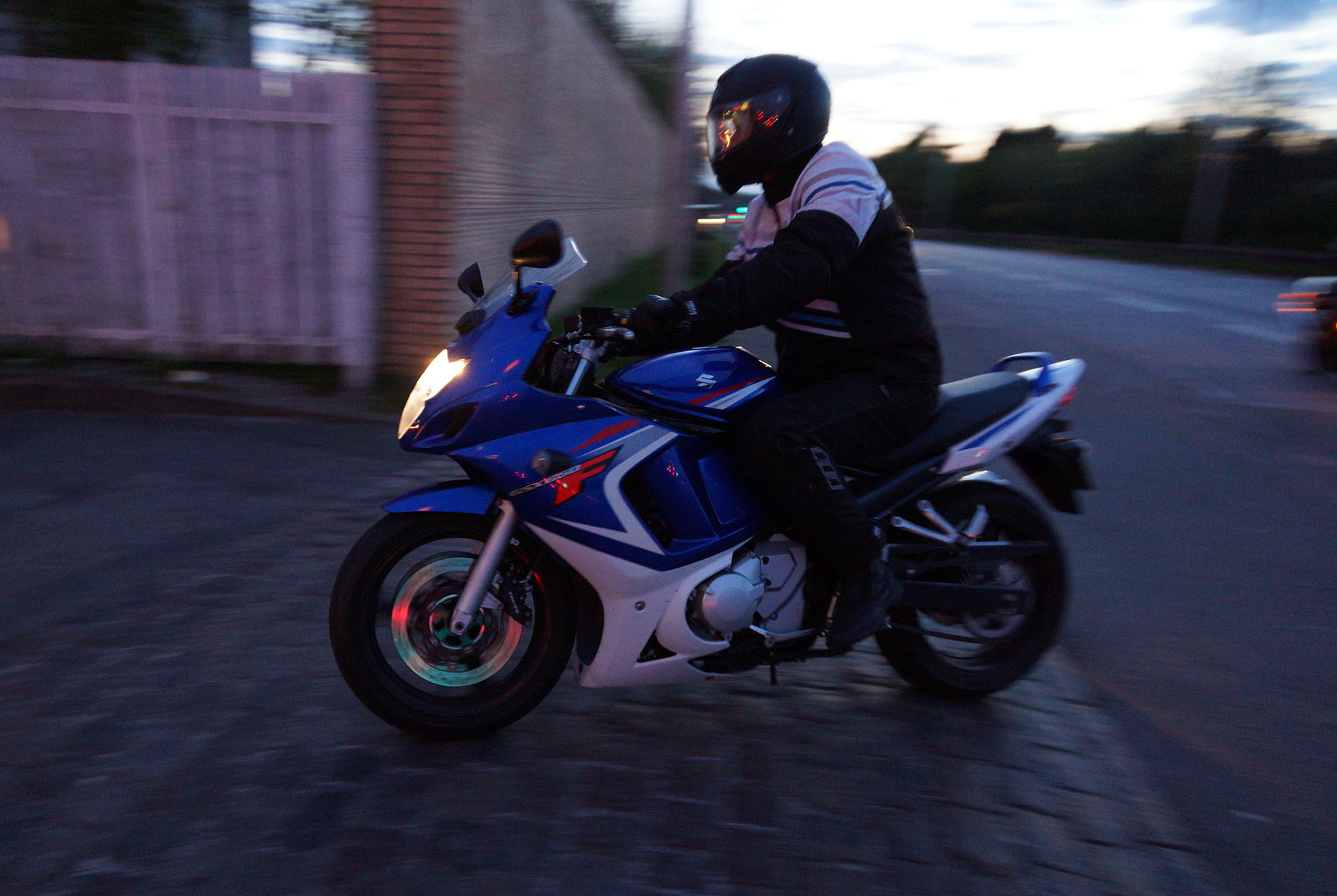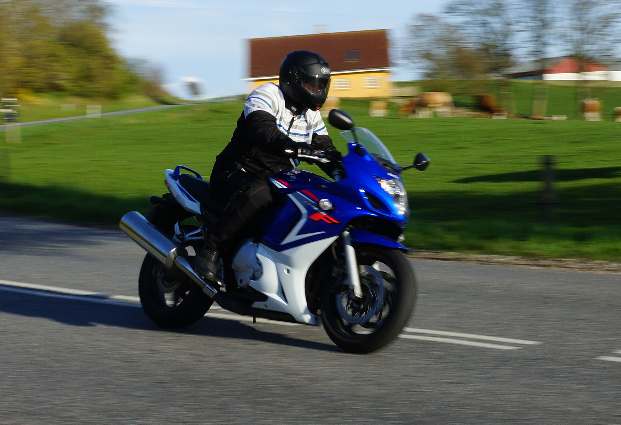 Mads-Peder hade taget Martin med på hans blå-hvide Suzuki GSX-F 650 -08