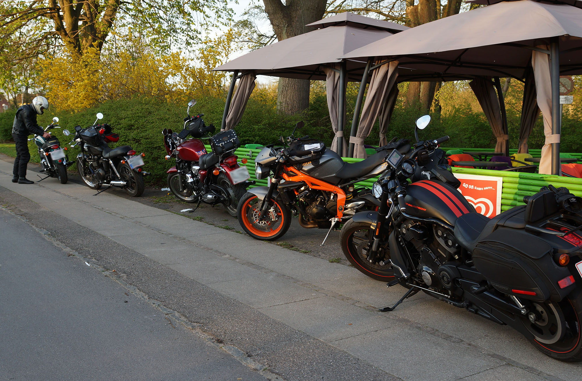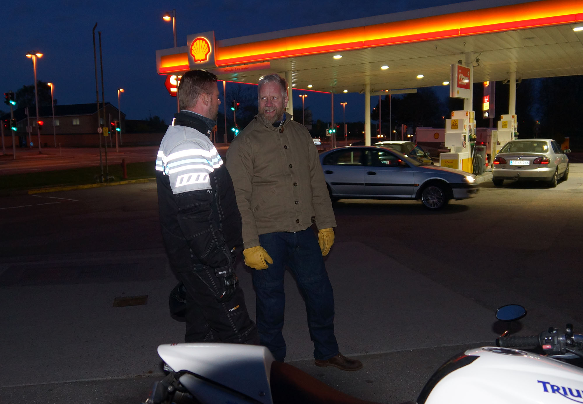 Jørgen på den sorte HD Night Rod -14, og mig på den grå-orange Street Triple