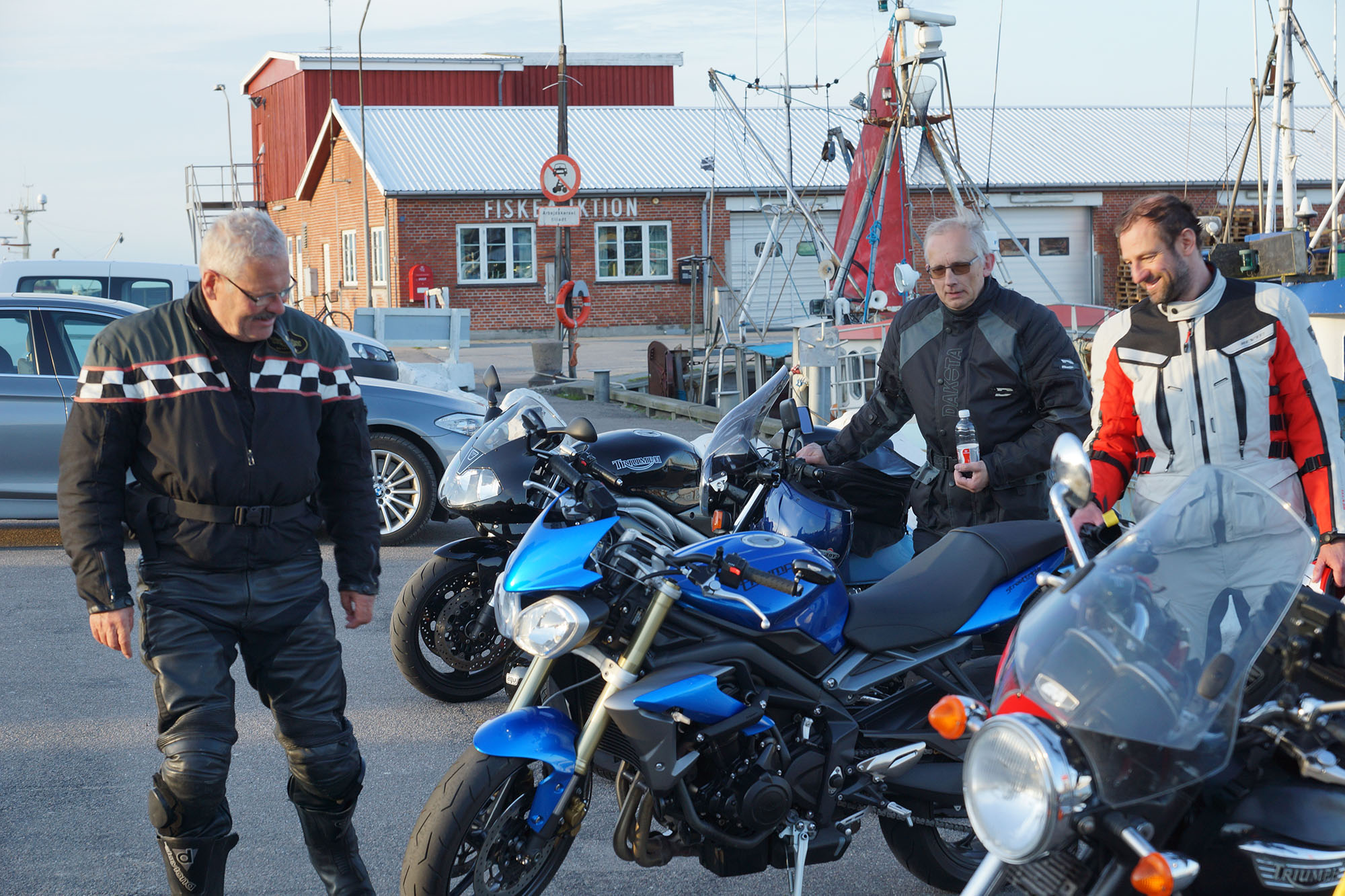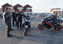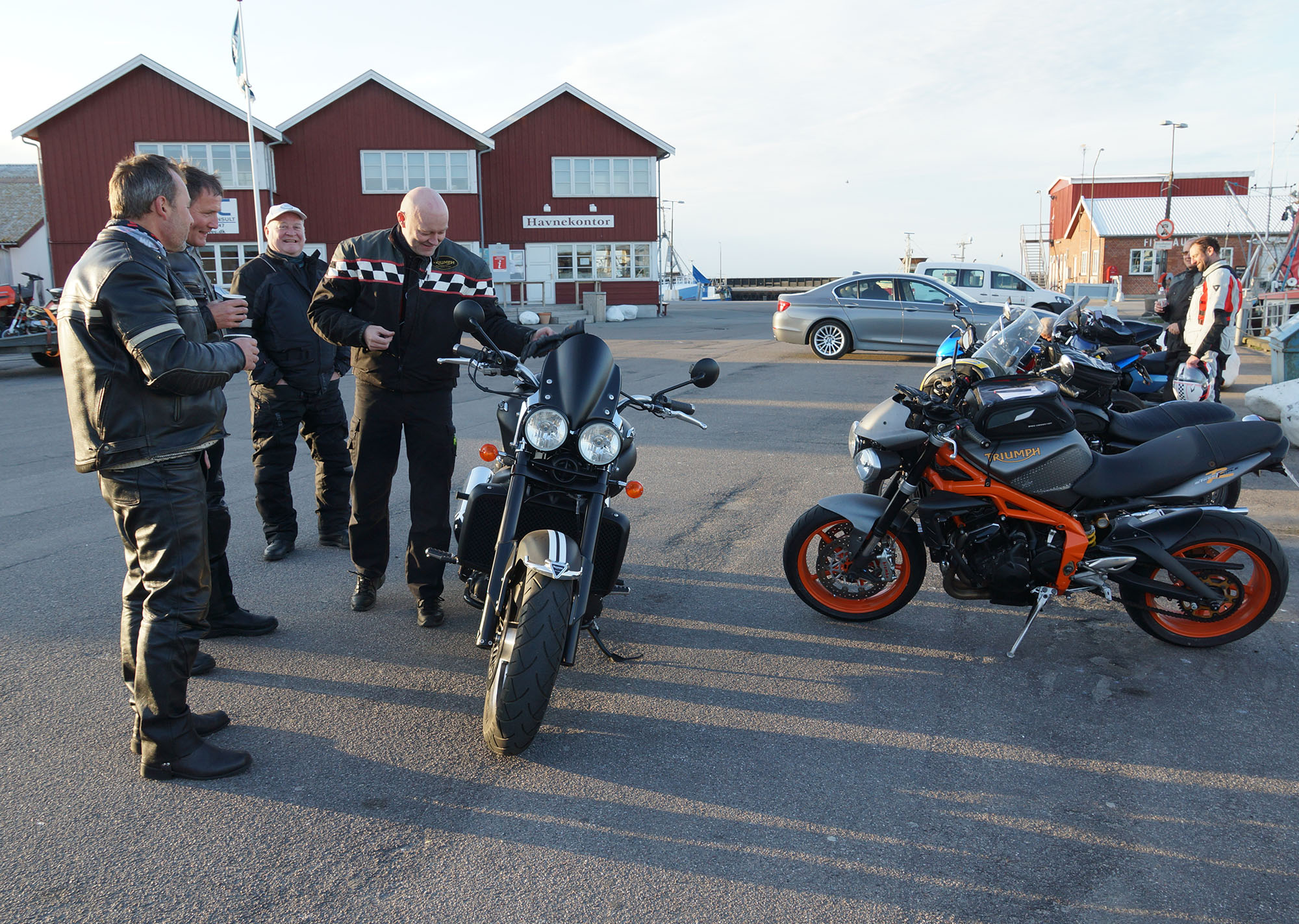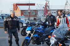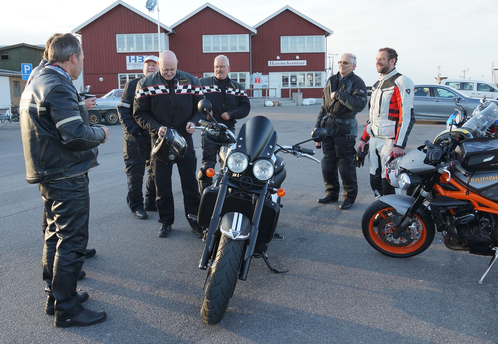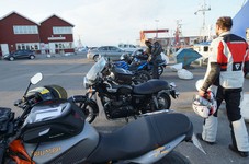 pause med god snak og andre motorcyklister vi mødte på havnen.