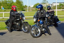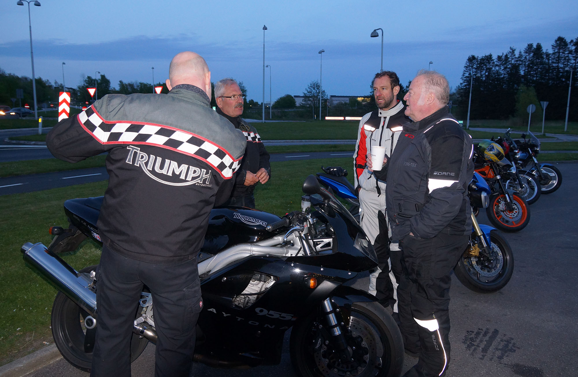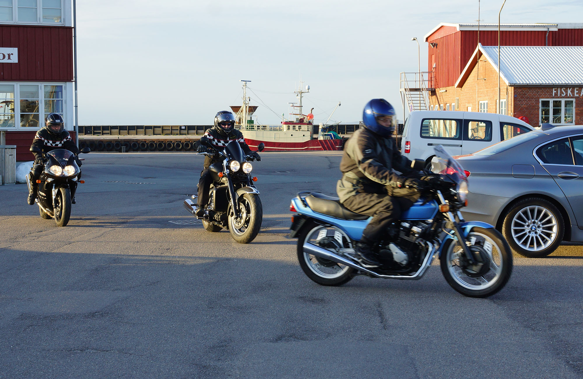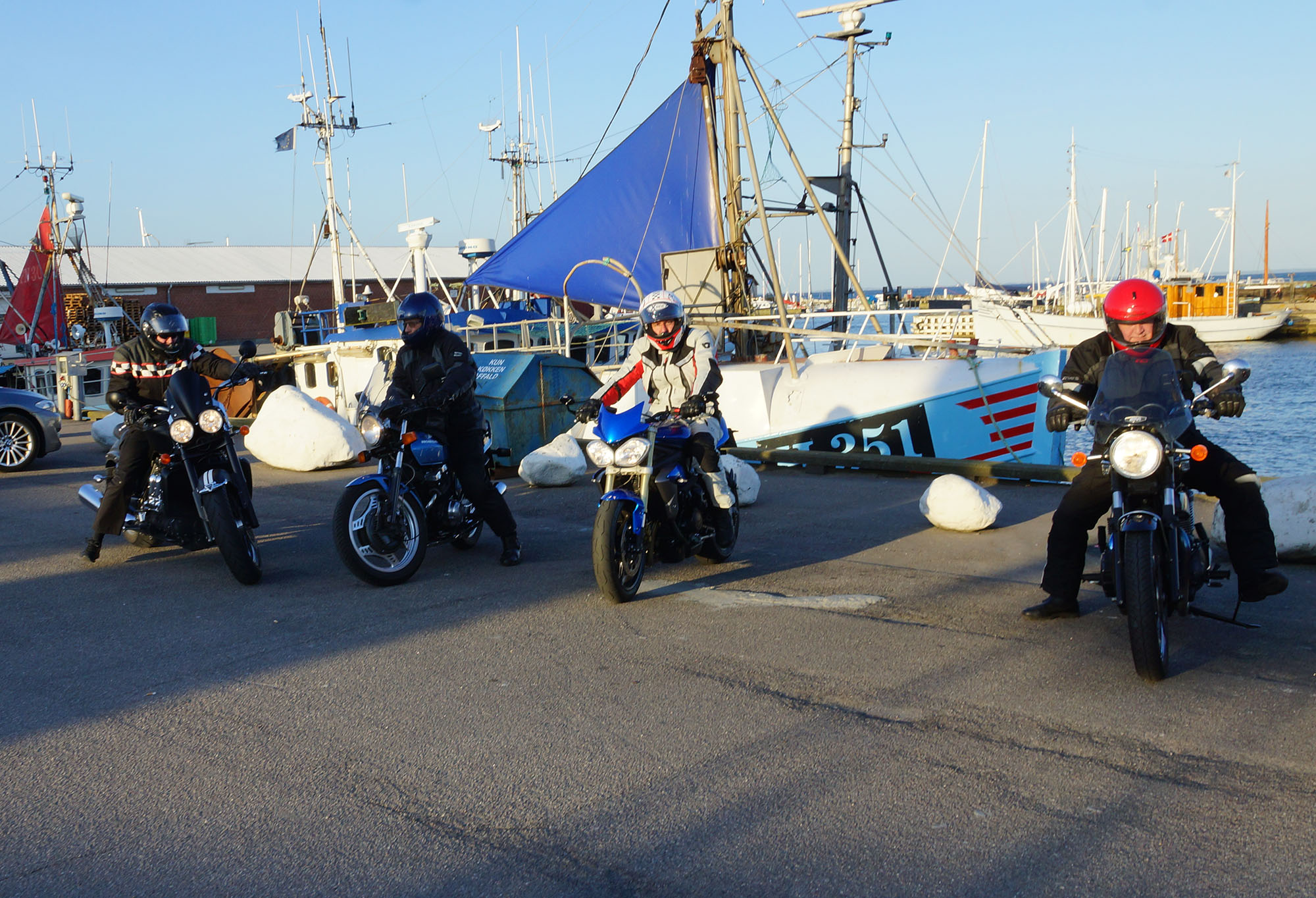 pause med god snak og andre motorcyklister vi mødte på havnen.