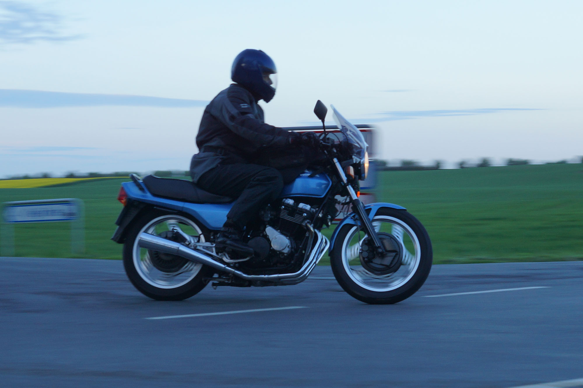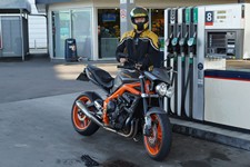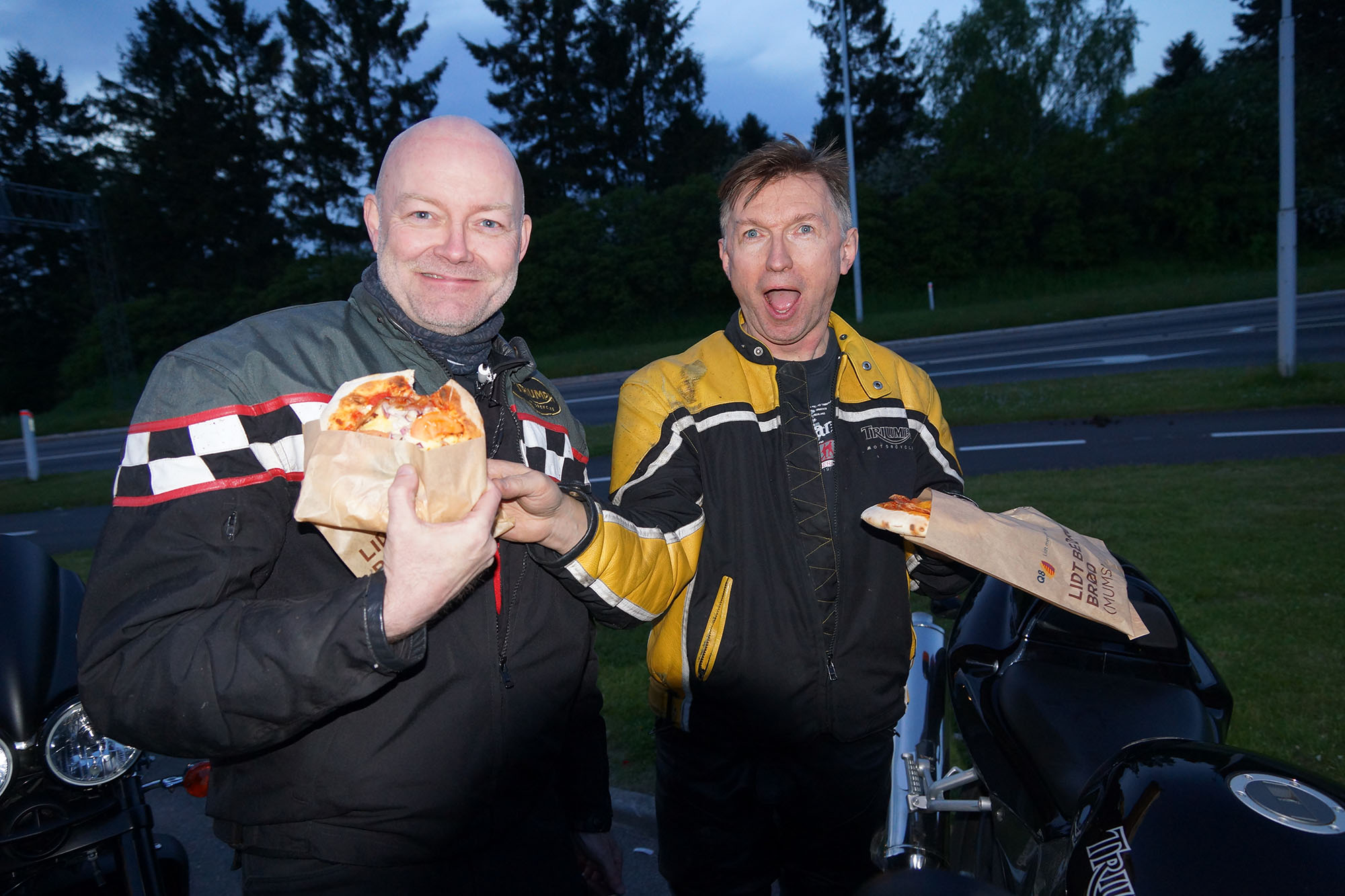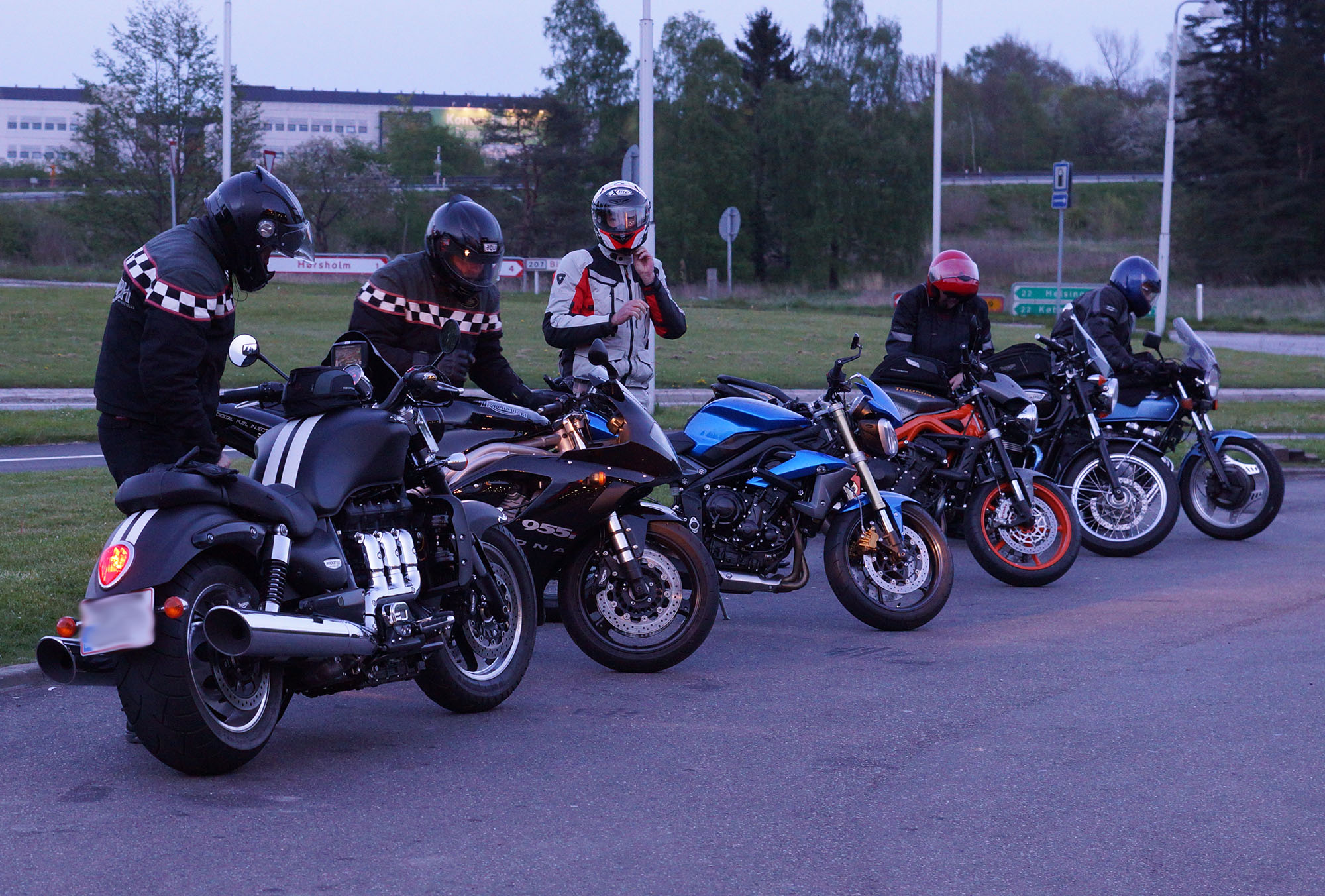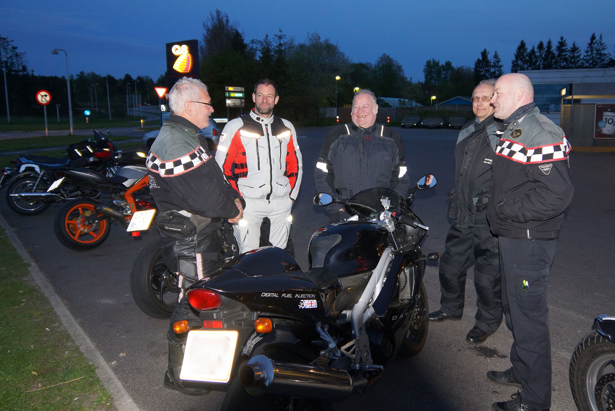 Yes, de var ved at tage hjelme på når jeg drejede ind på tanken og standsede