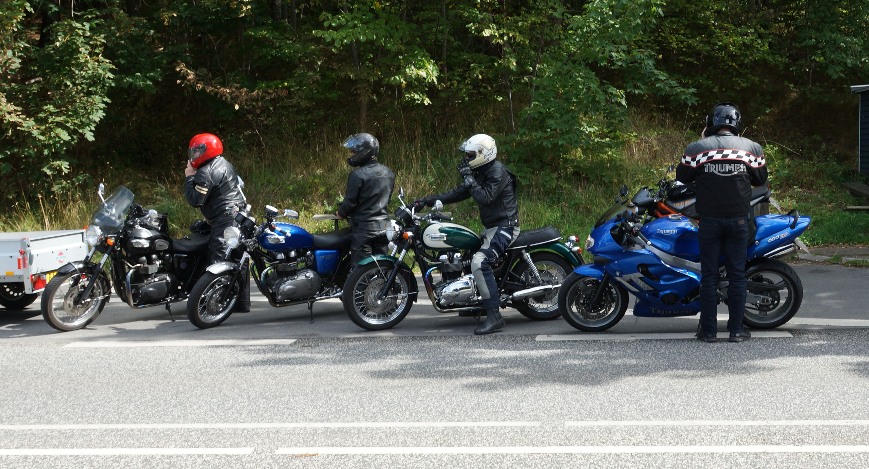 Thruxton -06, Steen på den grønne Bonneville T100 -06, Jan der luftede sin blå TT600 -02,