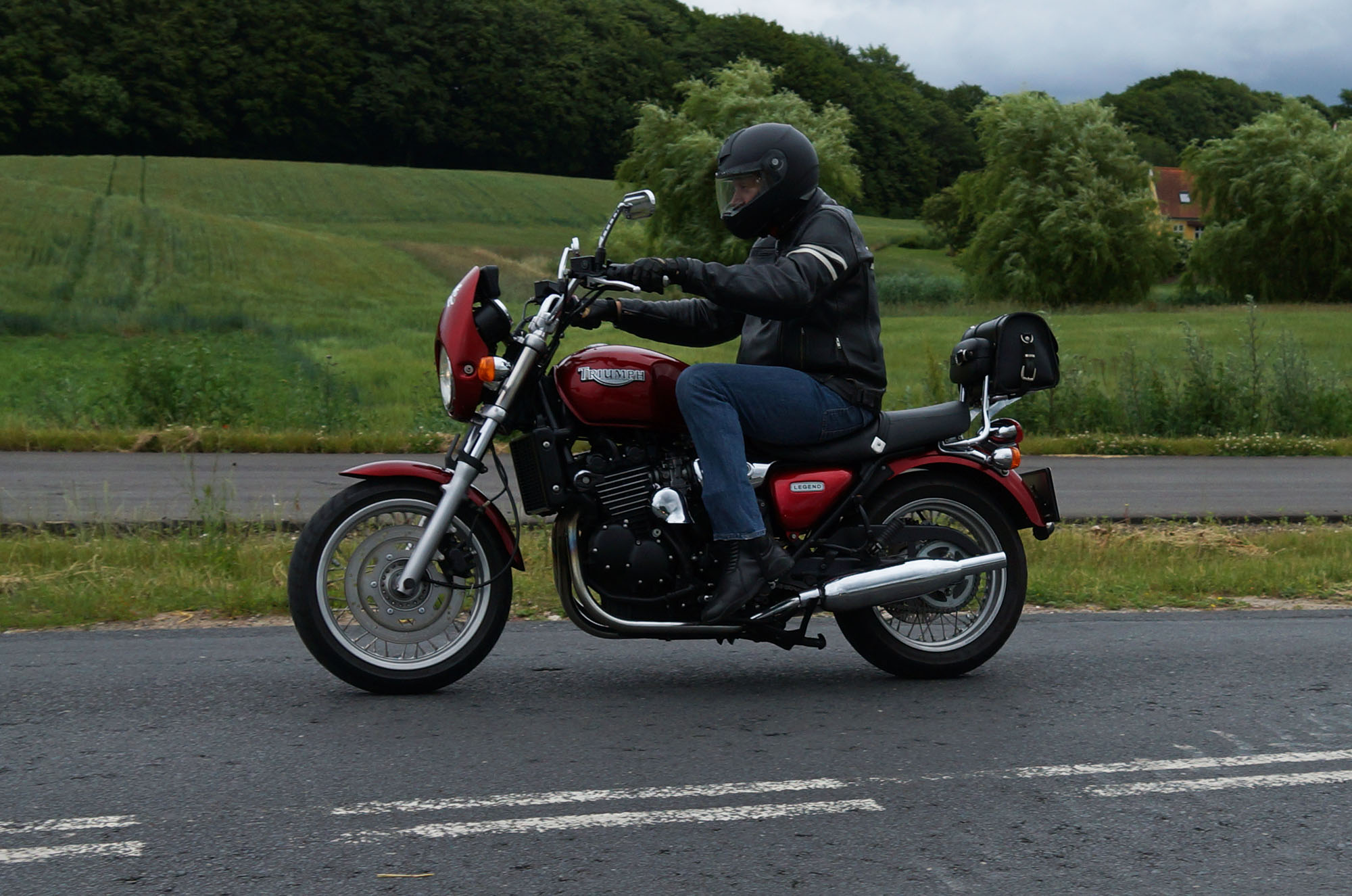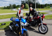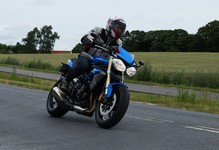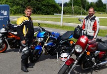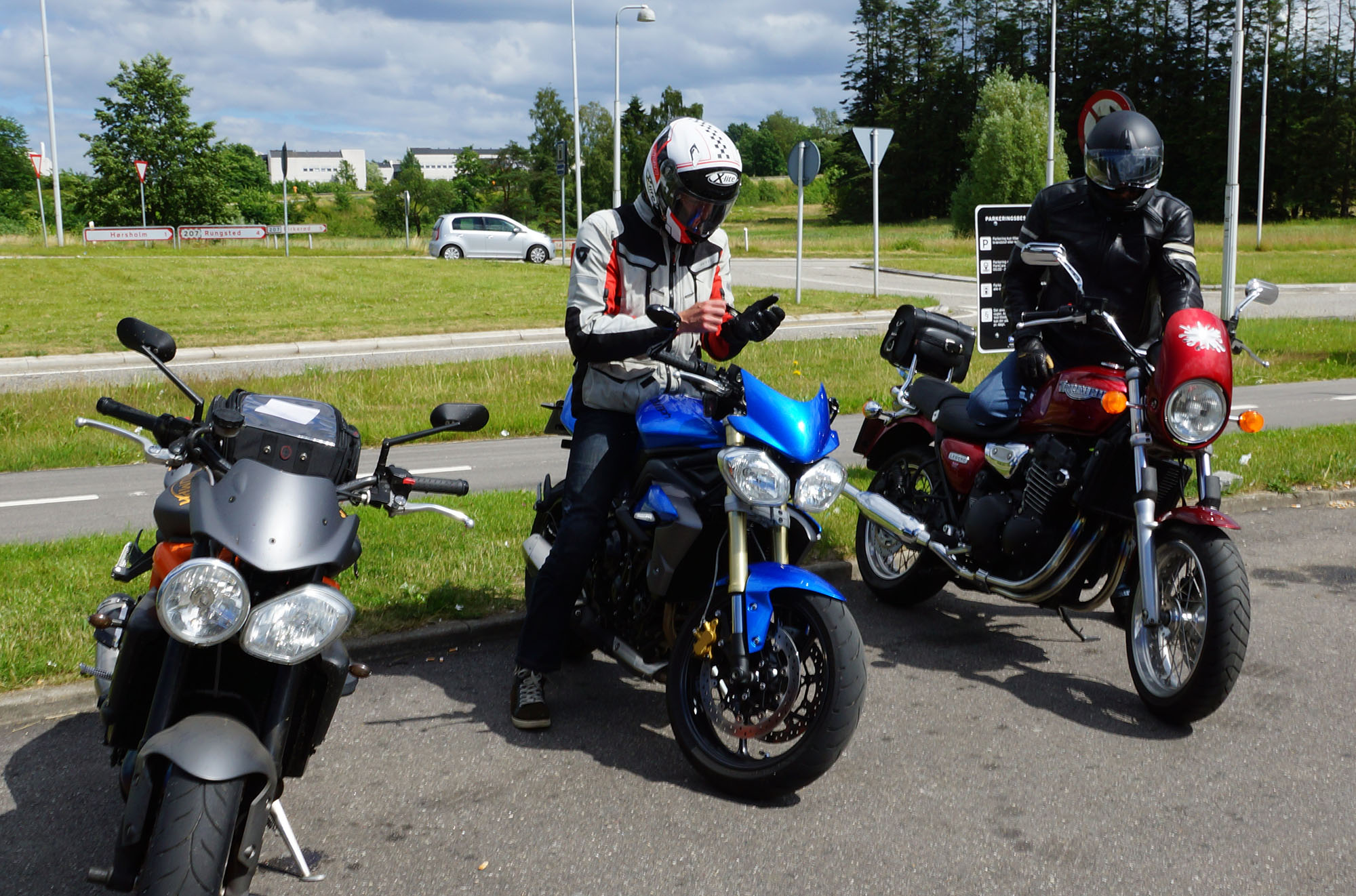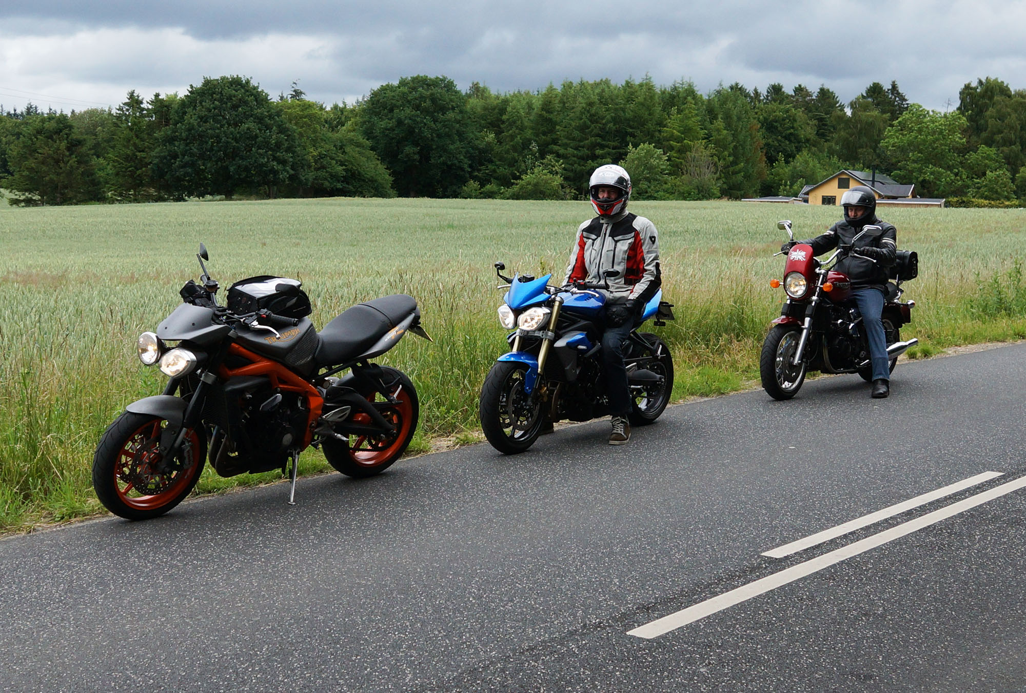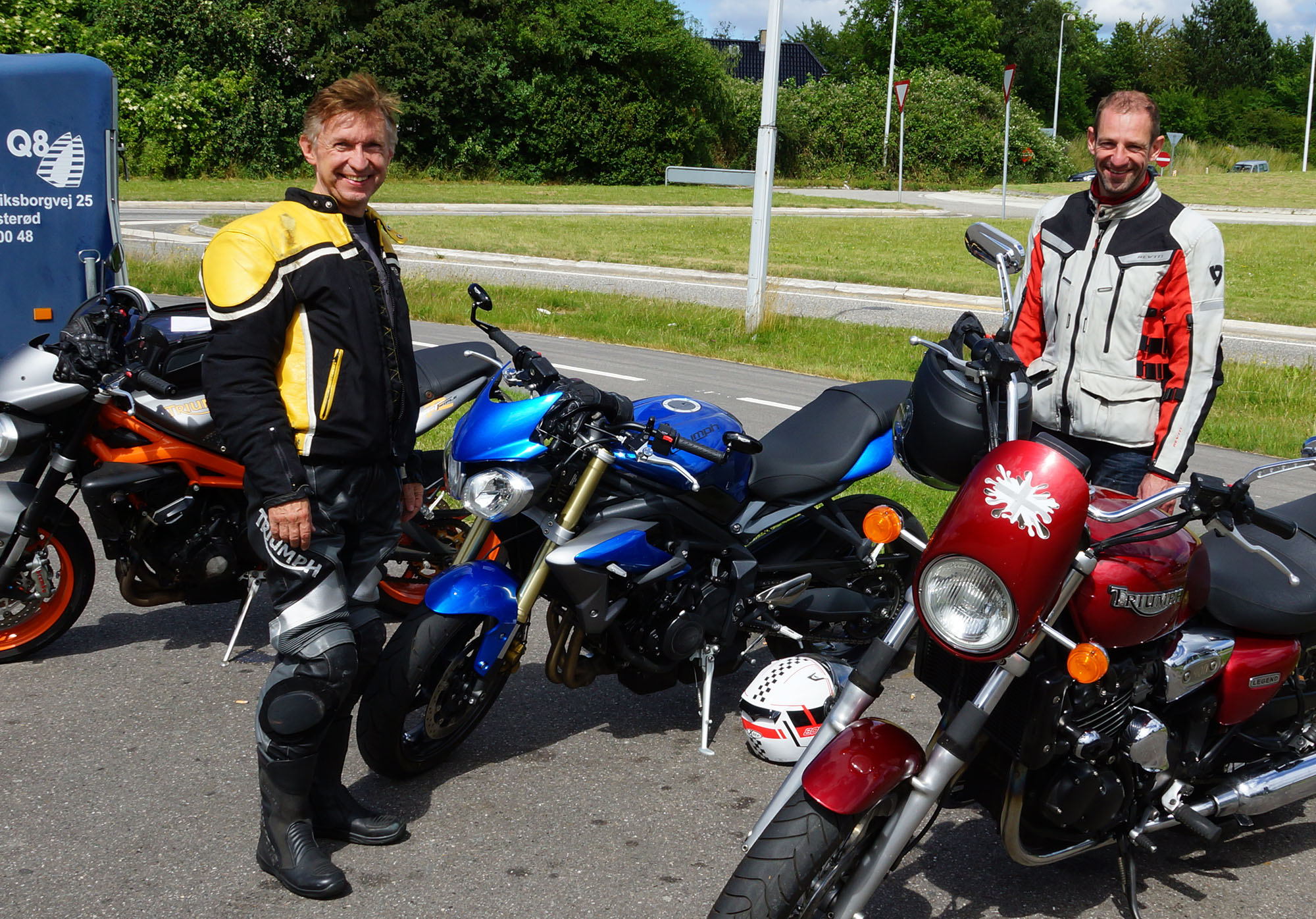 Der er Tom på den røde Triumph Legend -00, Allan på den blå Triumph Street Triple -13,