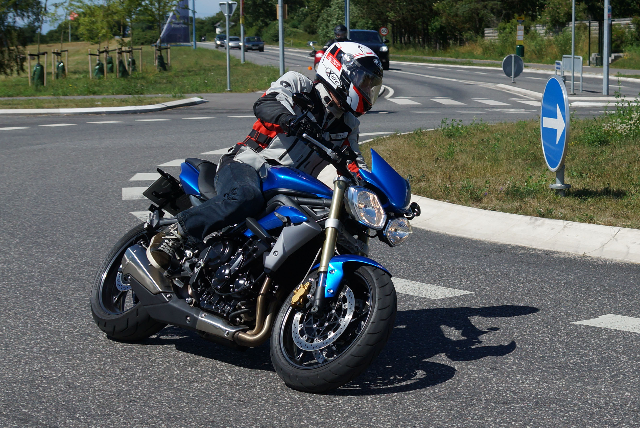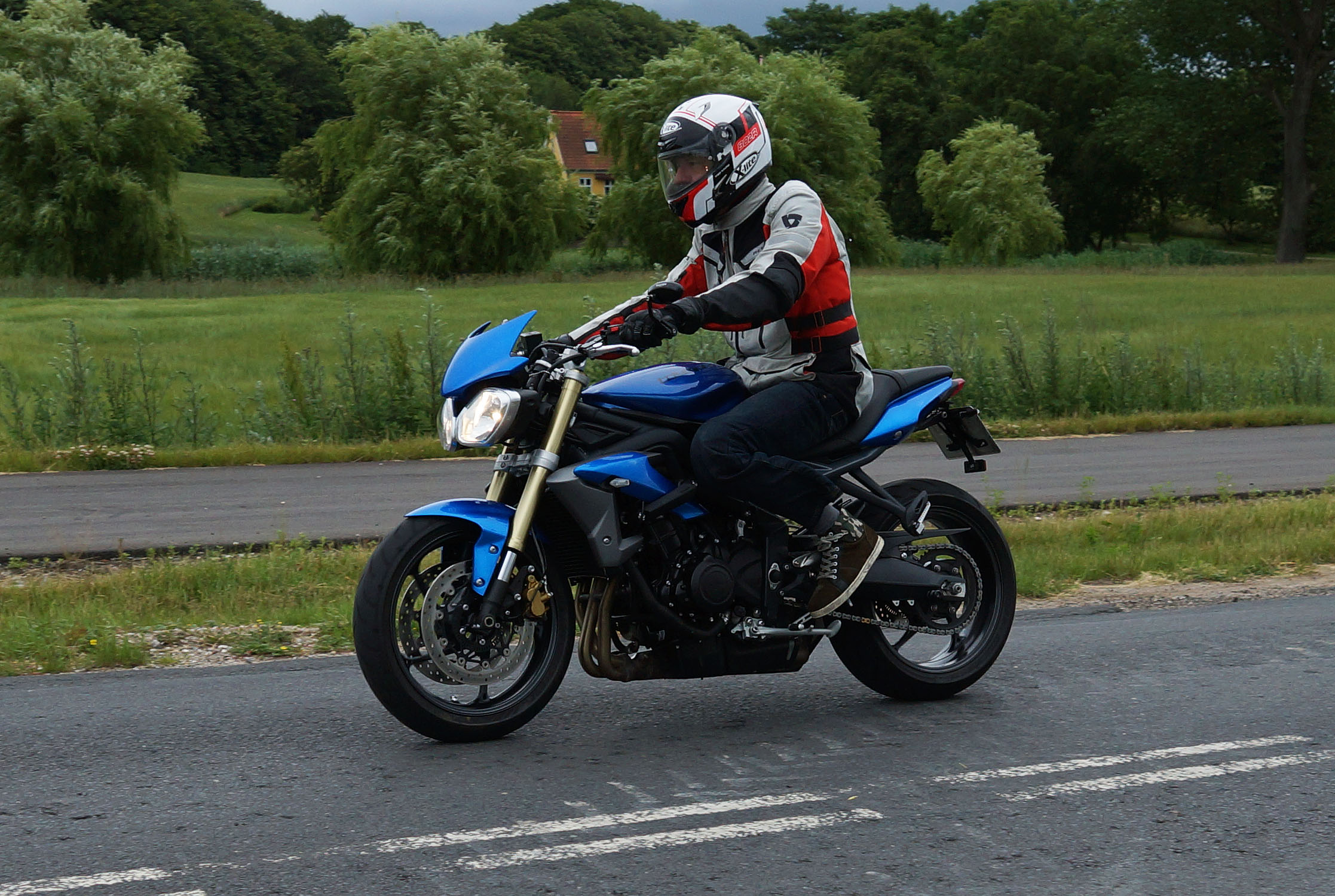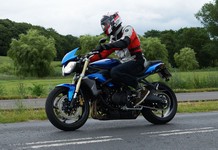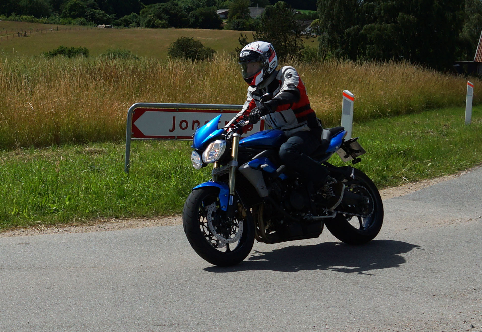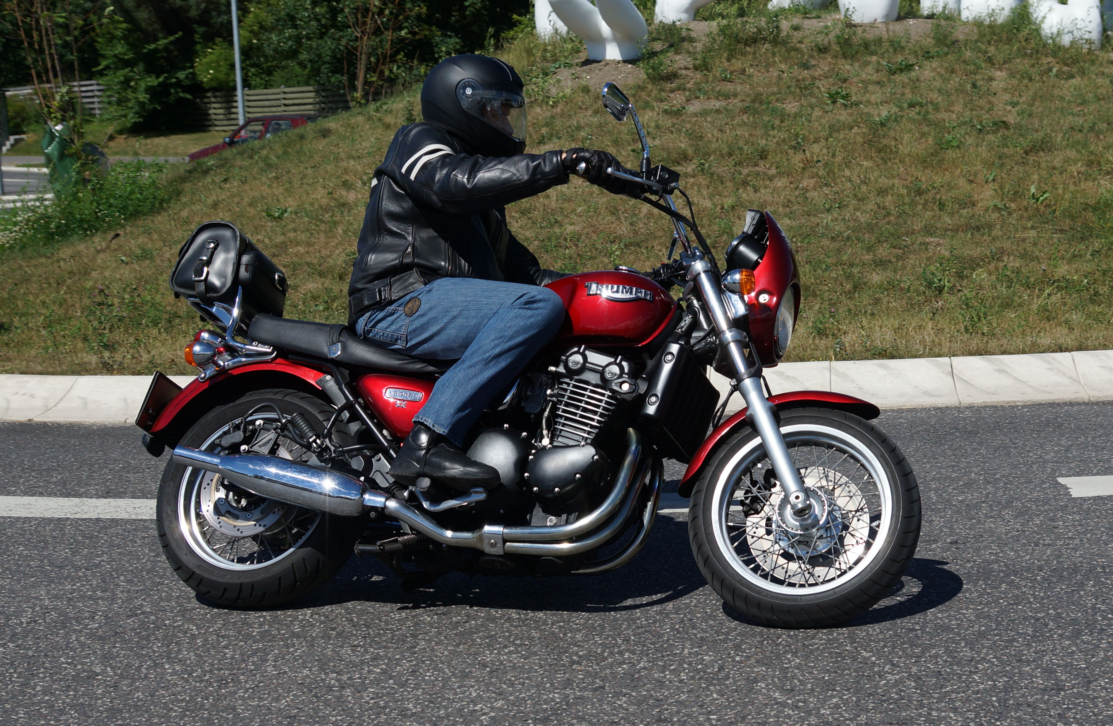 Der er Tom på den røde Triumph Legend -00, Allan på den blå Triumph Street Triple -13,