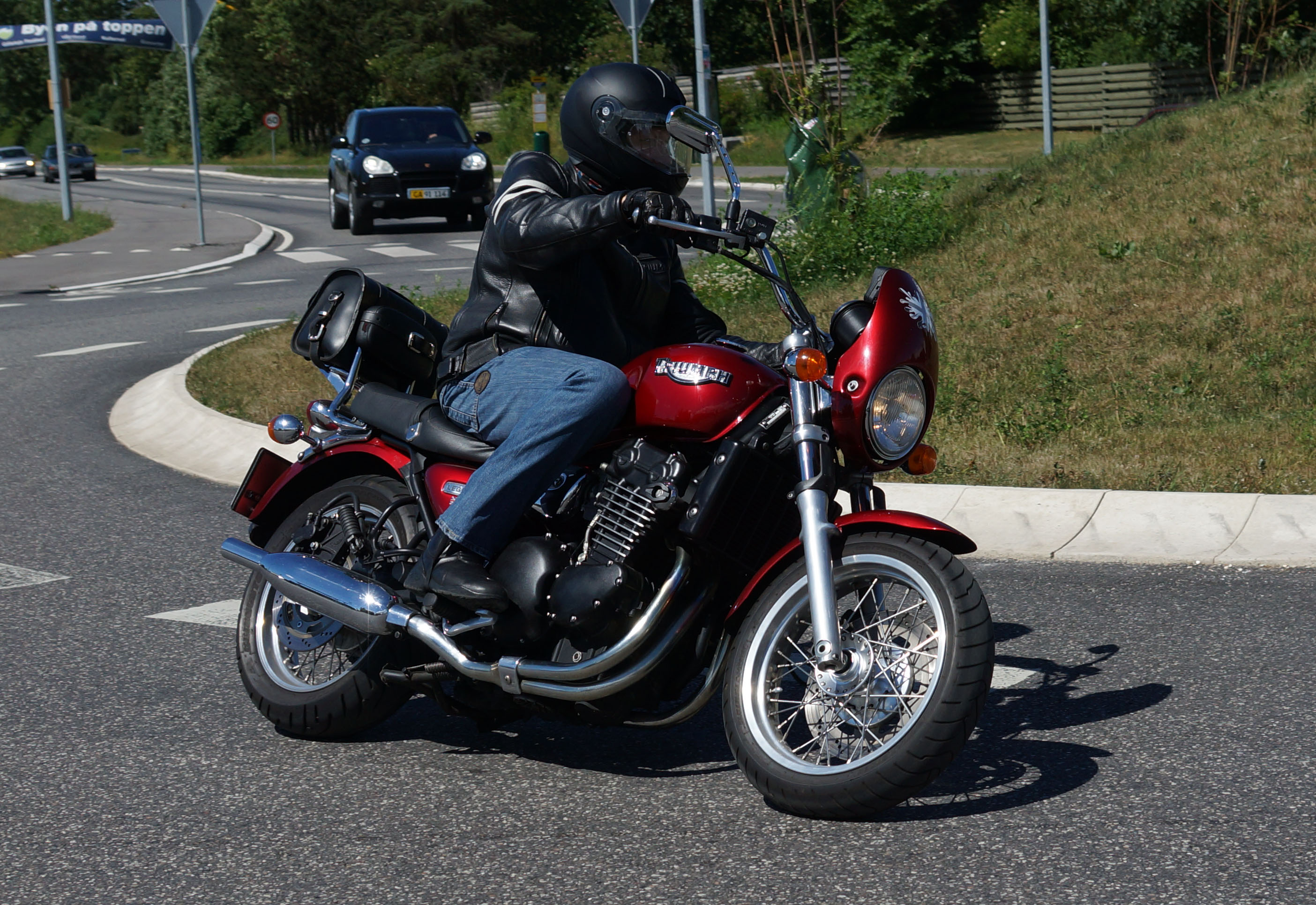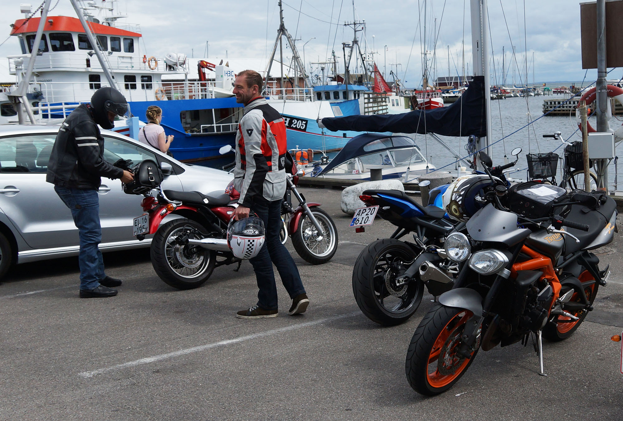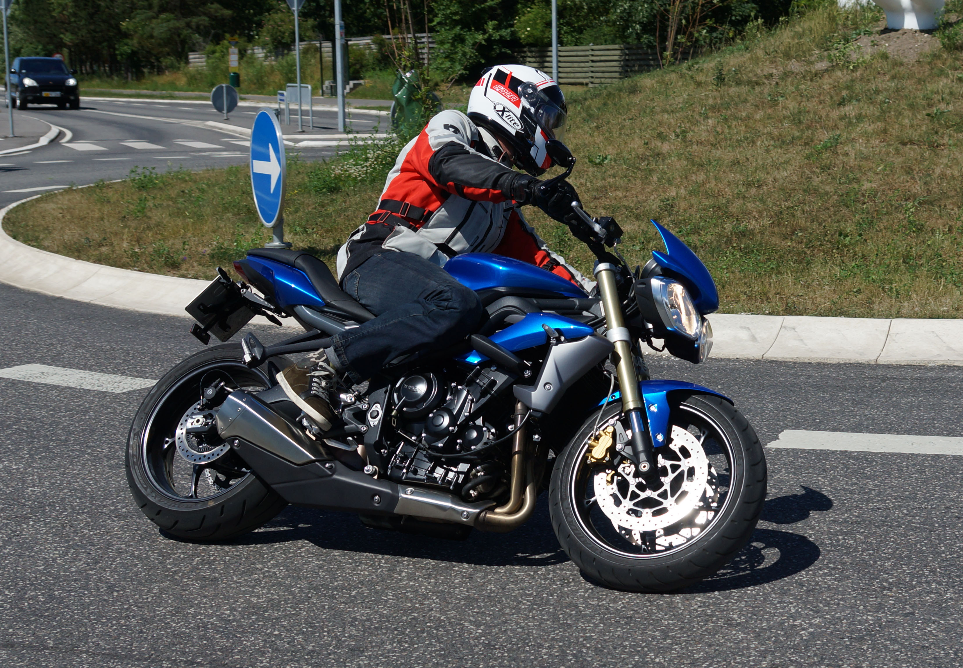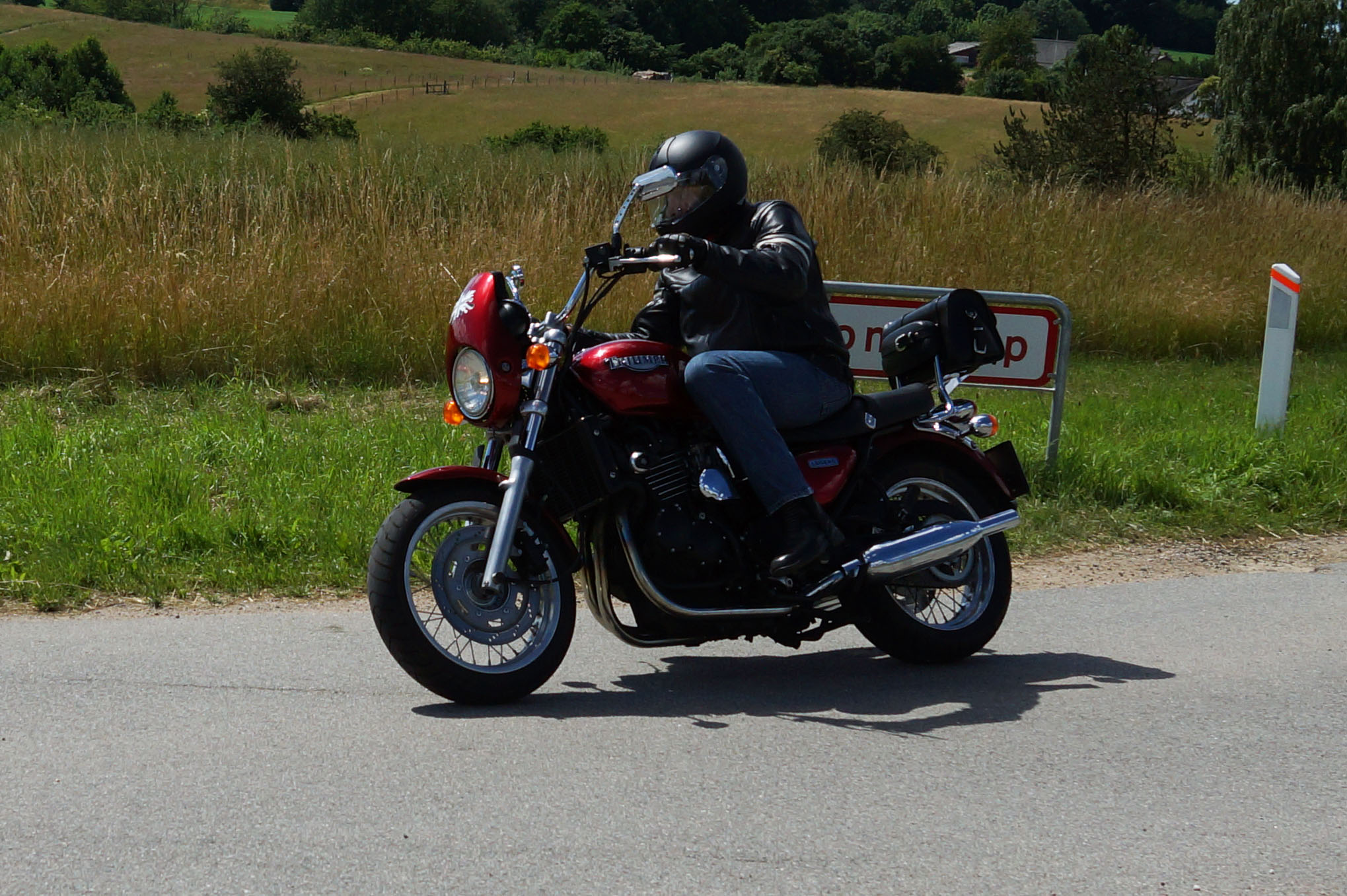 Der er Tom på den røde Triumph Legend -00, Allan på den blå Triumph Street Triple -13,