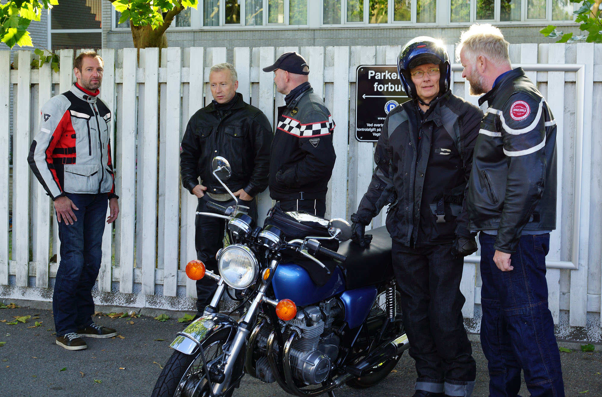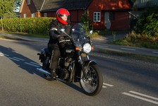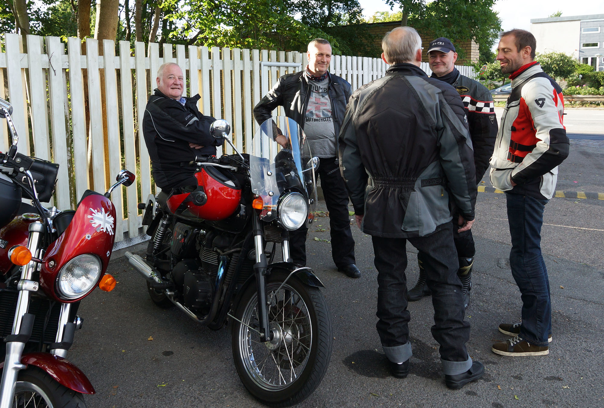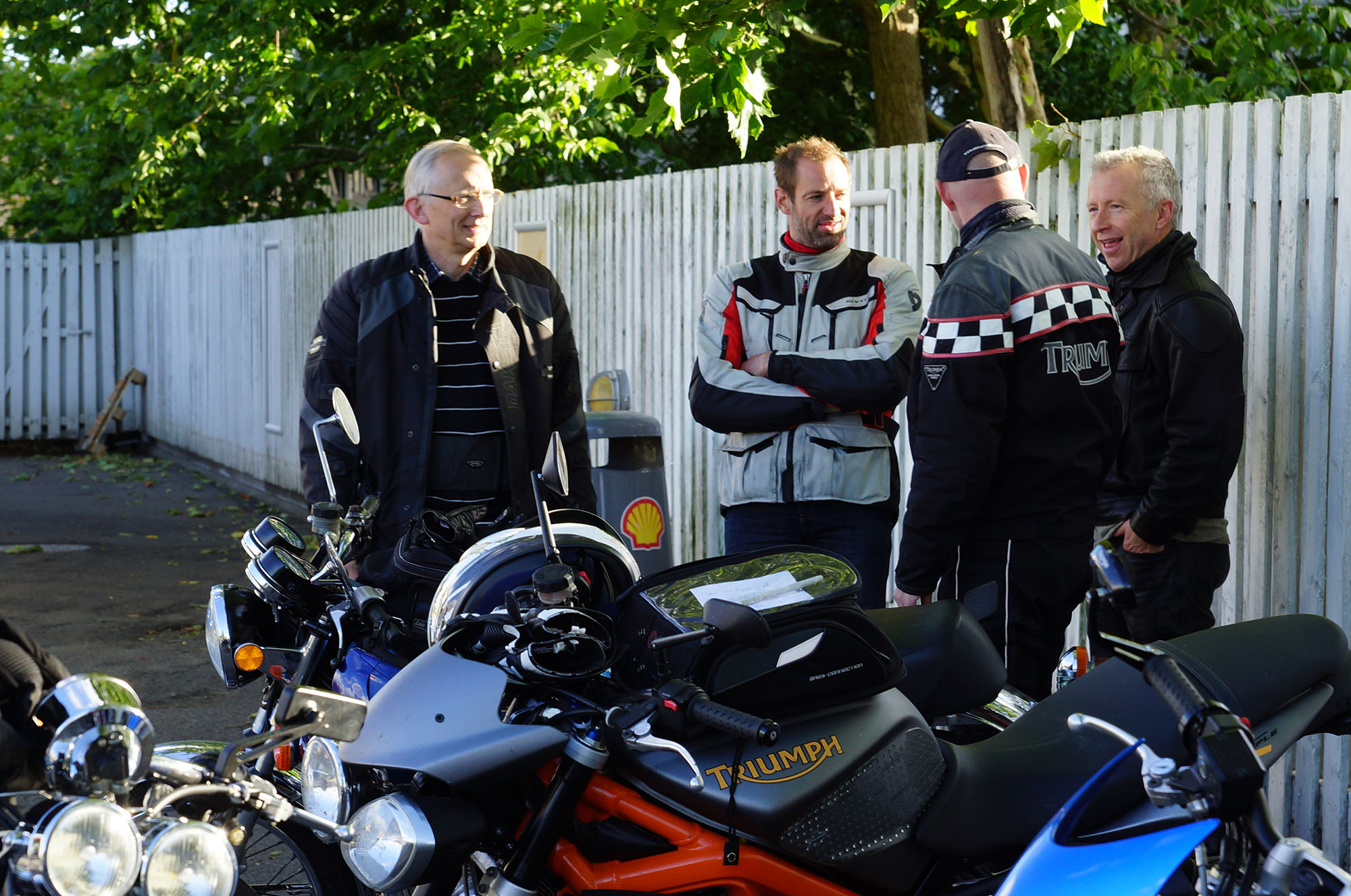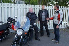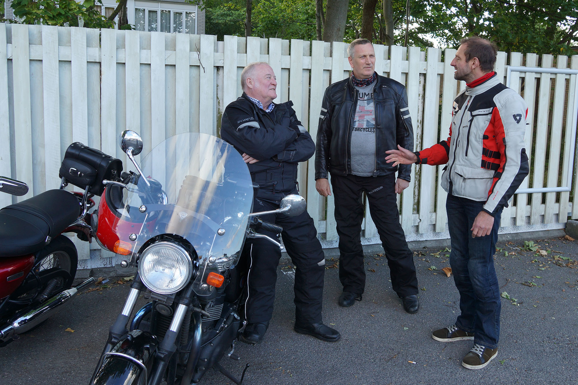 Mogens på den sorte Bonneville -07, Tom på den røde Legend -00, Allan på den blå Street Triple -13,