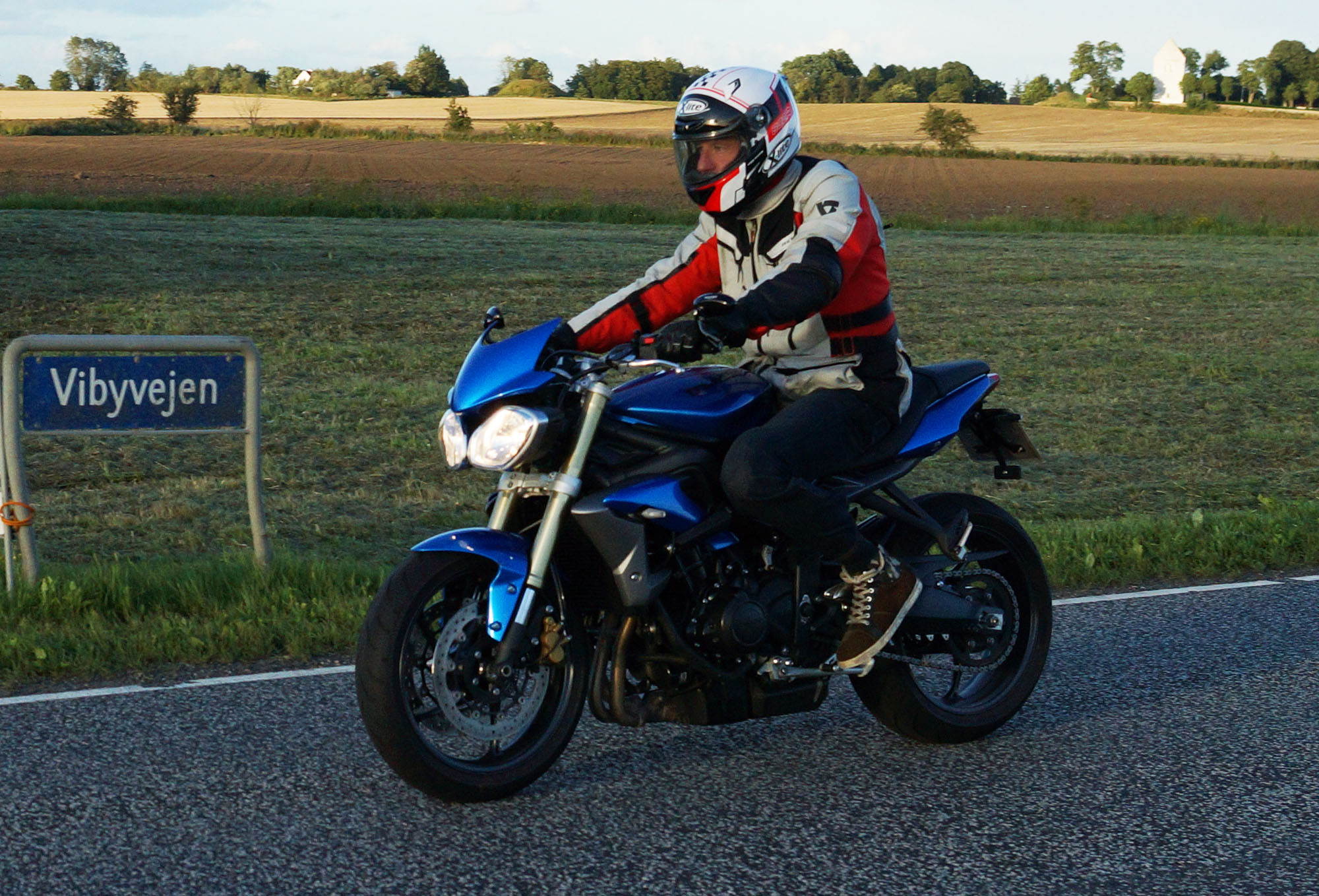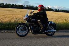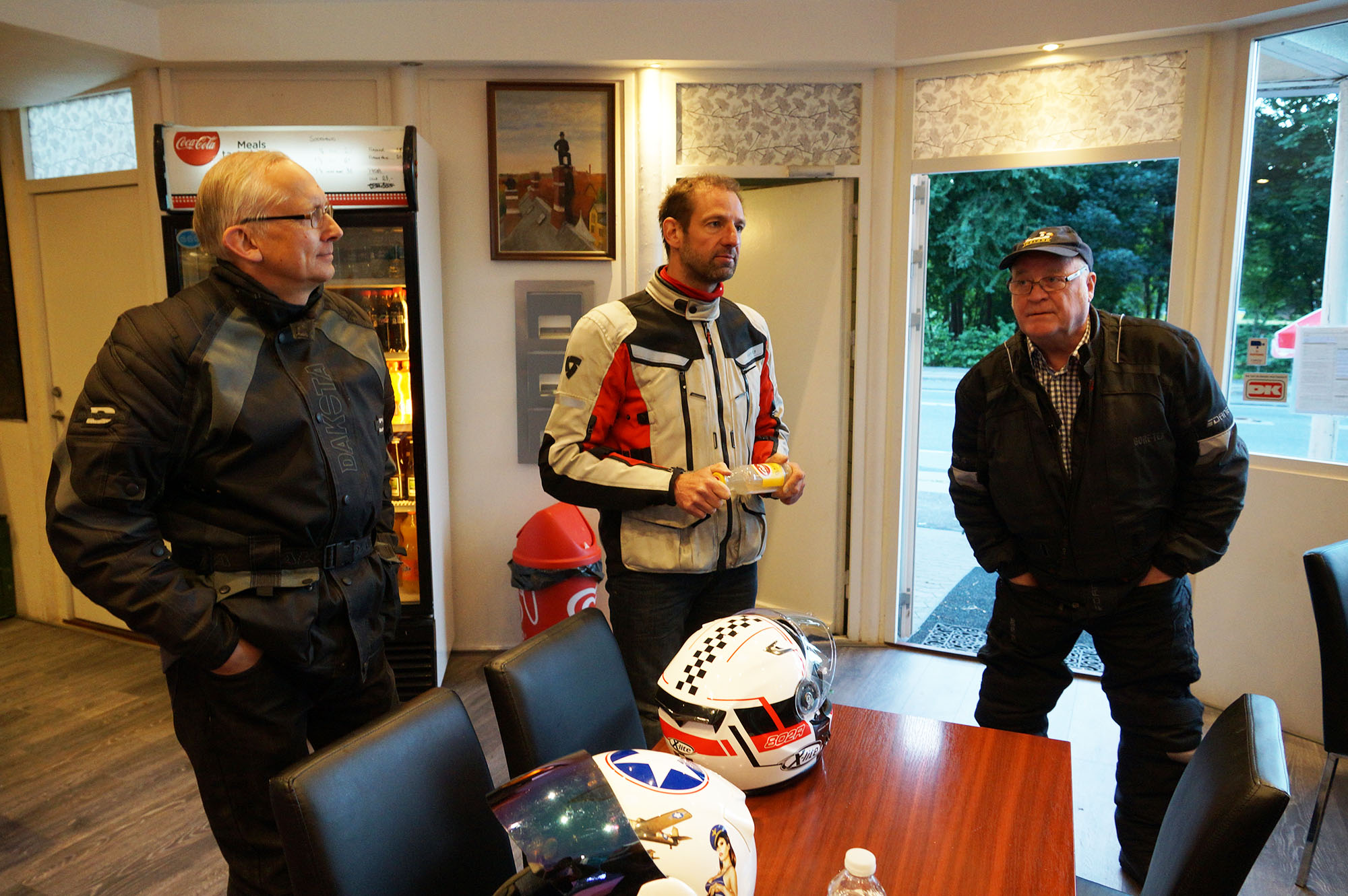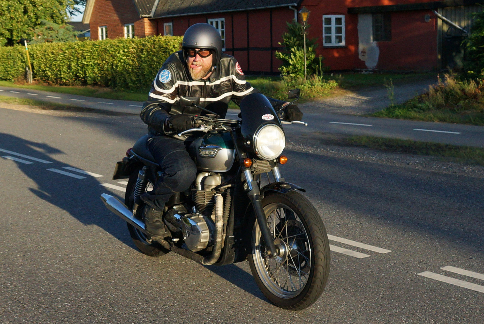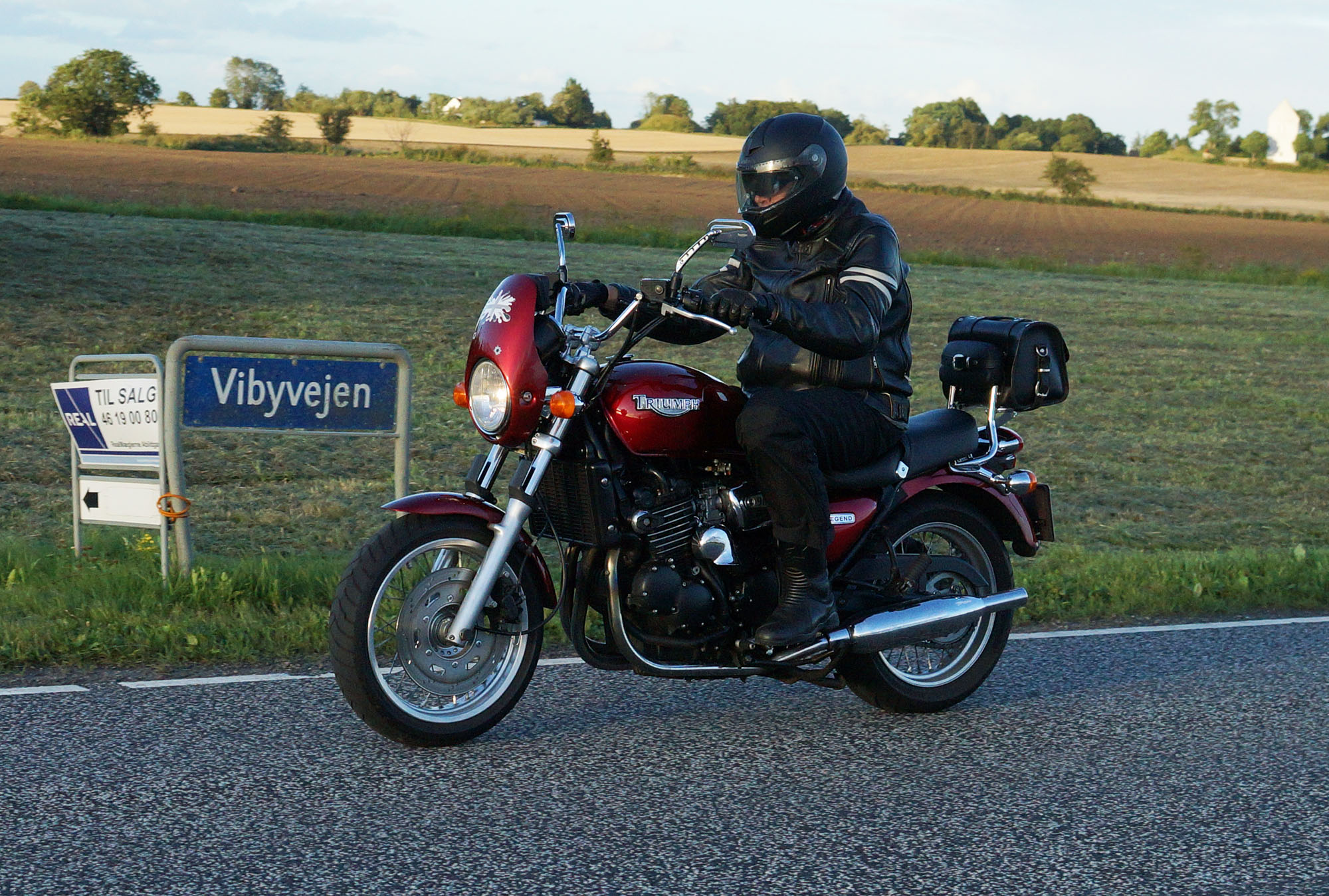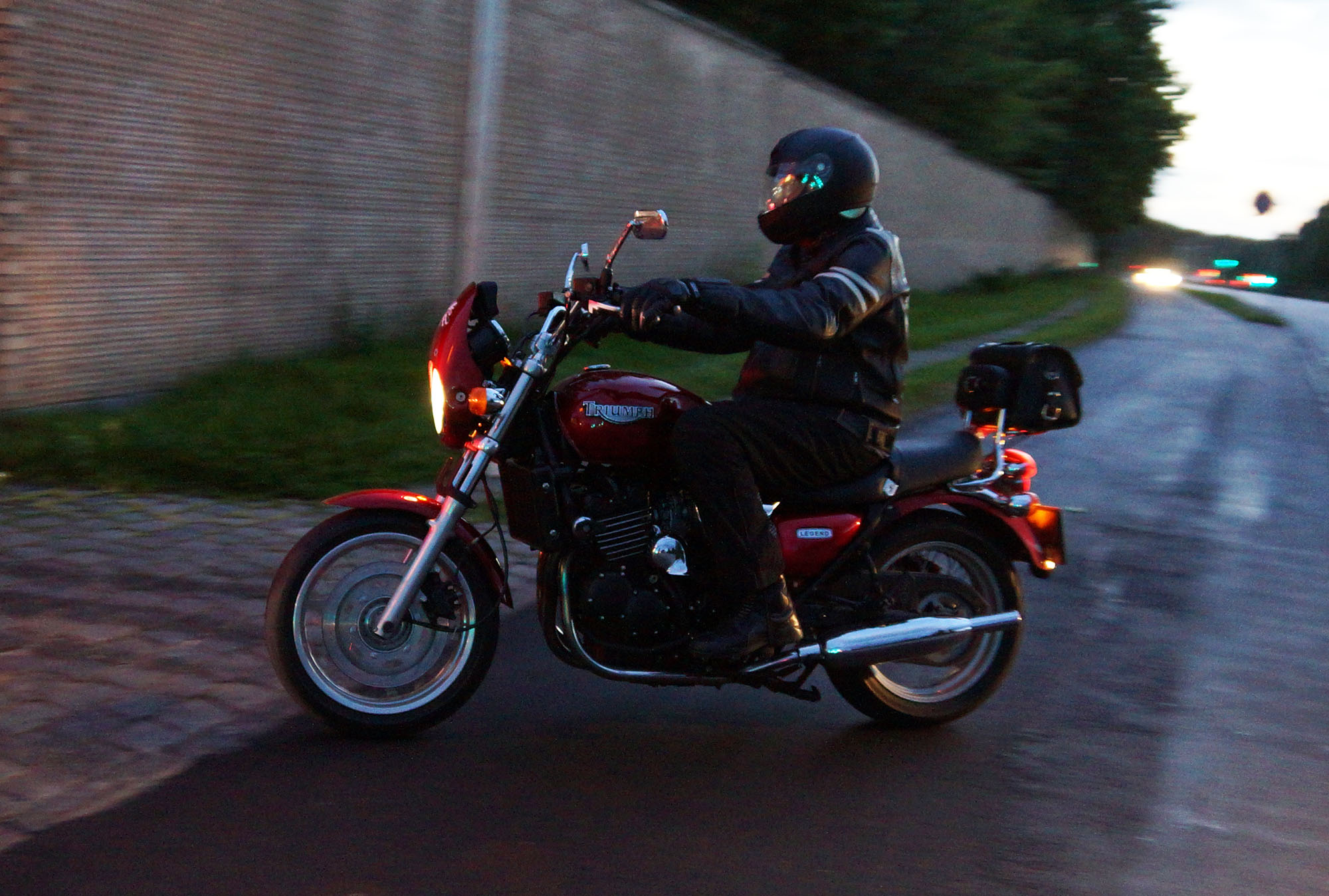 Mogens på den sorte Bonneville -07, Tom på den røde Legend -00, Allan på den blå Street Triple -13,
