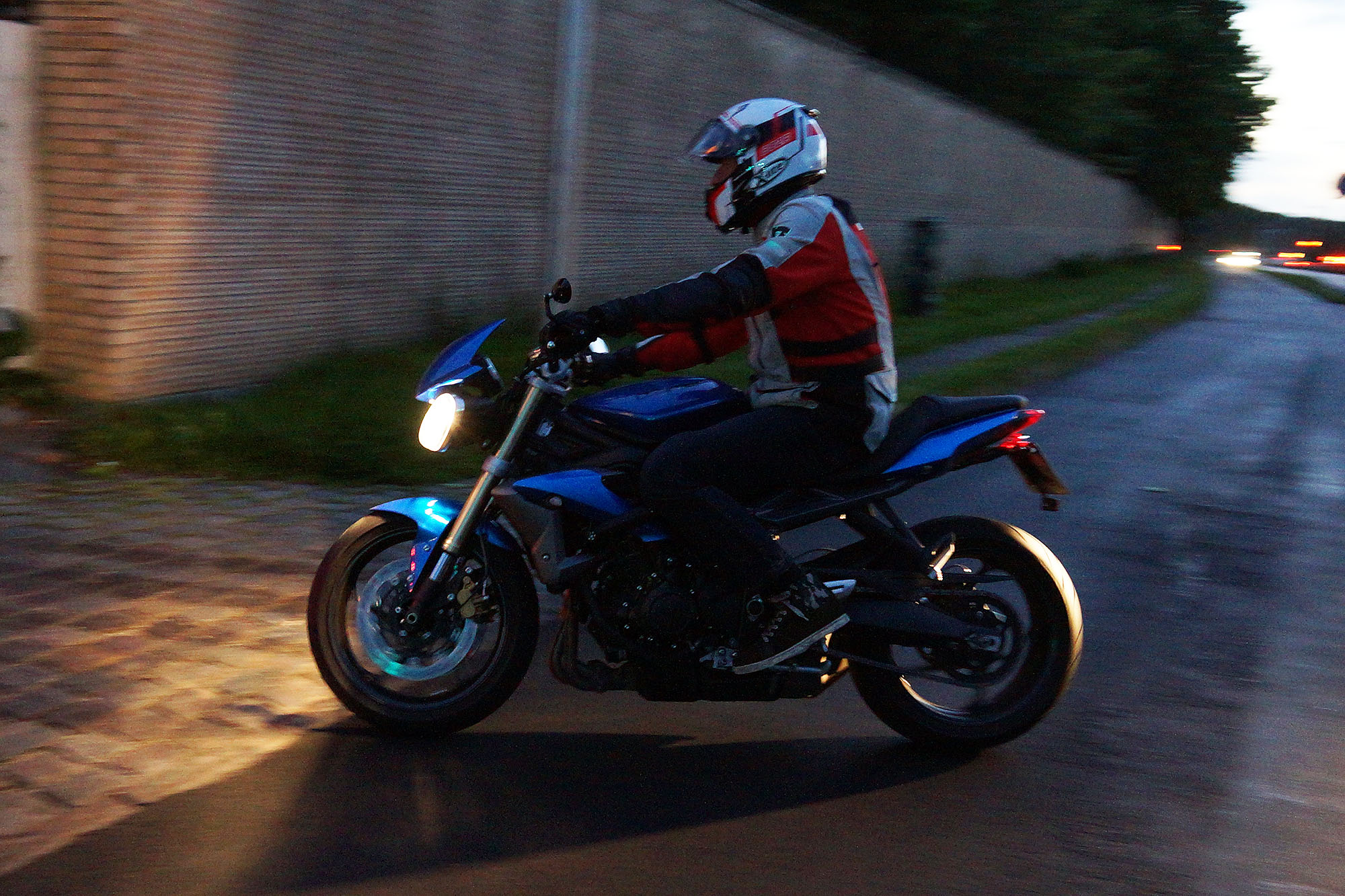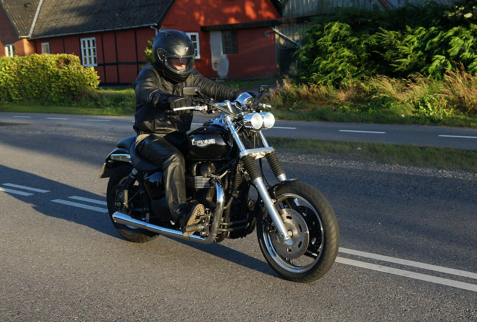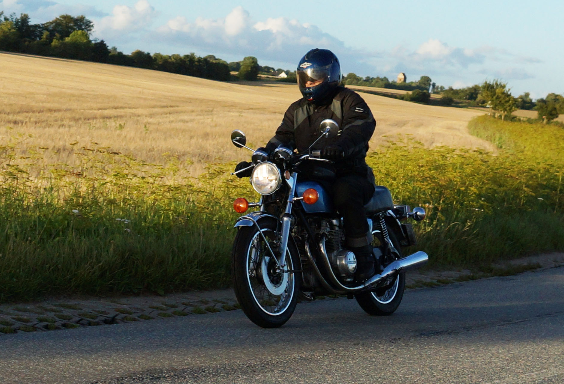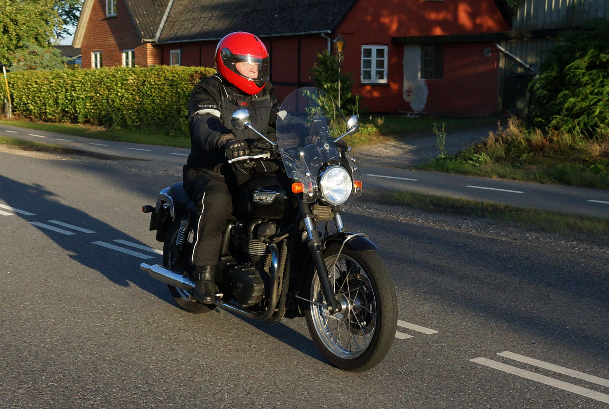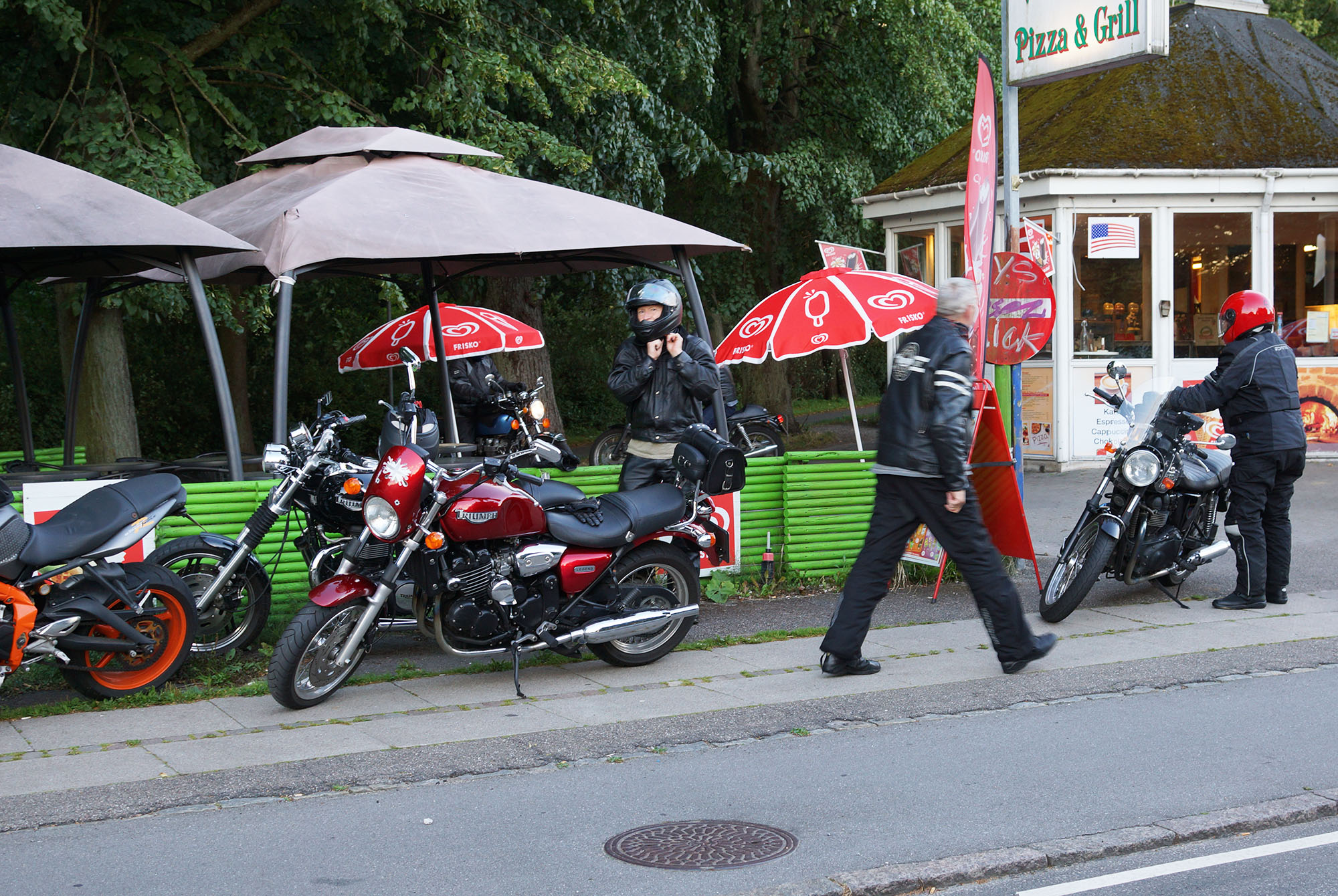 Mogens på den sorte Bonneville -07, Tom på den røde Legend -00, Allan på den blå Street Triple -13,