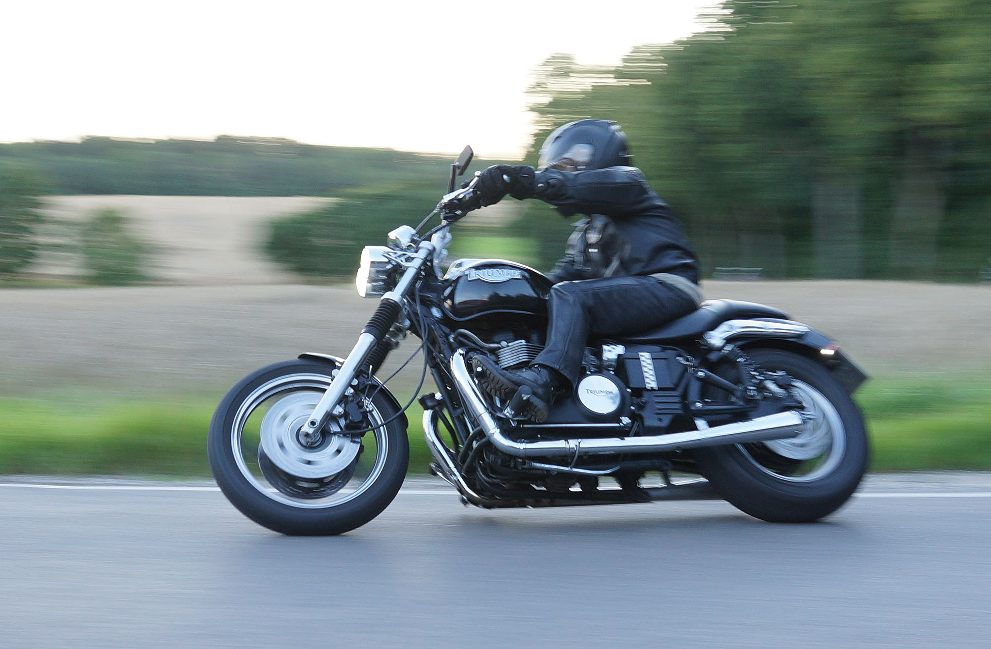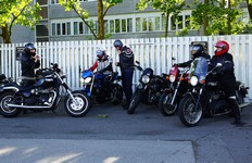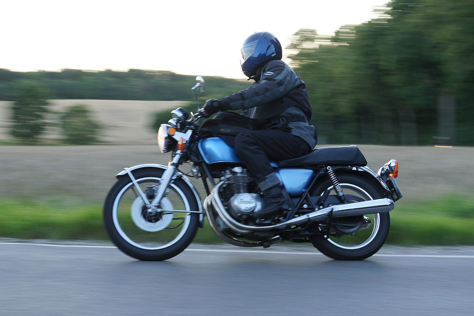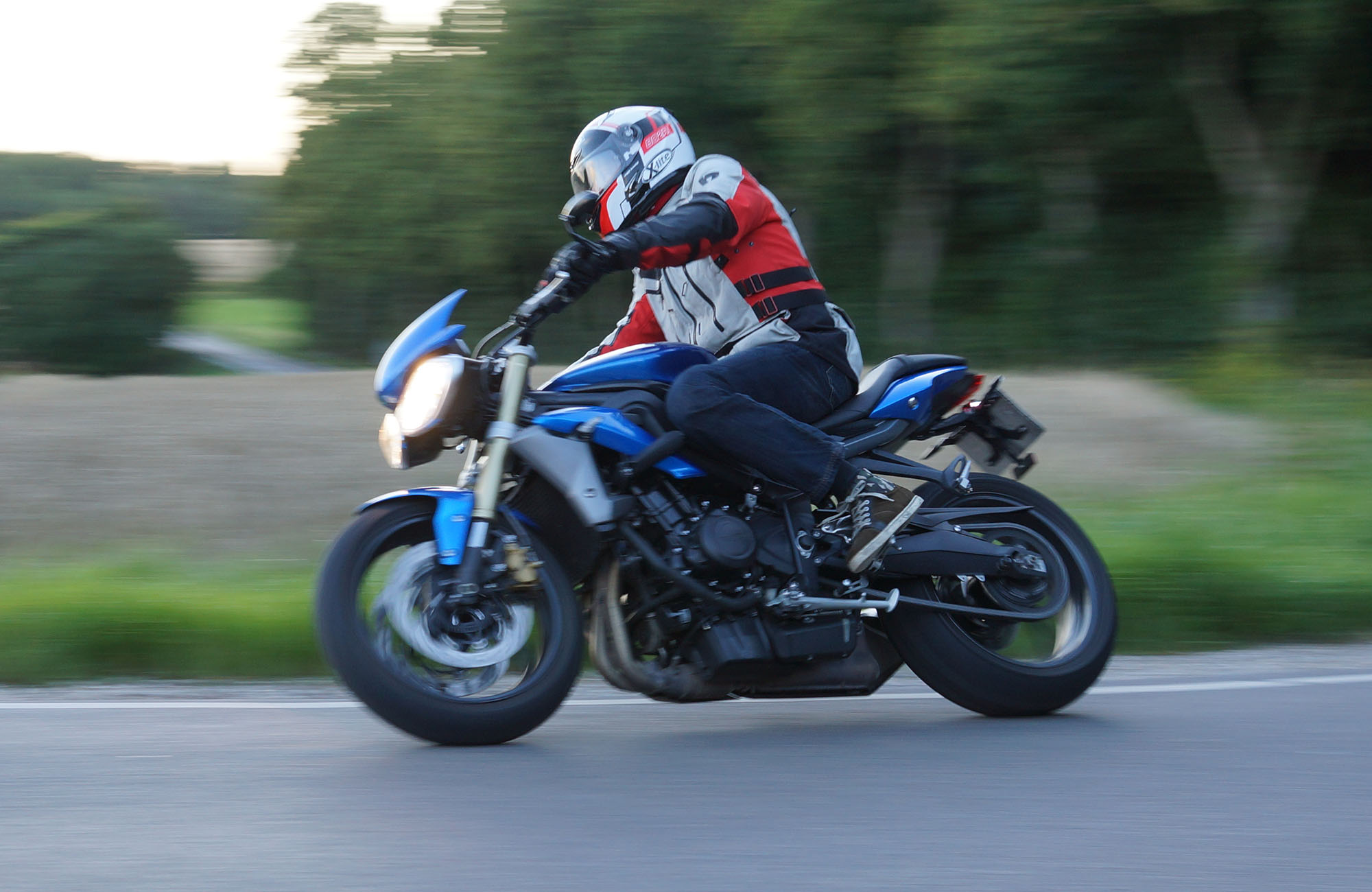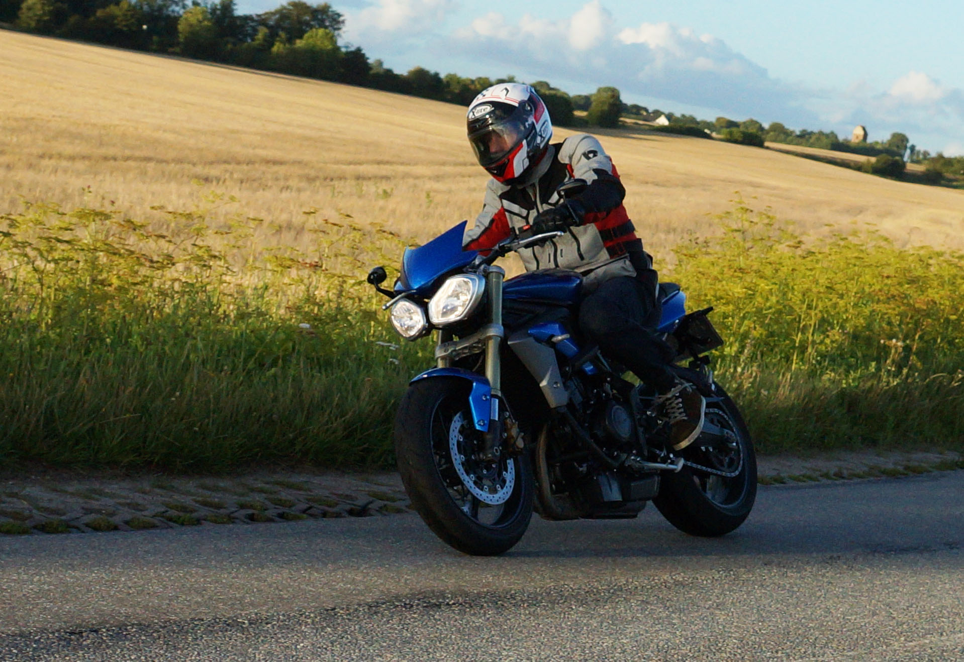 Mogens på den sorte Bonneville -07, Tom på den røde Legend -00, Allan på den blå Street Triple -13,