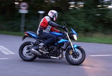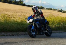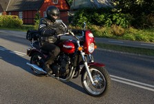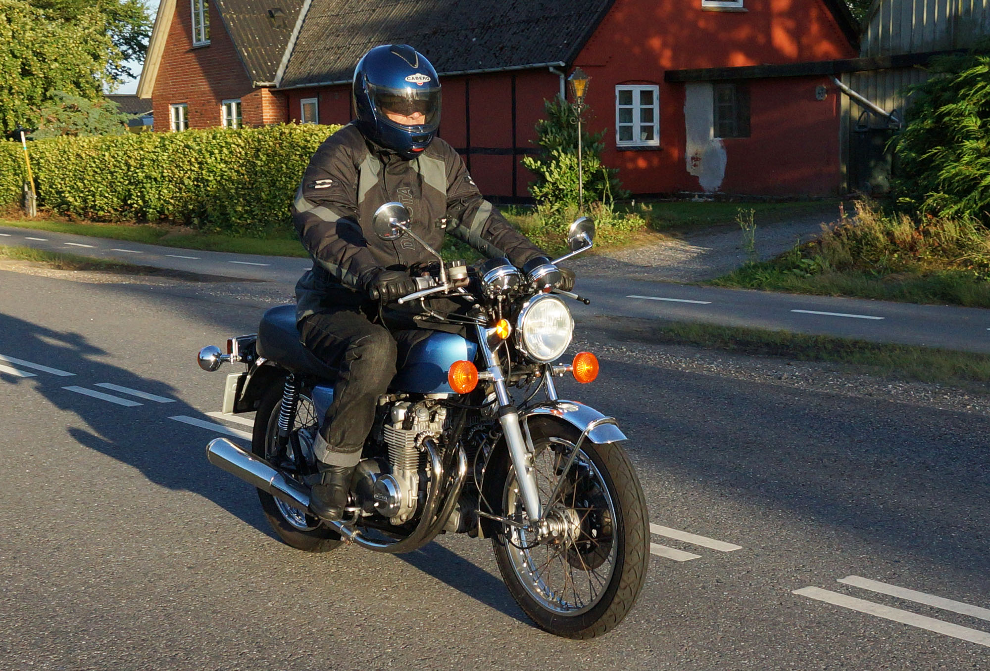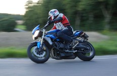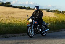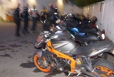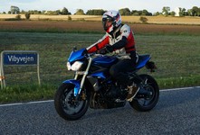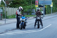 Søren på en blå CB500 -77, og mig selv på den grå/orange Street Triple KM-special -08.