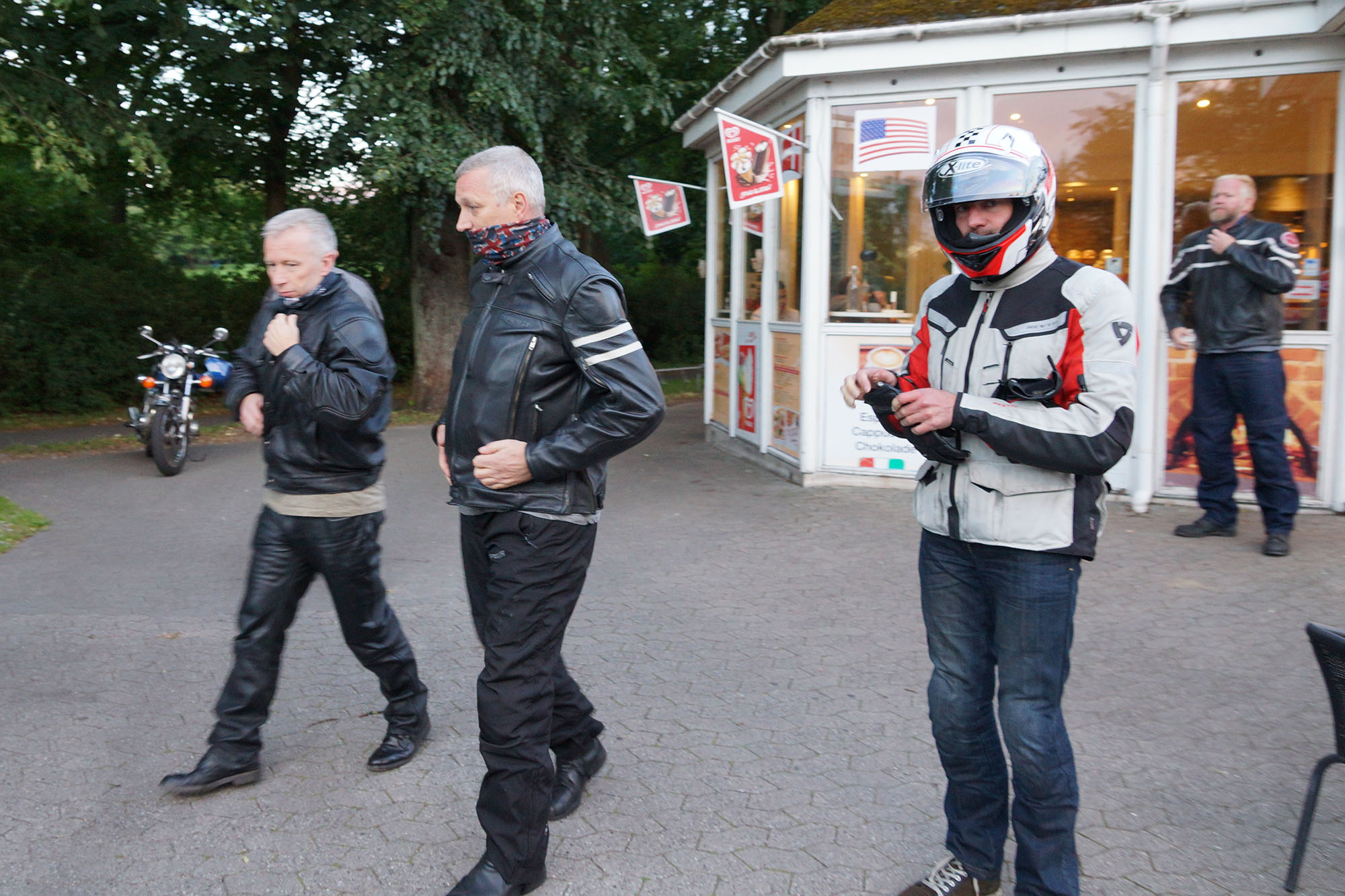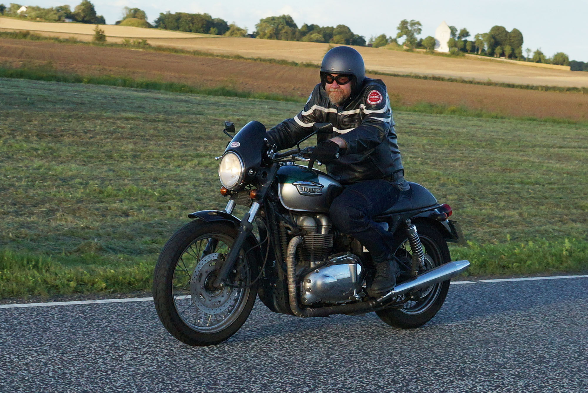 Lidet efter så kom der også Jan på en blå TT600 -02, Mads-Peter på en sølv/grøn Bonneville -01,