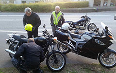 Søren på den blå CBX 550 -84, Niels med gul hjelm på en sort Bonneville -10.