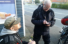 På billedet ser det ud som om Mogens er ved at dele fartbøder ud, men han noterer bare deltagerne.