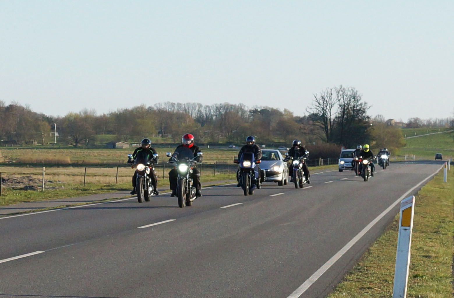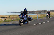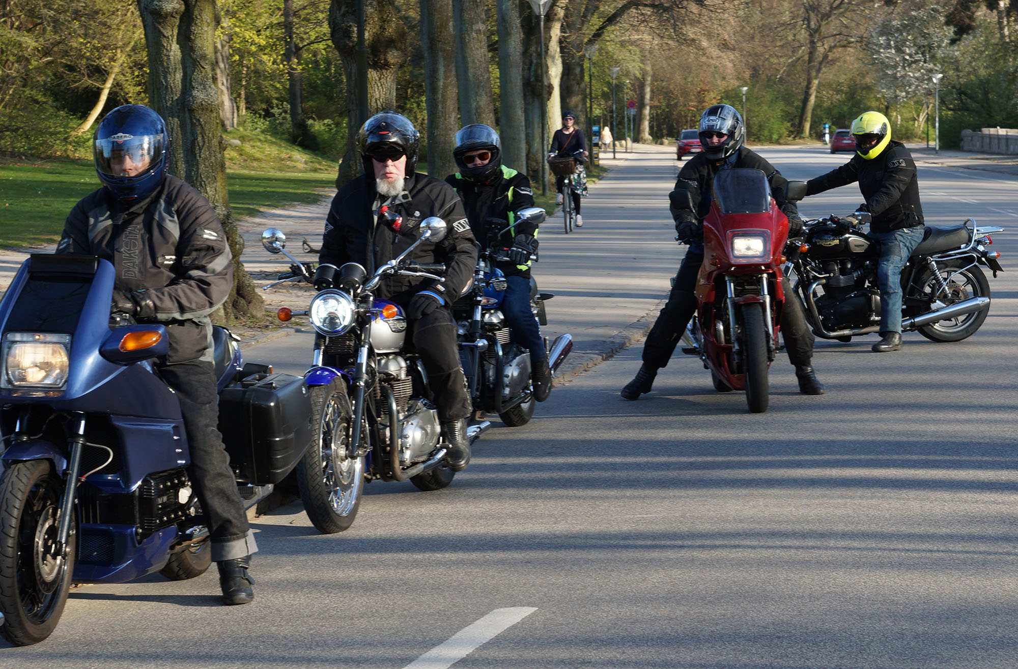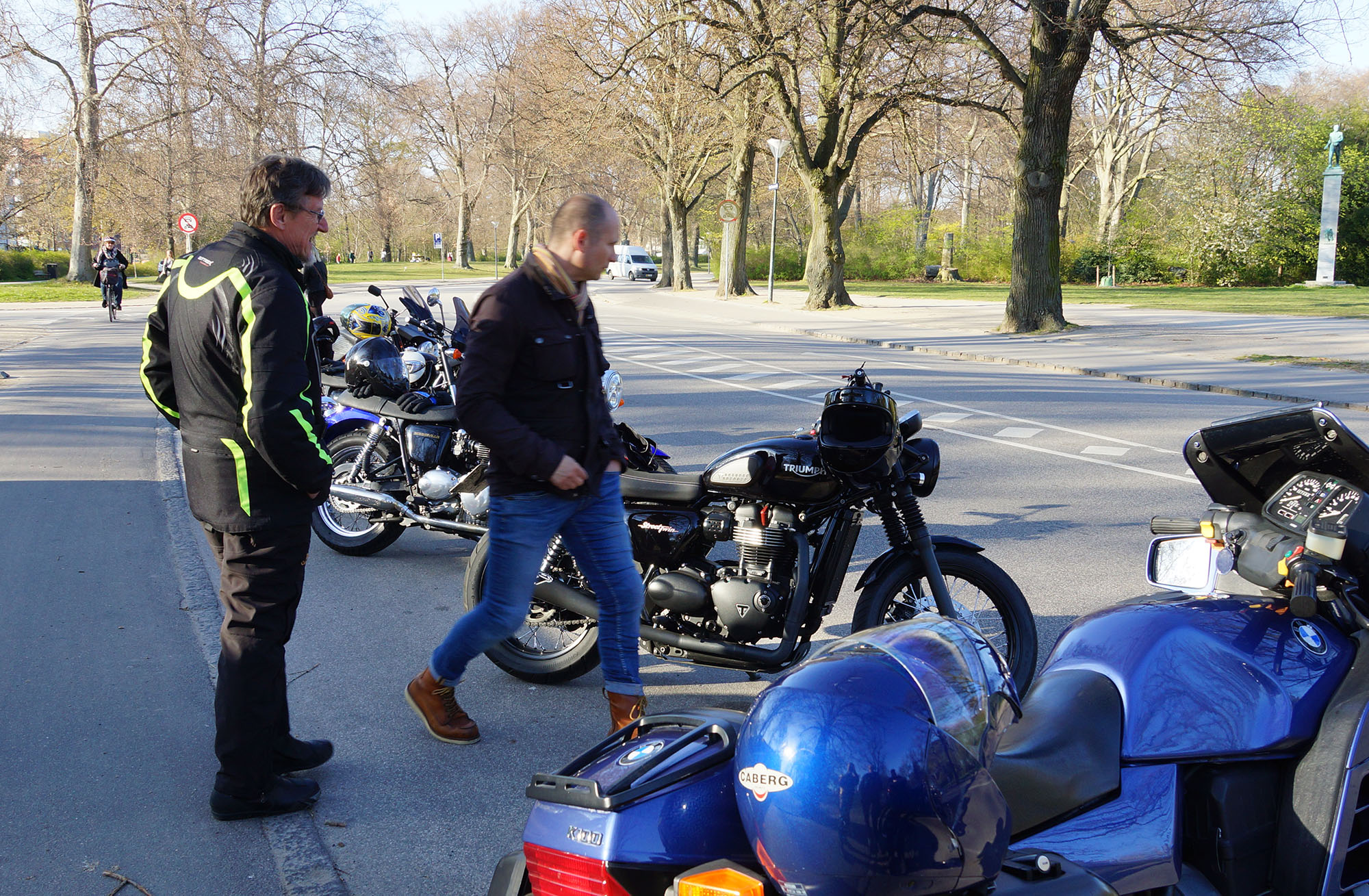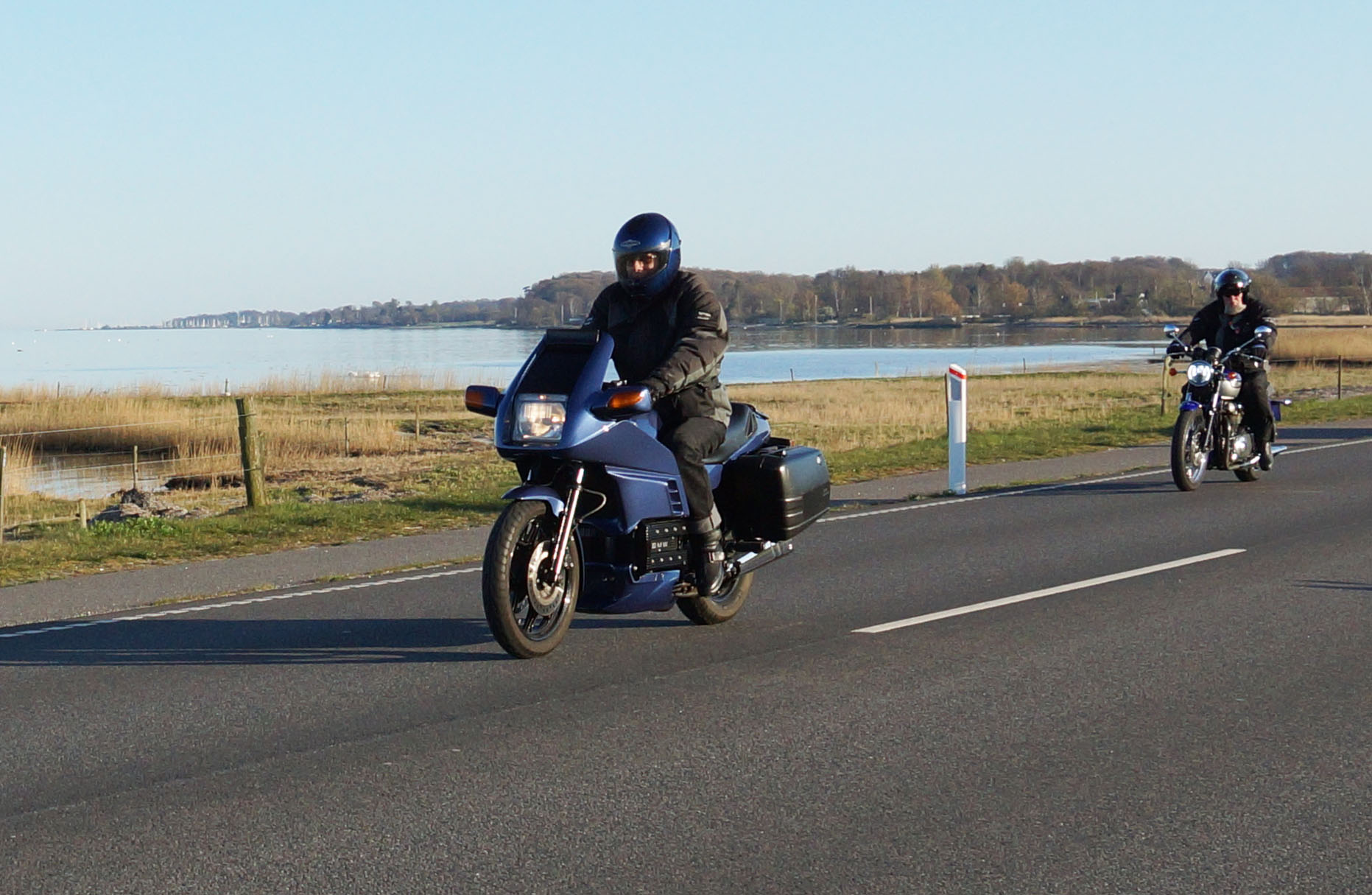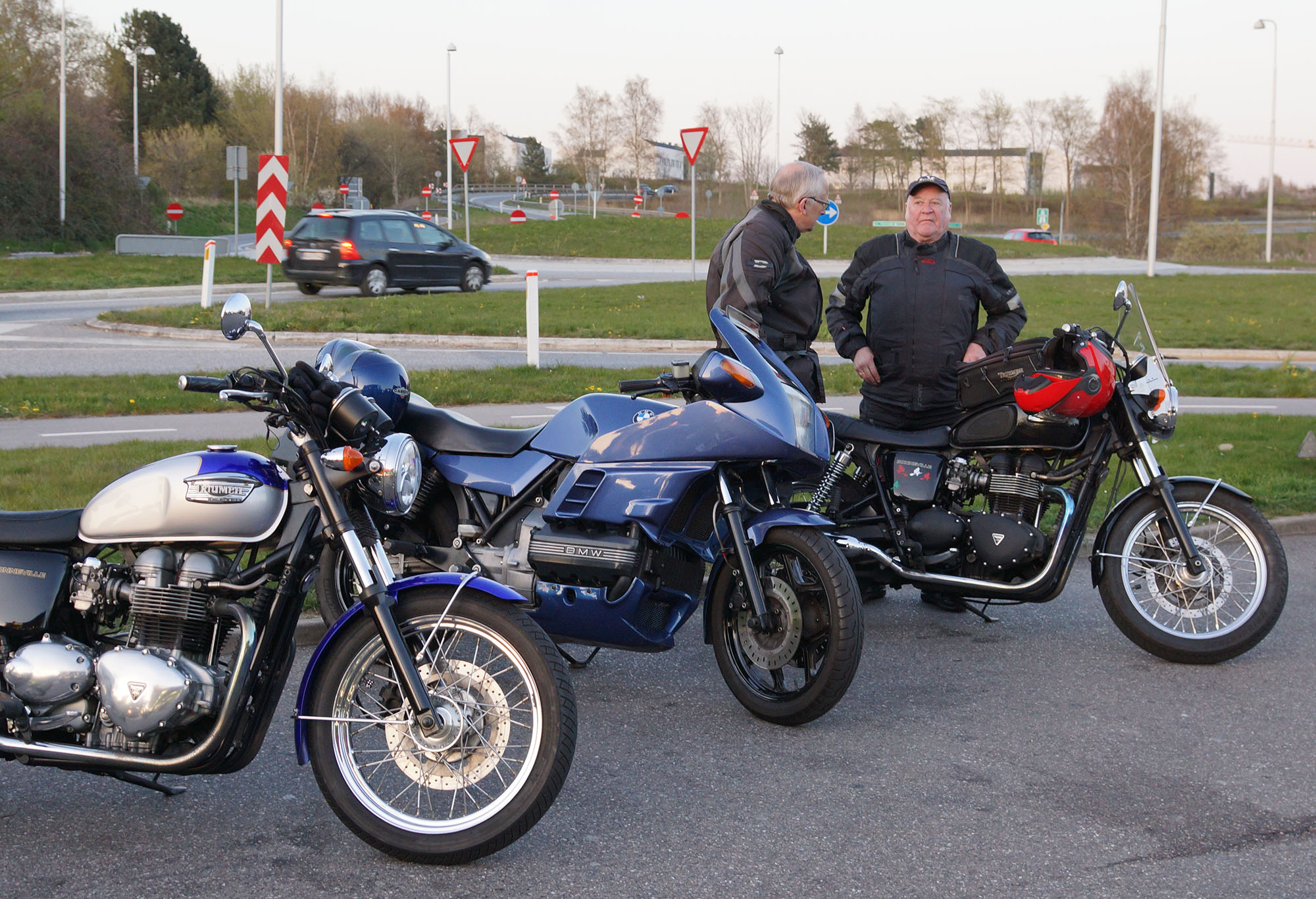 Jeg kunne se Mogens på den sorte Bonneville -09, Søren på den blå BMW K100 -83,