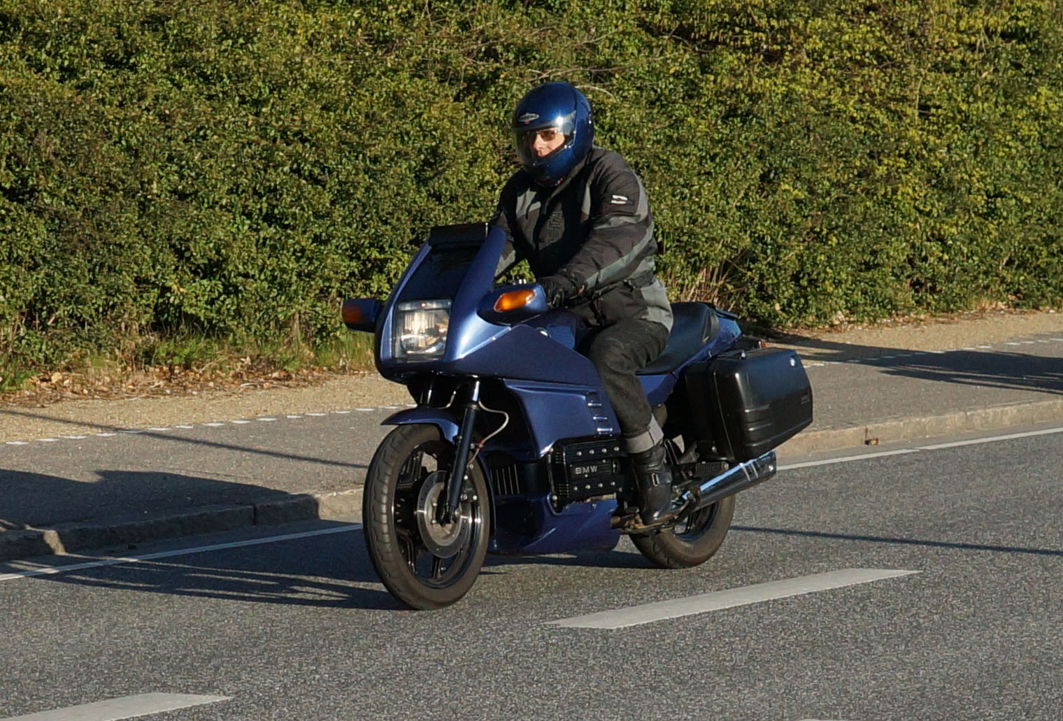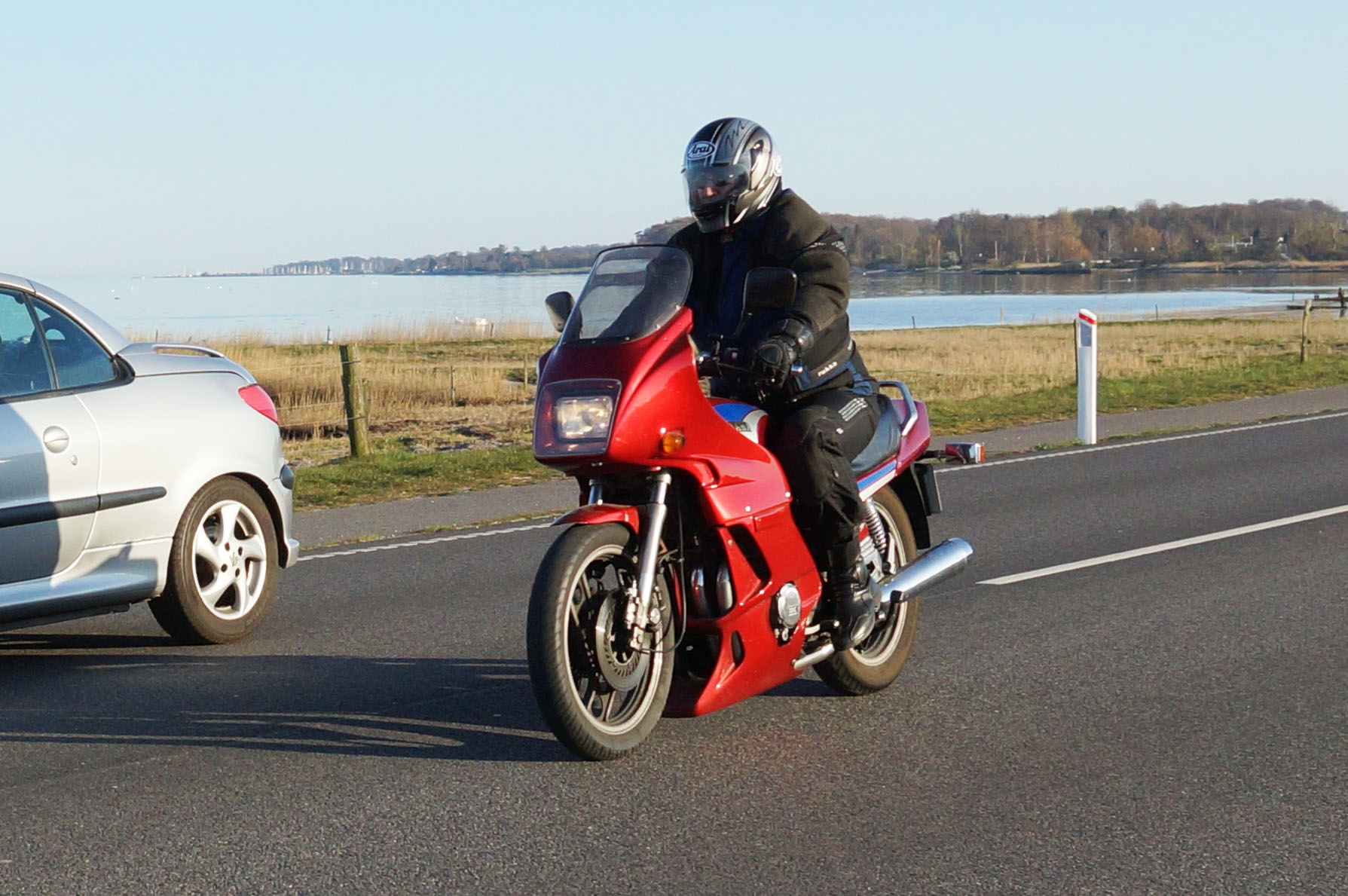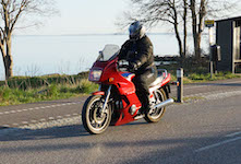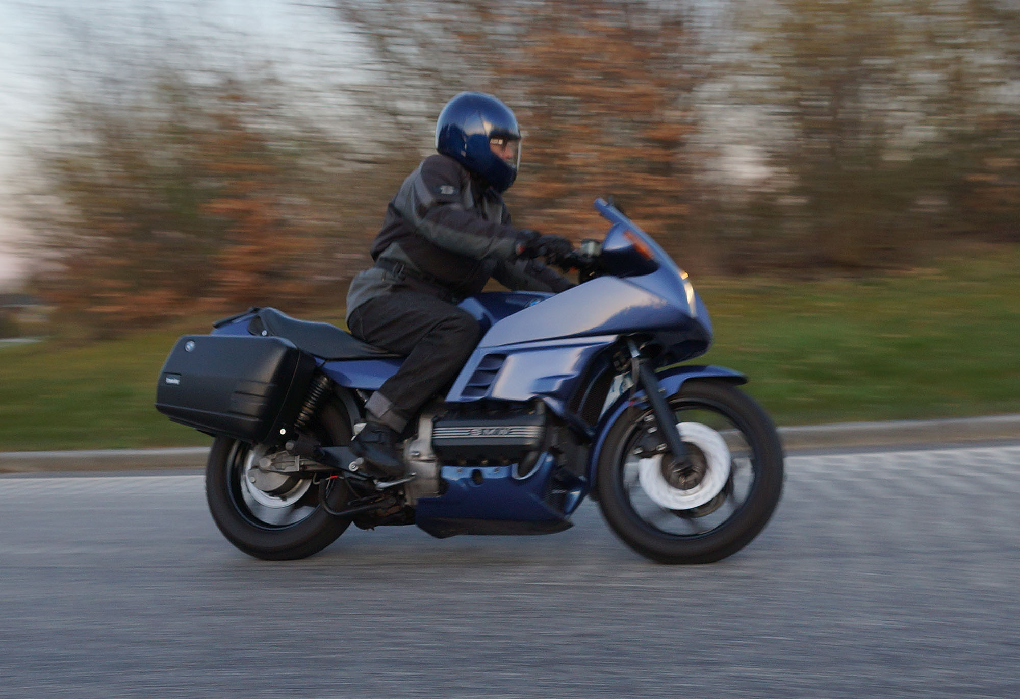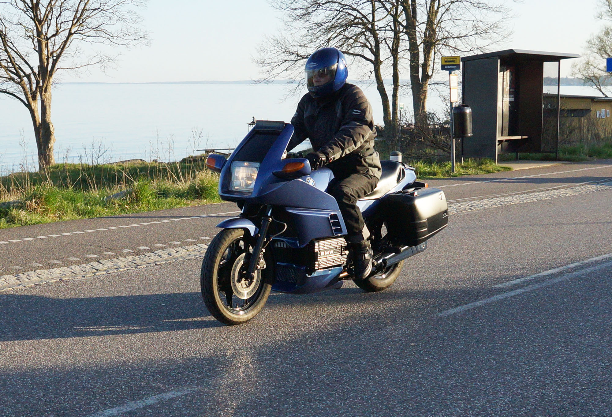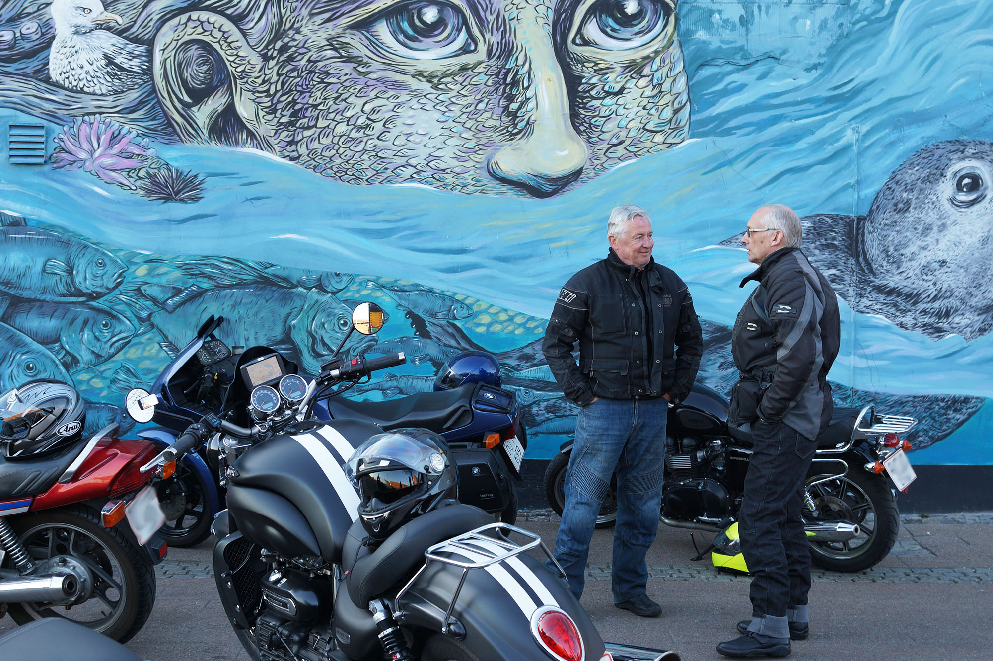 Jeg kunne se Mogens på den sorte Bonneville -09, Søren på den blå BMW K100 -83,