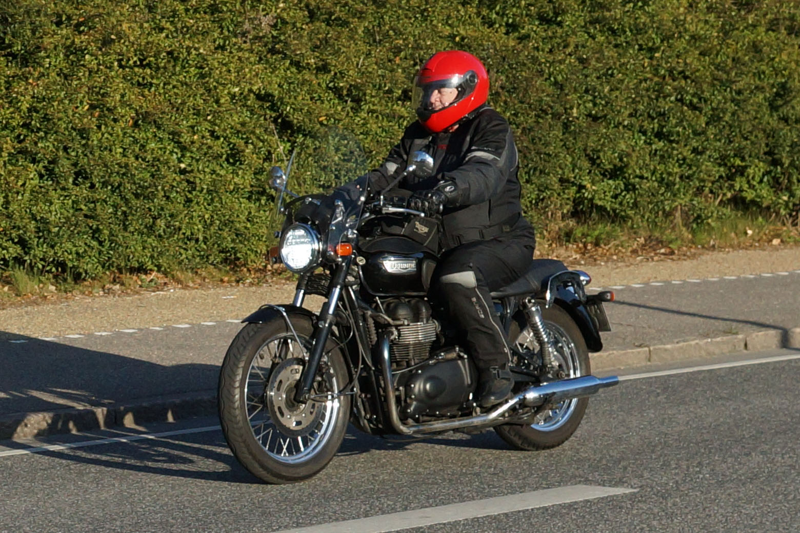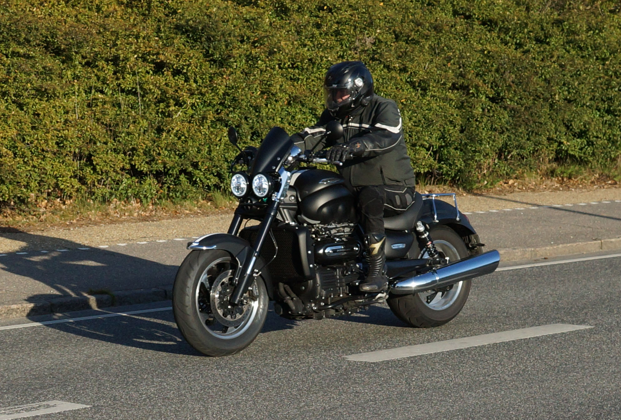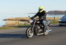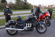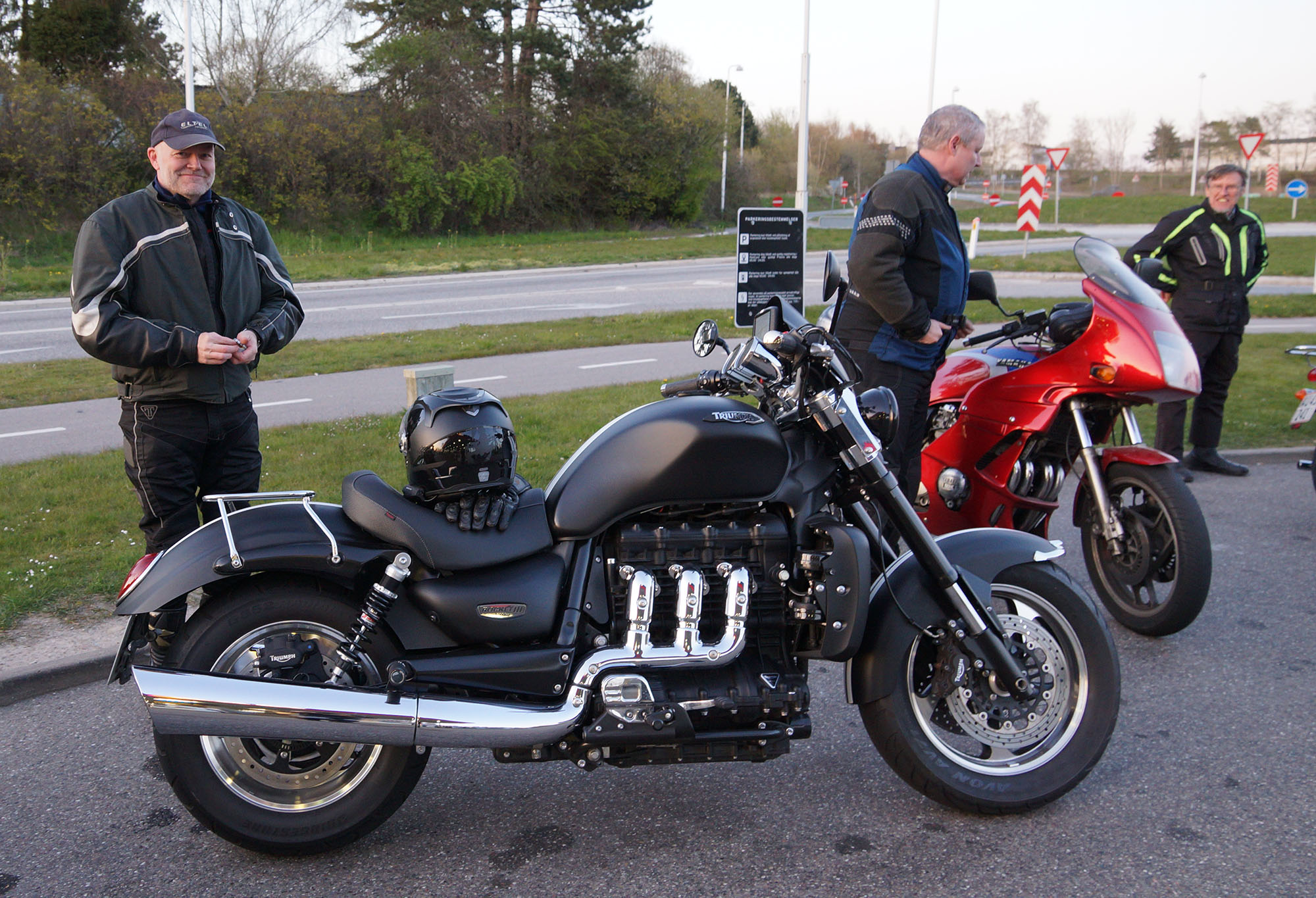 XJ900 -83, Jan på en sort Rocket III -14, Niels på en sort Bonneville -10, og mig selv