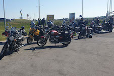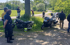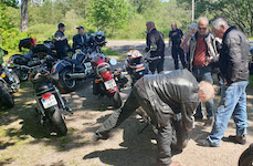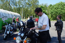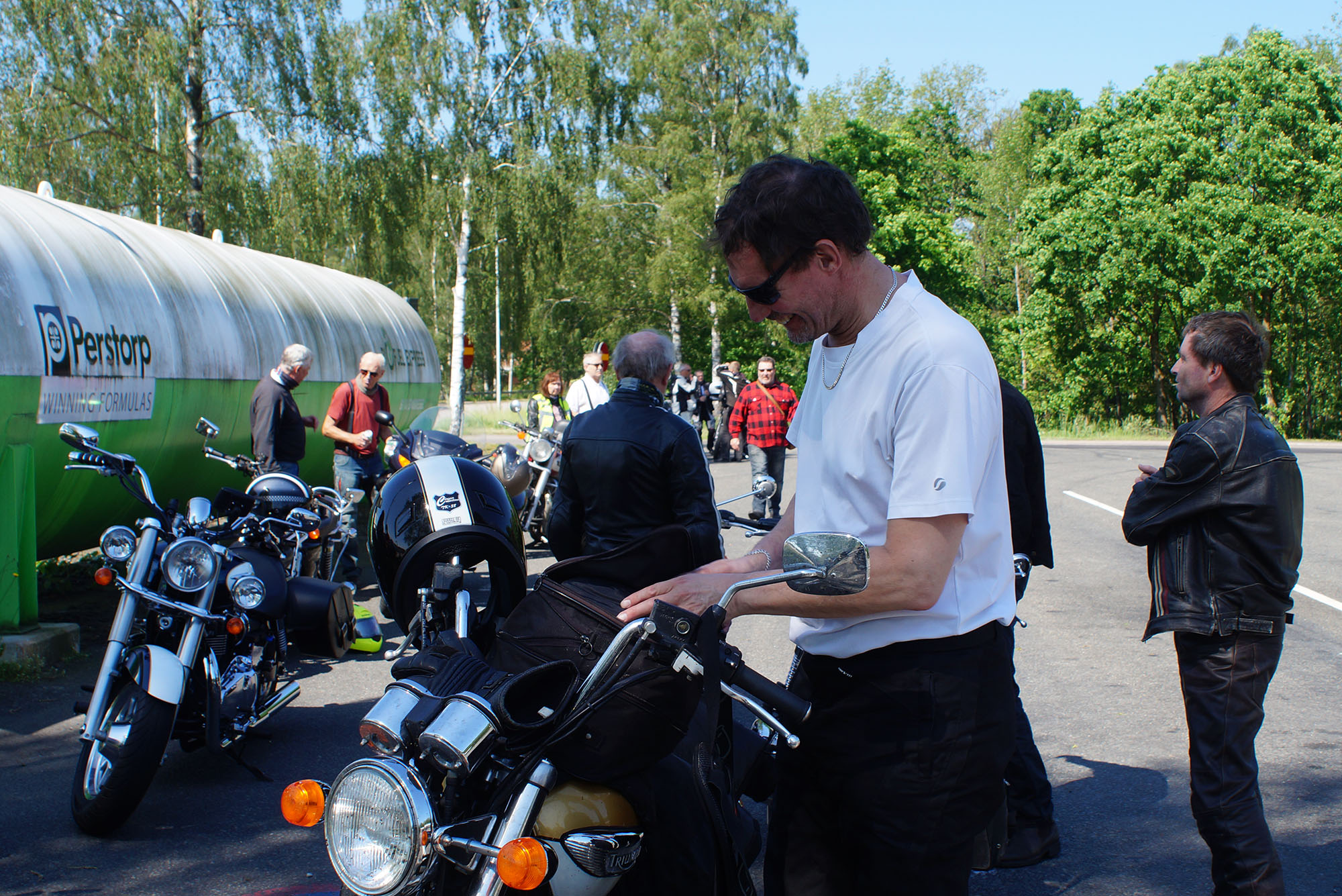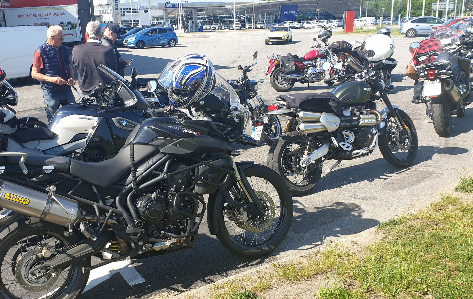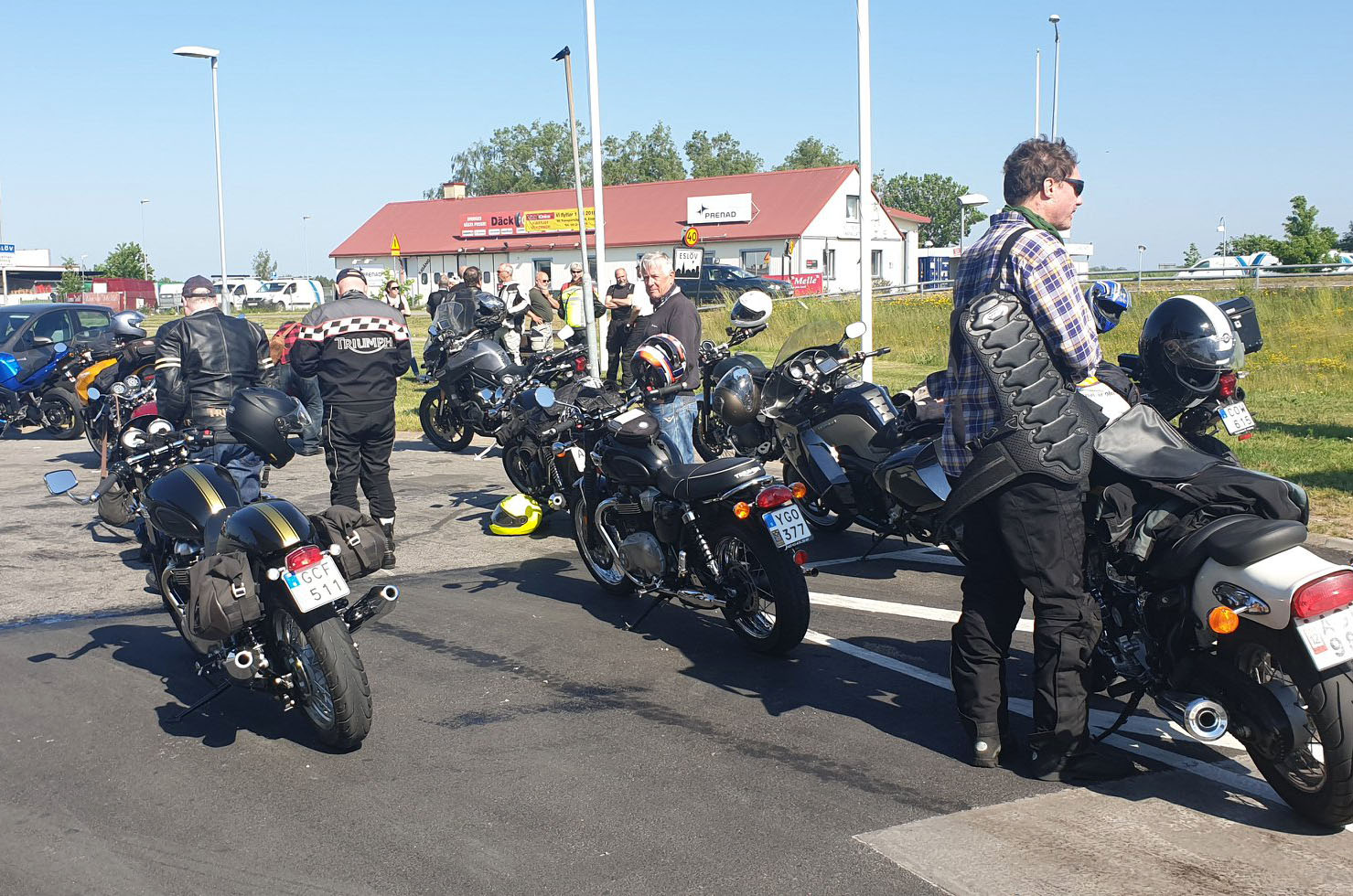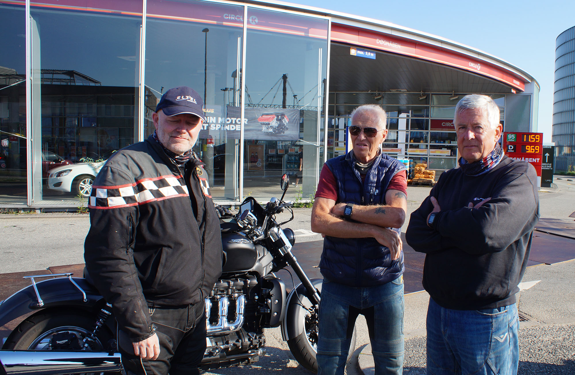på siden af mig. Da vi nåede frem til tanken så jeg at Niels allerede var der på sin sorte Bonneville,