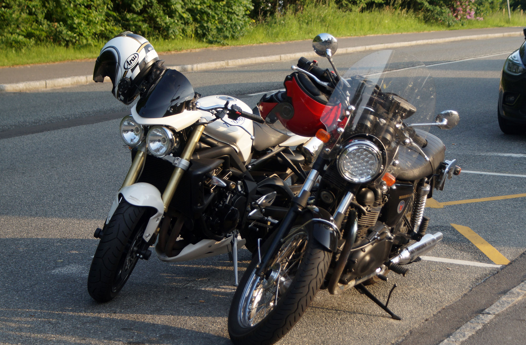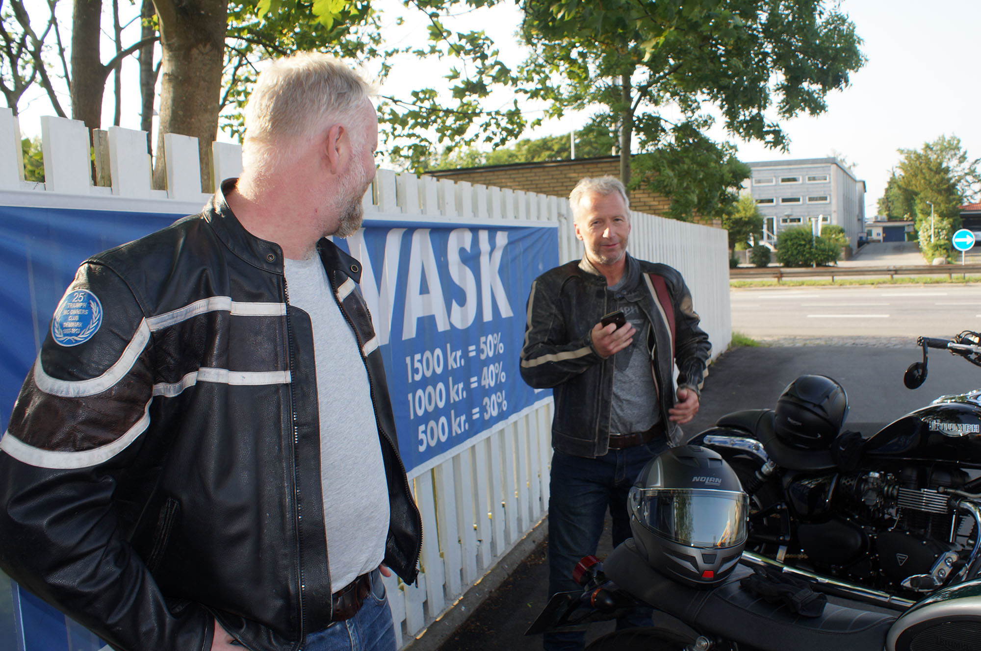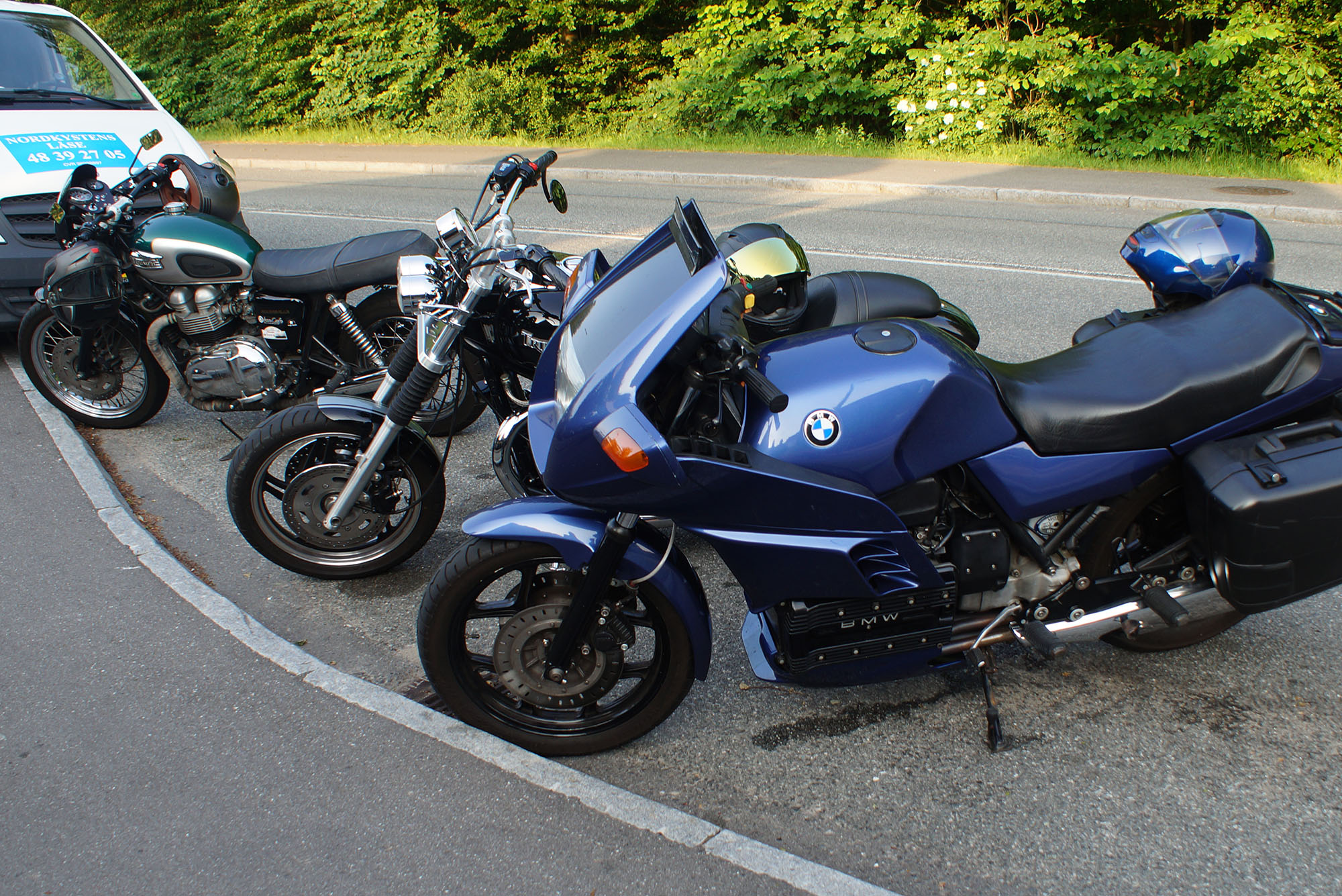 det var Søren på en blå BMW K100 -84 og Klaus på en hvid Street Triple -08.