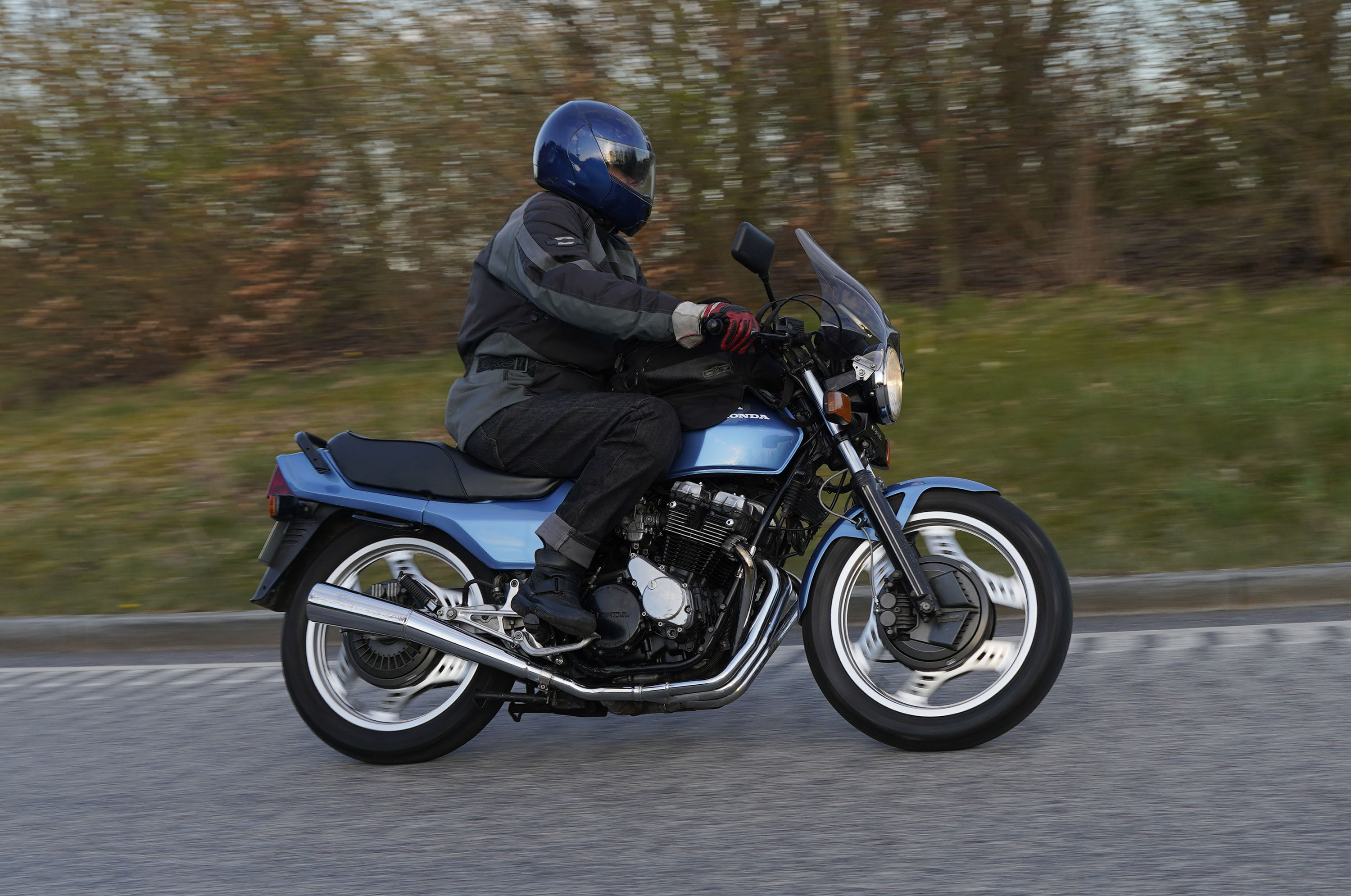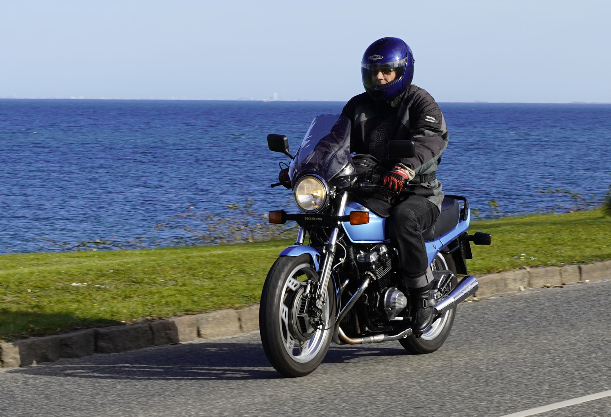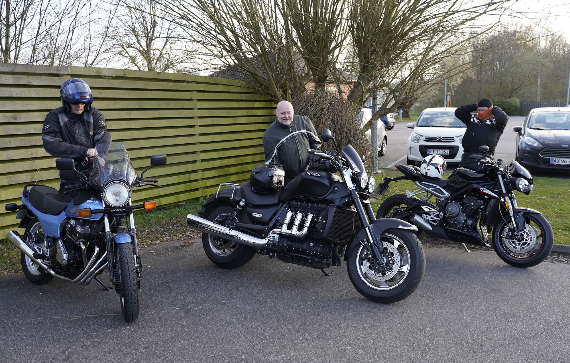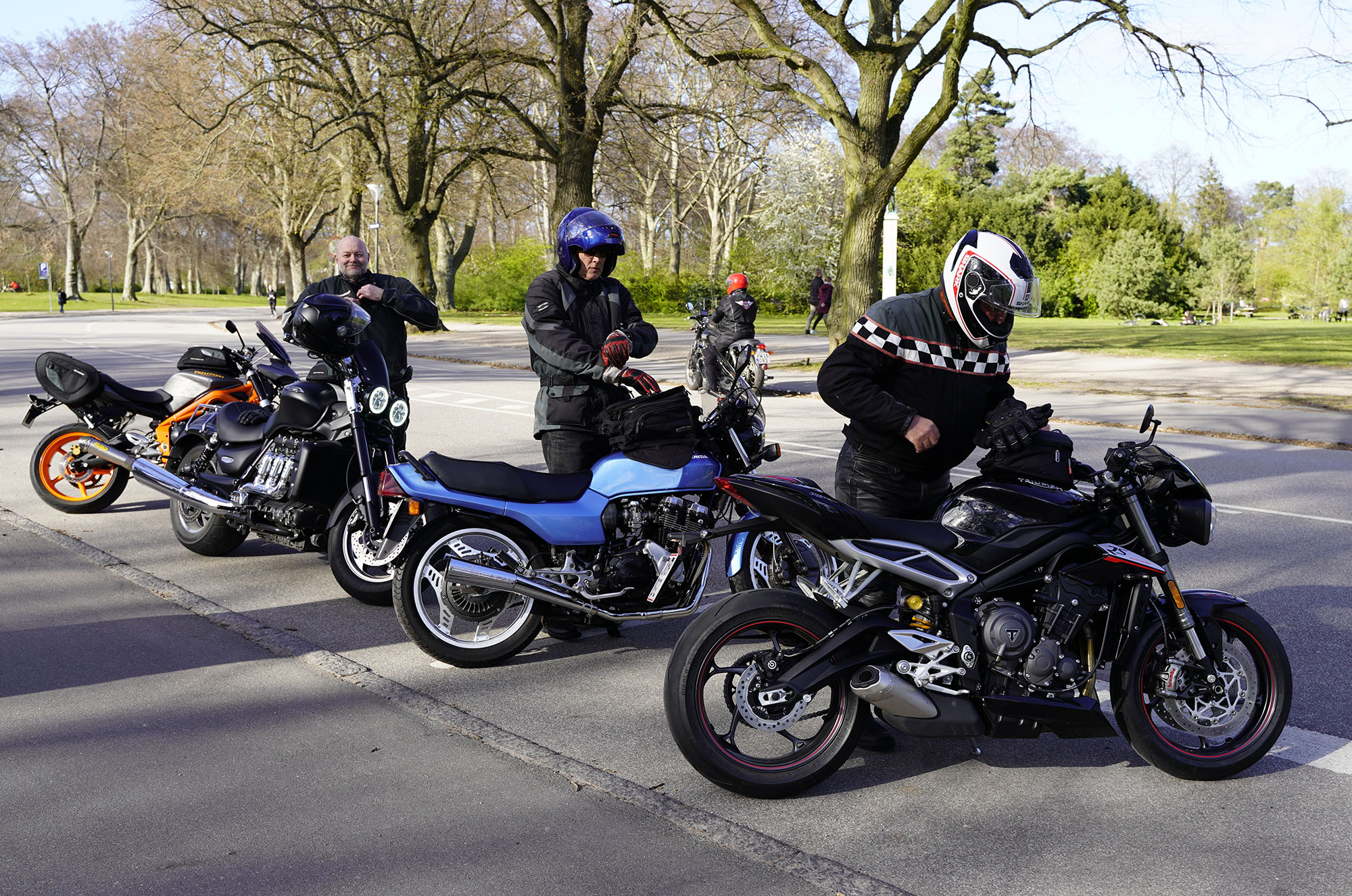 på den blå CBX 550 -84 og Ib på sin helt nye Street Triple RS -18, en vildt dejlig