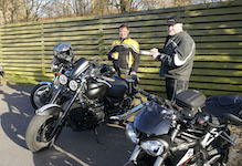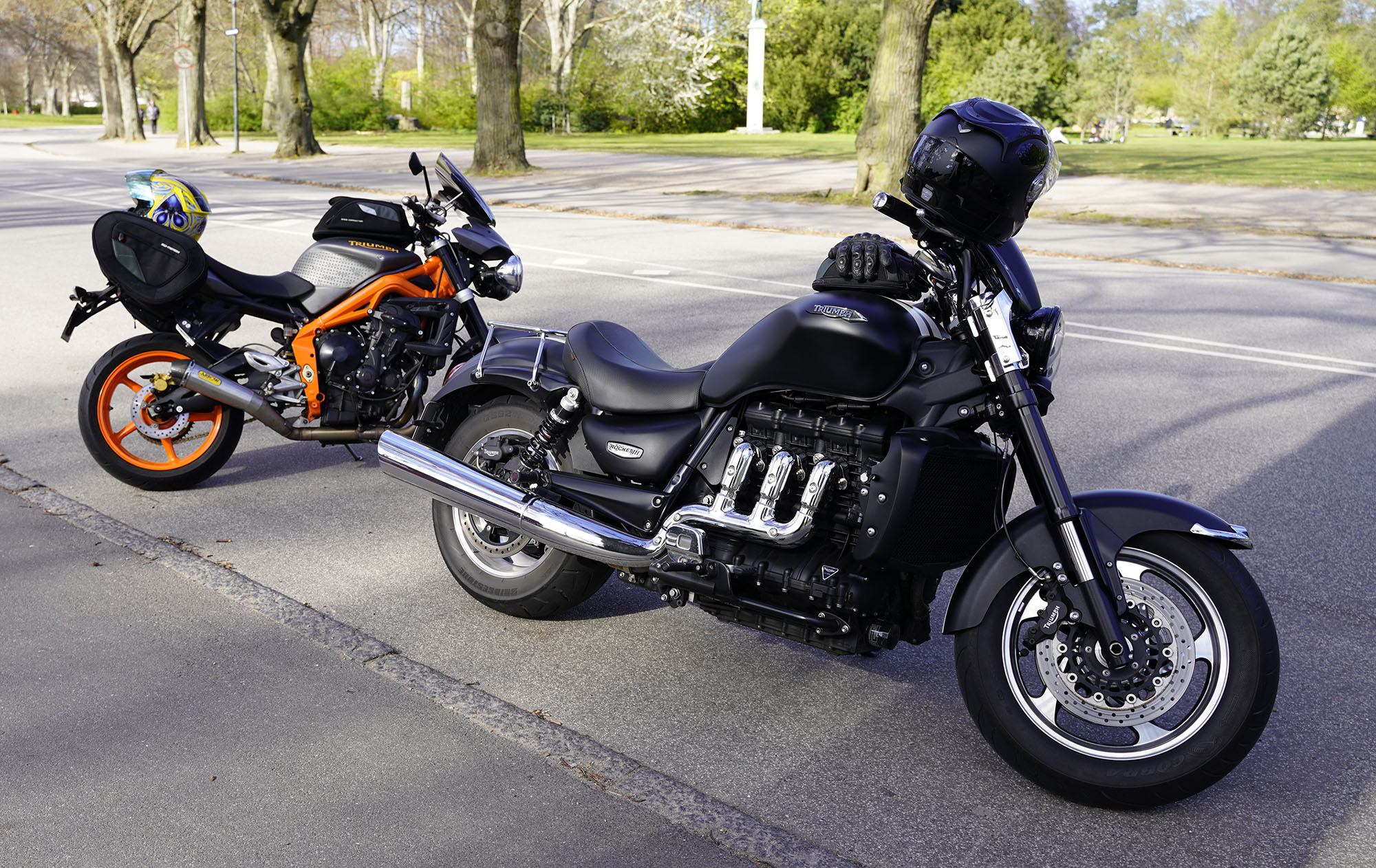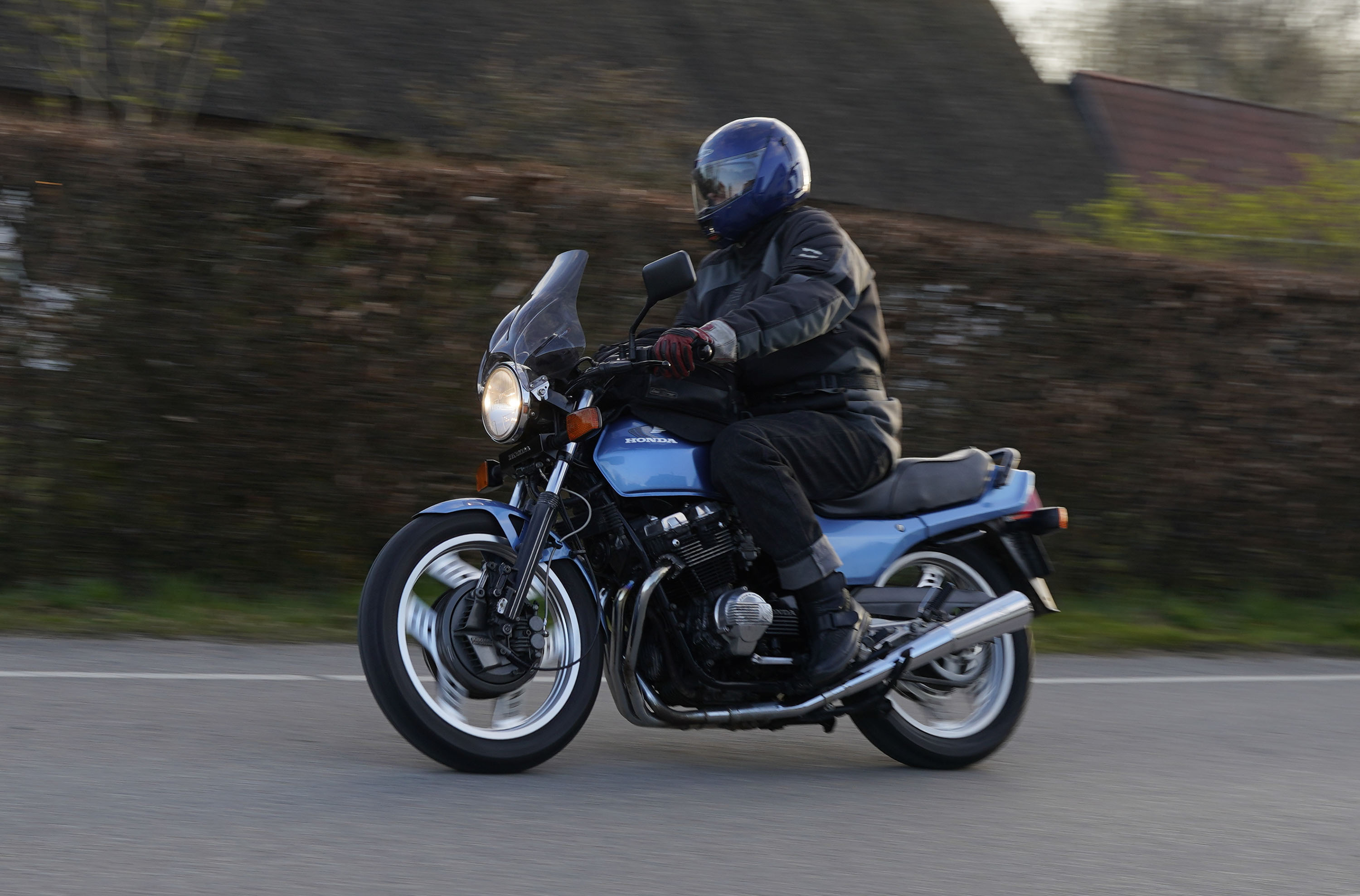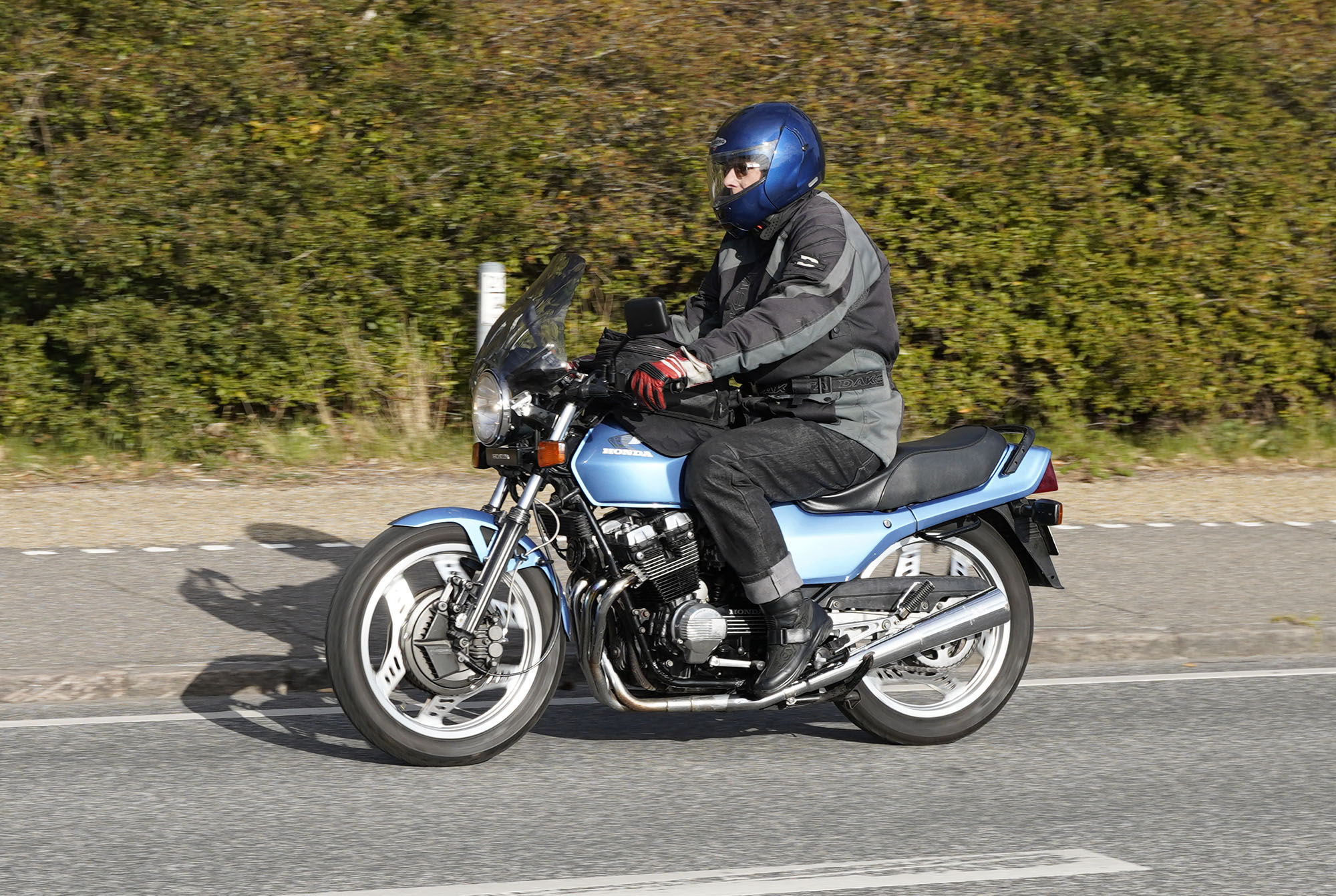 på den blå CBX 550 -84 og Ib på sin helt nye Street Triple RS -18, en vildt dejlig