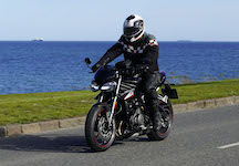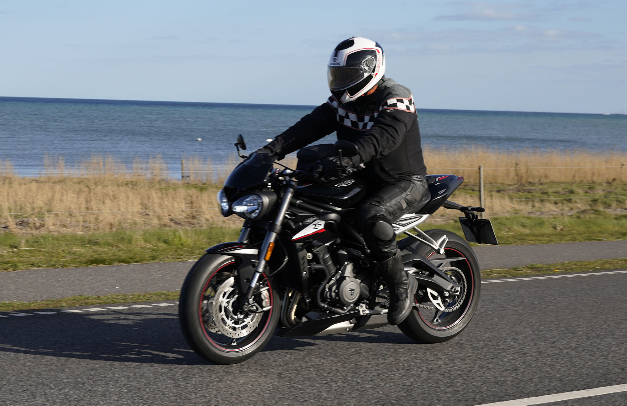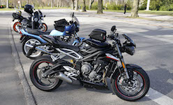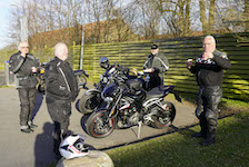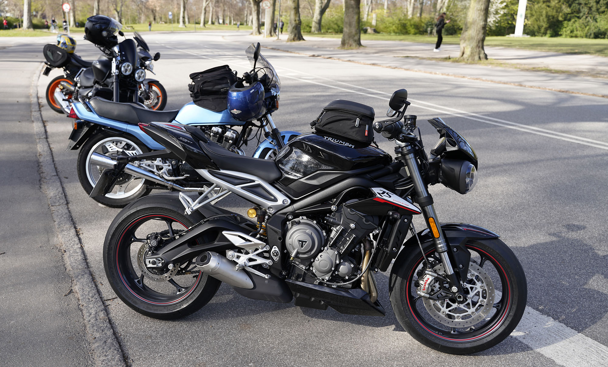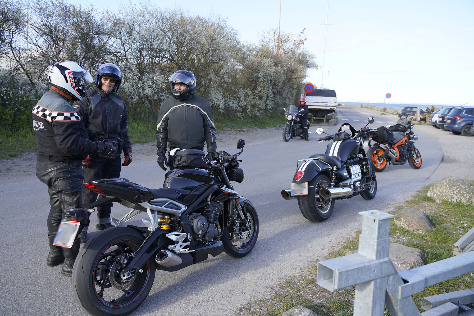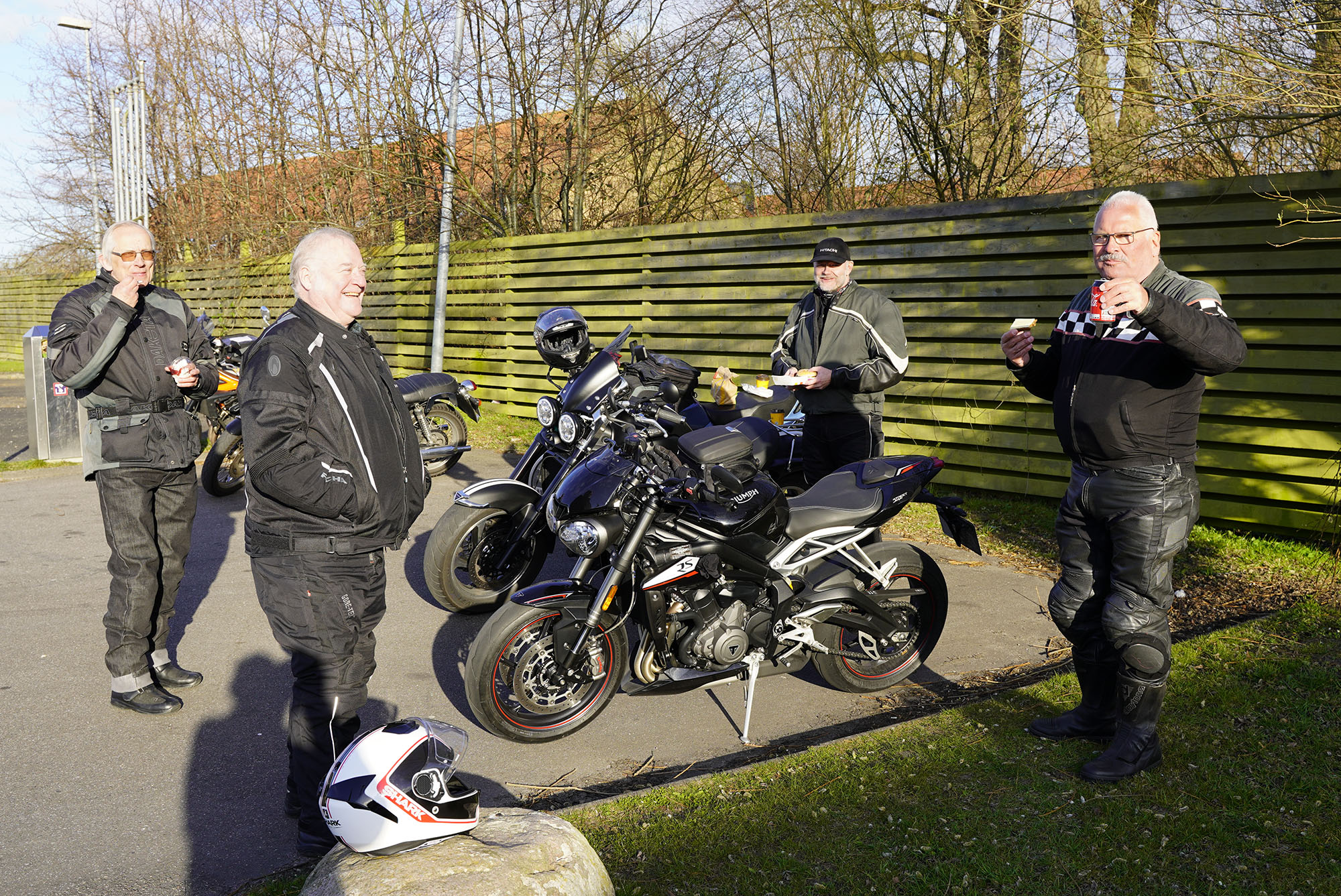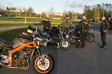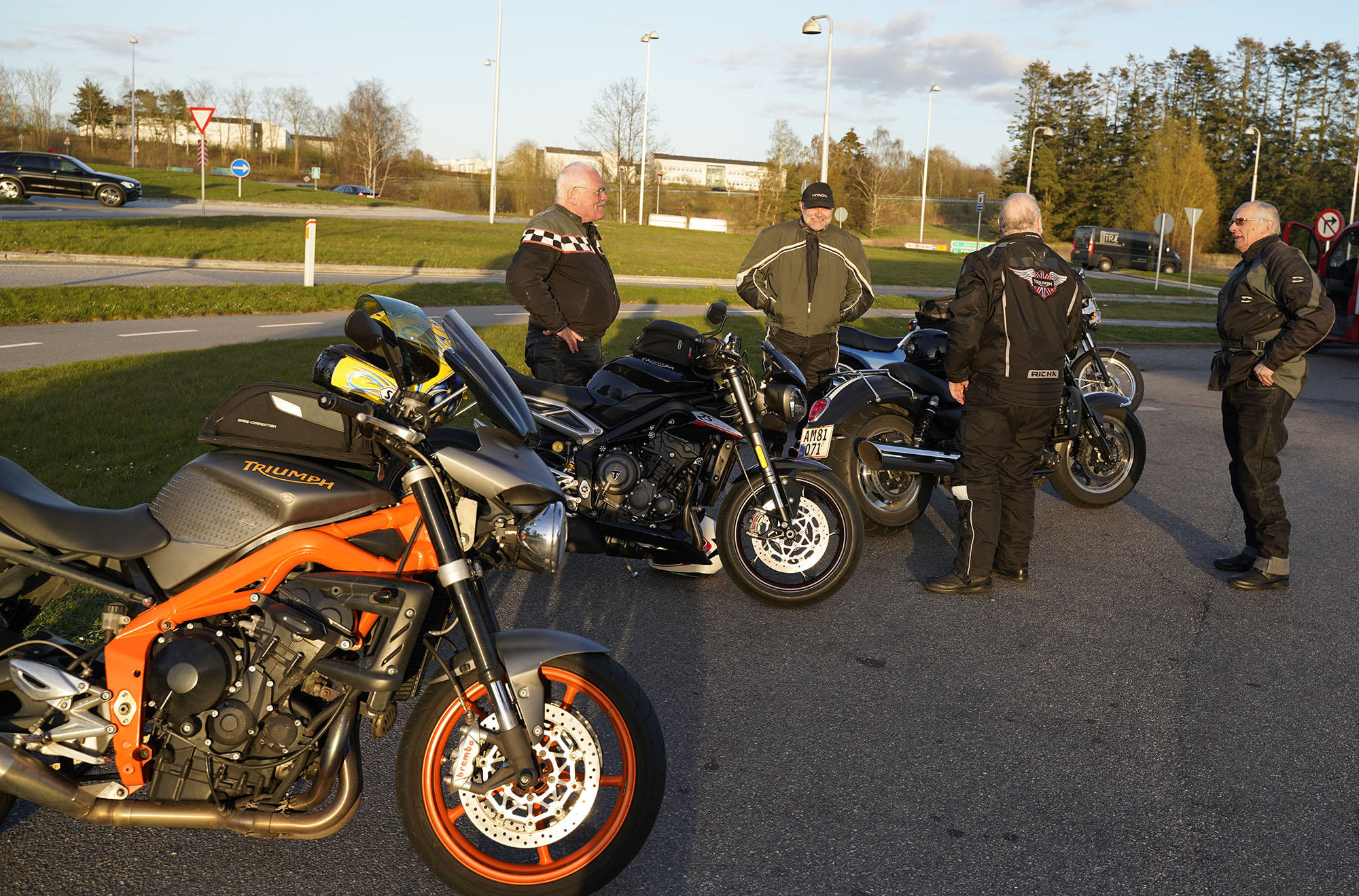 på min gamle grå-orange Street Triple KM-special -08. Super, så var vi fem deltagere